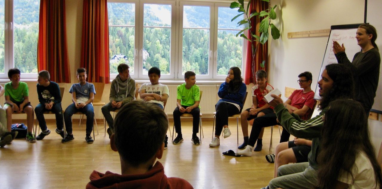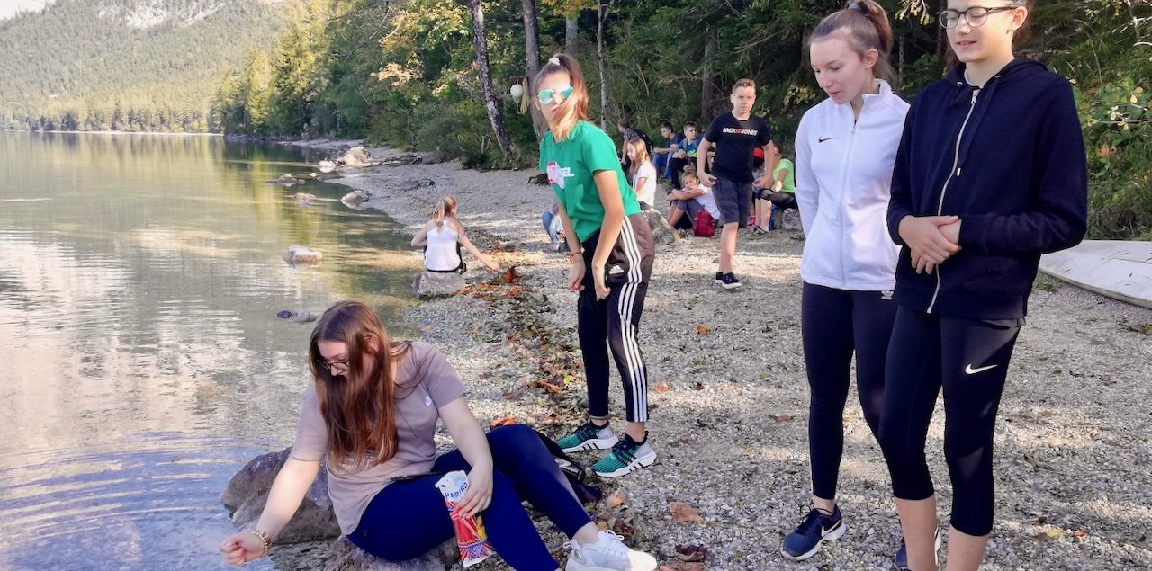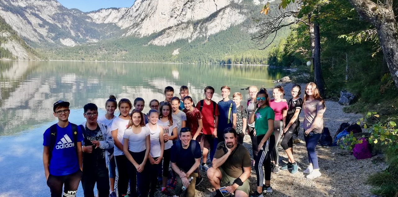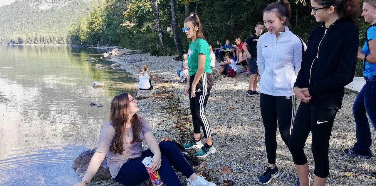 Alle diesjährigen 4. Klassen (4A, 4B, 4C, 4D) nahmen an der Sprach- und Sportwoche in Bad Aussee vom 30. September bis zum 4. Oktober teil. Sieben Native Speaker aus den USA, England und Australien motivierten die 92 Schüler und Schülerinnen dazu, sowohl in den English lessons als auch im Rahmen des Spiel- und Sportprogramms ihre Englischkenntnisse unter Beweis zu stellen und zu vertiefen. „Talk in English, please!“, so lautete die Devise, sogar beim Wandern zum wunderschönen Altausseer See. Stolze 18.000 Schritte brachten die Schülerinnen und Schüler an dem prachtvollen, sonnigen Herbsttag hinter sich. Abgerundet wurden die ereignisreichen Tage durch ein abwechslungsreiches Abendprogramm. Die Schülerinnen und Schüler machten einen Hip-Hop-Crashkurs, produzierten gruselige Kurzfilme und bewiesen ihr Wissen und ihre Kreativität bei einem spannenden Quizabend. Alles in Englisch, versteht sich. Dass die Woche tatsächlich Früchte getragen hat, merkte man schon bei der Heimfahrt im Bus: Manche Schülerinnen und Schüler plauderten angeregt, in Englisch, versteht sich …