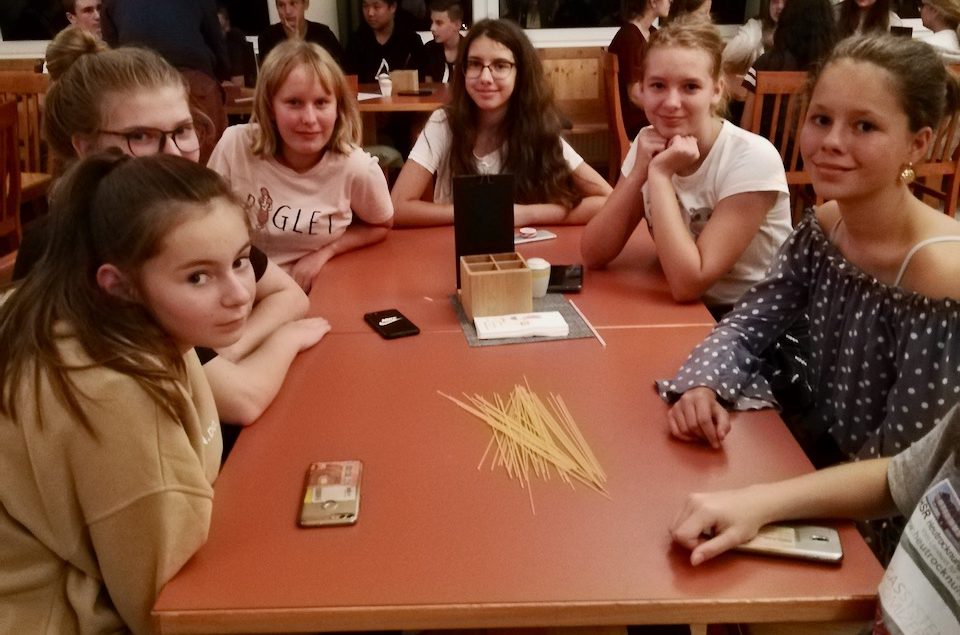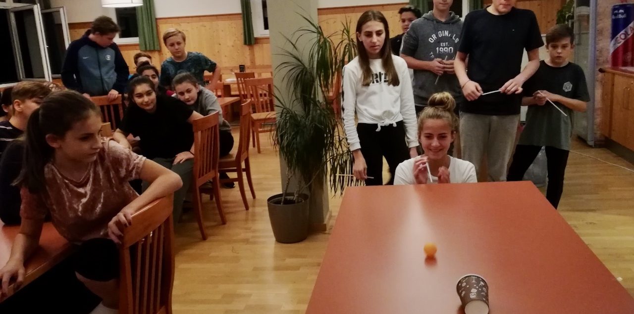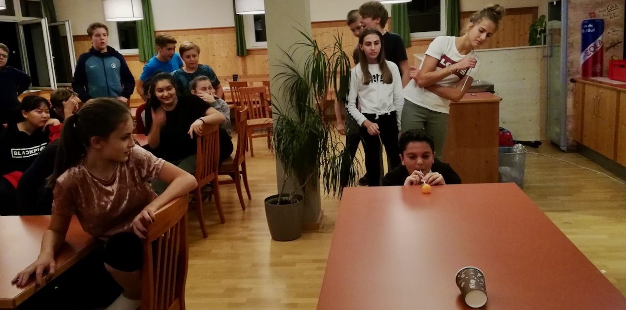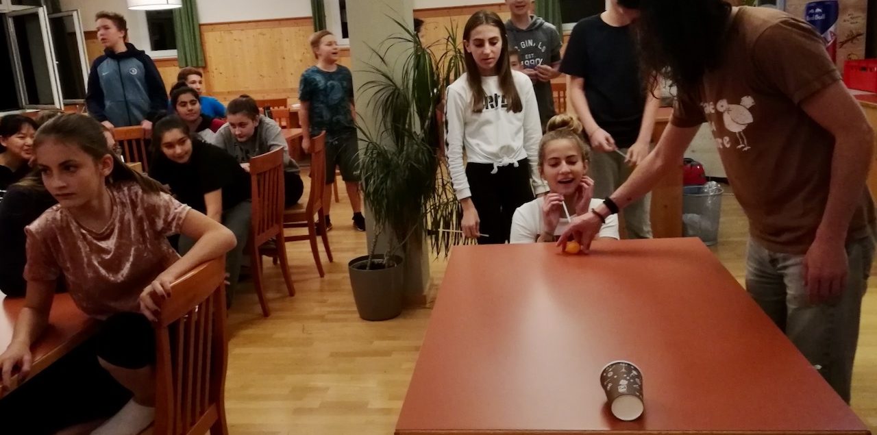 Alle diesjährigen 4. Klassen (4A, 4B, 4C, 4D) nahmen an der Sprach- und Sportwoche in Bad Aussee vom 30. September bis zum 4. Oktober teil. Sieben Native Speaker aus den USA, England und Australien motivierten die 92 Schüler und Schülerinnen dazu, sowohl in den English lessons als auch im Rahmen des Spiel- und Sportprogramms ihre Englischkenntnisse unter Beweis zu stellen und zu vertiefen. „Talk in English, please!“, so lautete die Devise, sogar beim Wandern zum wunderschönen Altausseer See. Stolze 18.000 Schritte brachten die Schülerinnen und Schüler an dem prachtvollen, sonnigen Herbsttag hinter sich. Abgerundet wurden die ereignisreichen Tage durch ein abwechslungsreiches Abendprogramm. Die Schülerinnen und Schüler machten einen Hip-Hop-Crashkurs, produzierten gruselige Kurzfilme und bewiesen ihr Wissen und ihre Kreativität bei einem spannenden Quizabend. Alles in Englisch, versteht sich. Dass die Woche tatsächlich Früchte getragen hat, merkte man schon bei der Heimfahrt im Bus: Manche Schülerinnen und Schüler plauderten angeregt, in Englisch, versteht sich …