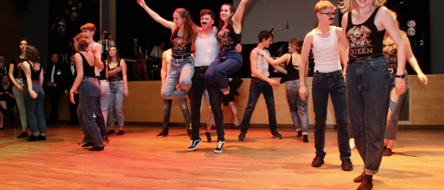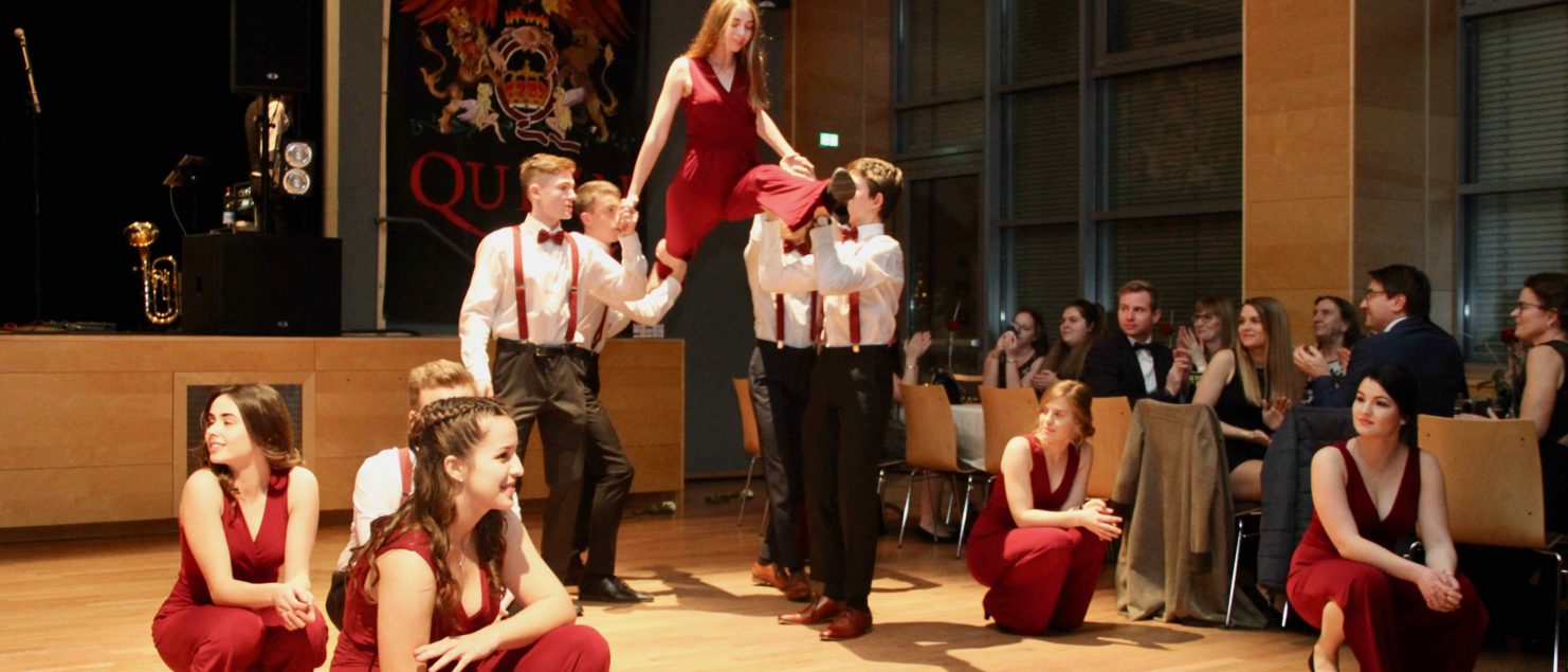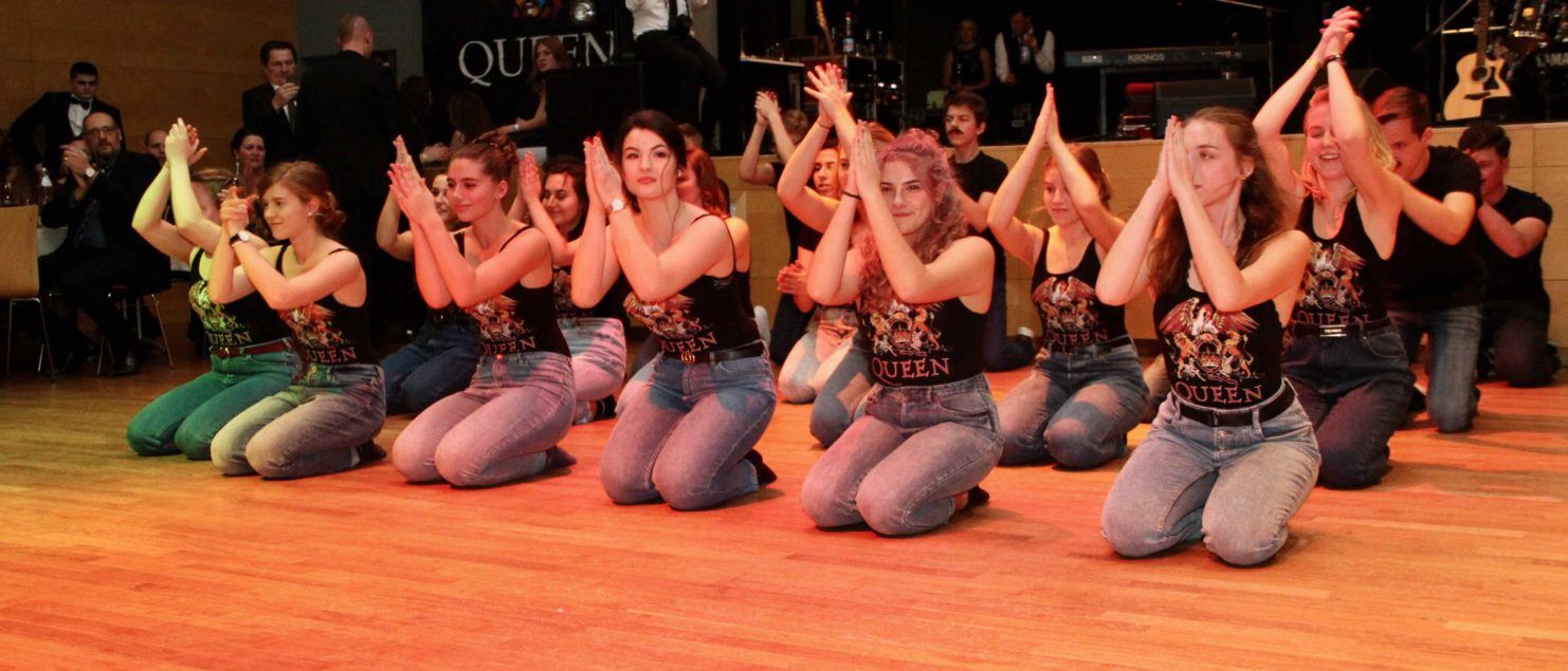 Eine “queenlike night” war versprochen worden, und dieses Versprechen wurde gehalten: Die Besucherinnen und Besucher des Gymballs 2020 waren begeistert von der tollen Stimmung, den hervorragenden Tanzdarbietungen bei Eröffnung und Mitternachtseinlage sowie von der wunderschönen Dekoration.