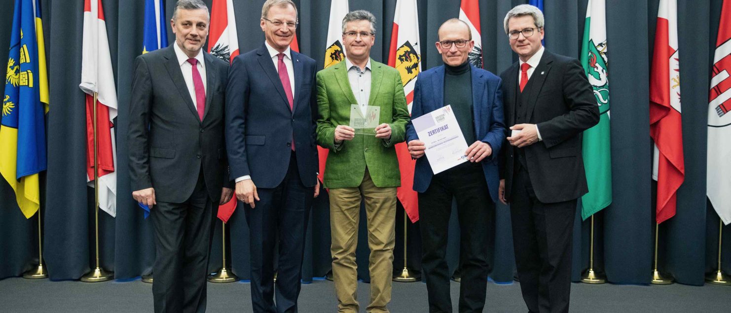 Prof. Thomas Pumberger und Dir. Sebastian Plank nahmen die Auszeichnung am 13. Februar im Rahmen einer ausgesprochen schön gestalteten Feierstunde im Steinernen Saal des Landhauses in Linz entgegen.