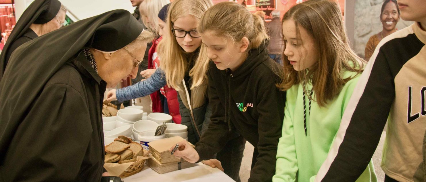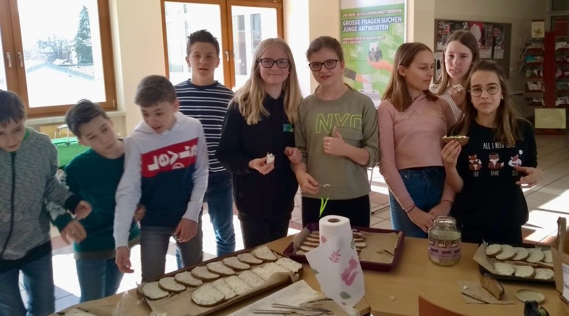 Mit der Ausgabe von Aufstrichbroten gegen freiwillige Spenden in der großen Pause am 4. März sowie mit der Beteiligung an der Suppenaktion auf dem Bauernmarkt am 6. März unterstützten Schüler/innen der 2C mit ihrem Religionslehrer Mag. Leonhard Helminger die Aktion Familienfasttag der Katholischen Frauenbewegung.