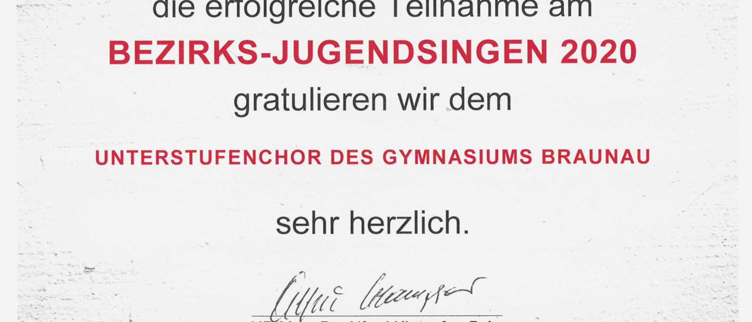 Aufgrund der großen Zahl der teilnehmenden Chöre wurde das Jugendsingen auf zwei Abende aufgeteilt. Der Unterstufenchor des Gymnasiums Braunau war zusammen mit zwölf anderen Chören am ersten Abend eingeteilt. Unter der Leitung von Mag. Matthias Kritzinger wurden dem Publikum die Lieder „Tage wie diese“, Hätt‘ i di“ und „Obwisana“ zu Gehör gebracht.