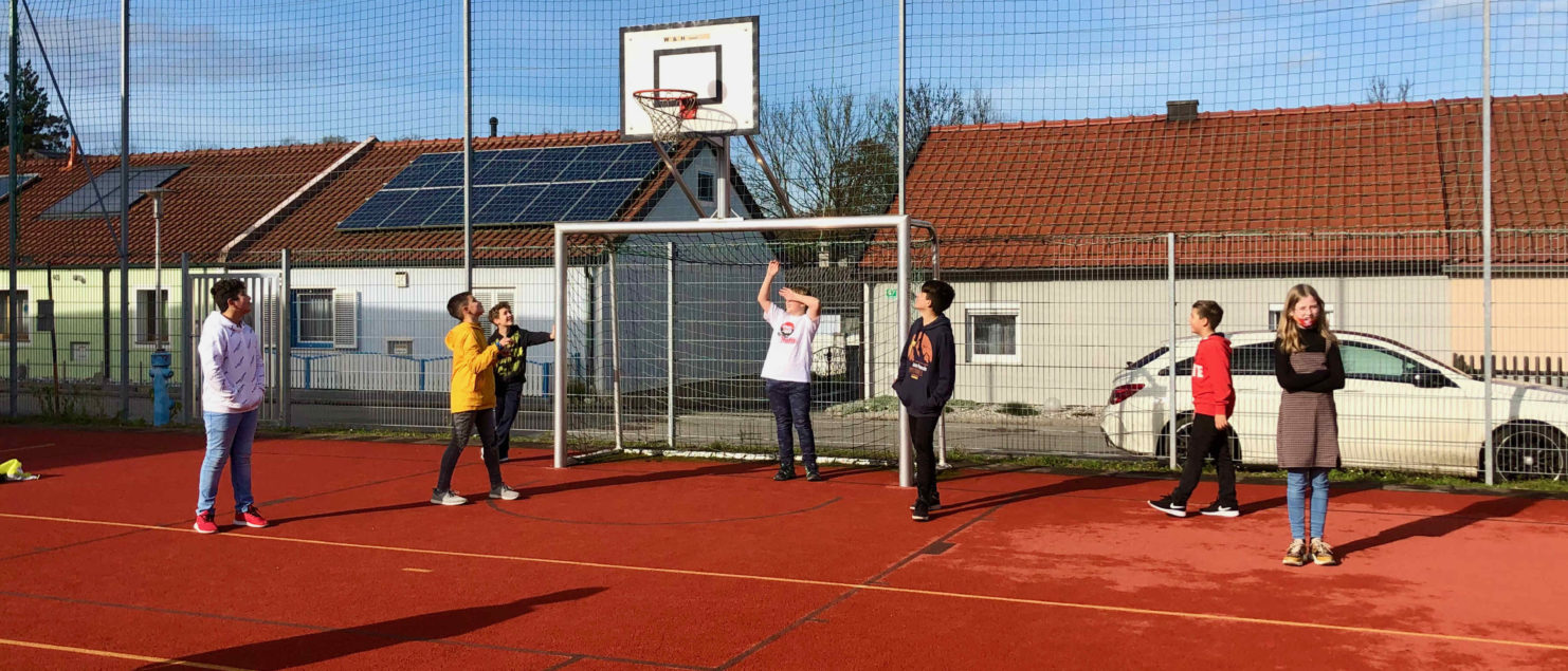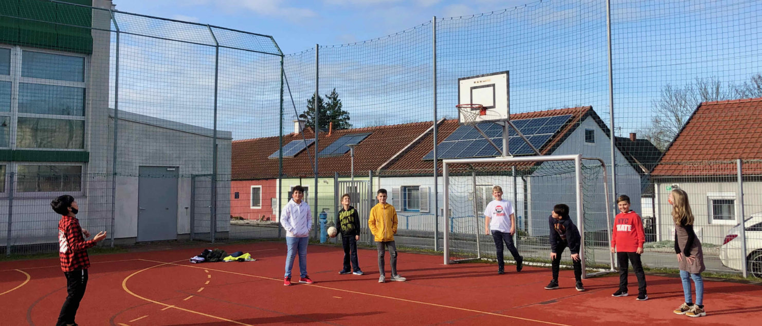 Dank des wieder schöner gewordenen Wetters konnten Lernpausen auf dem Sportplatz verbracht werden.