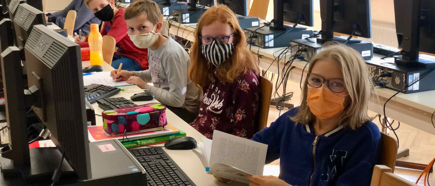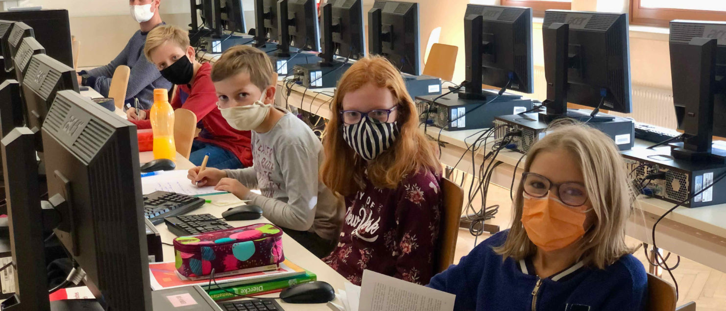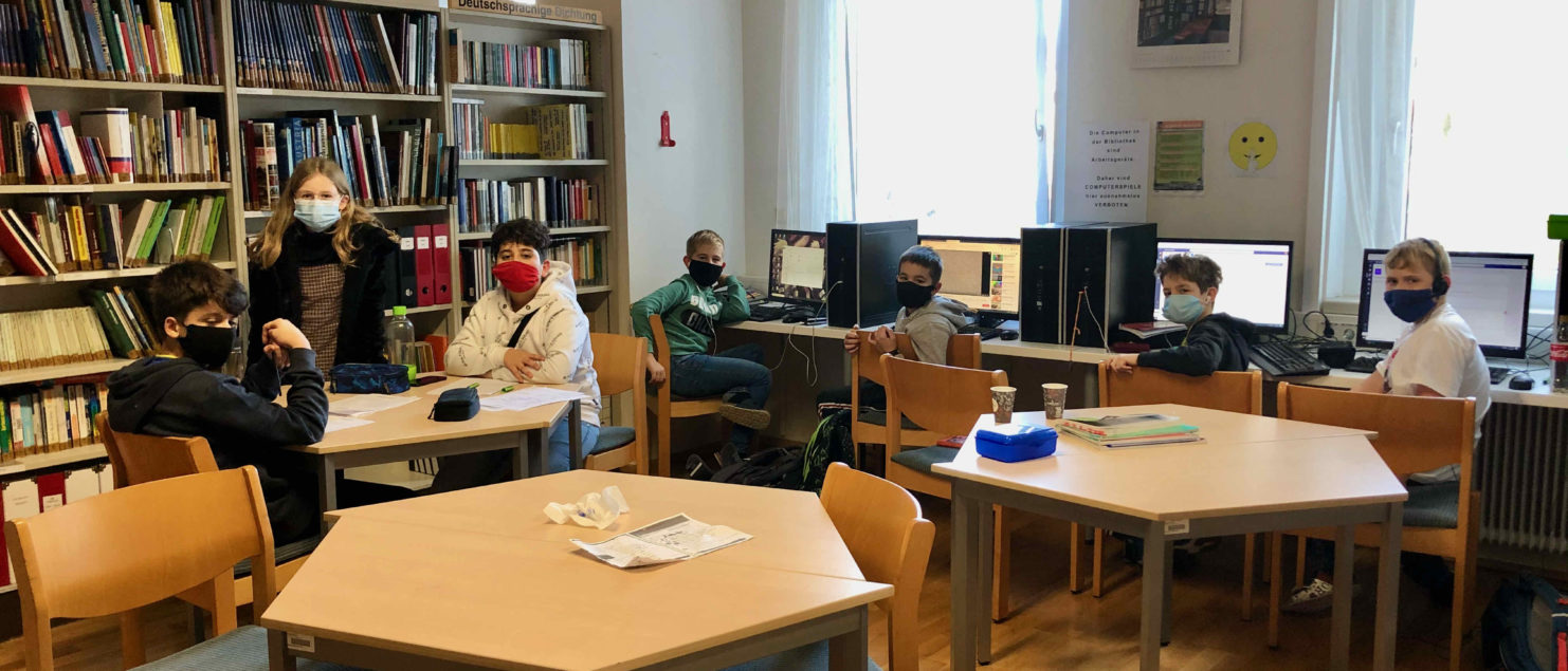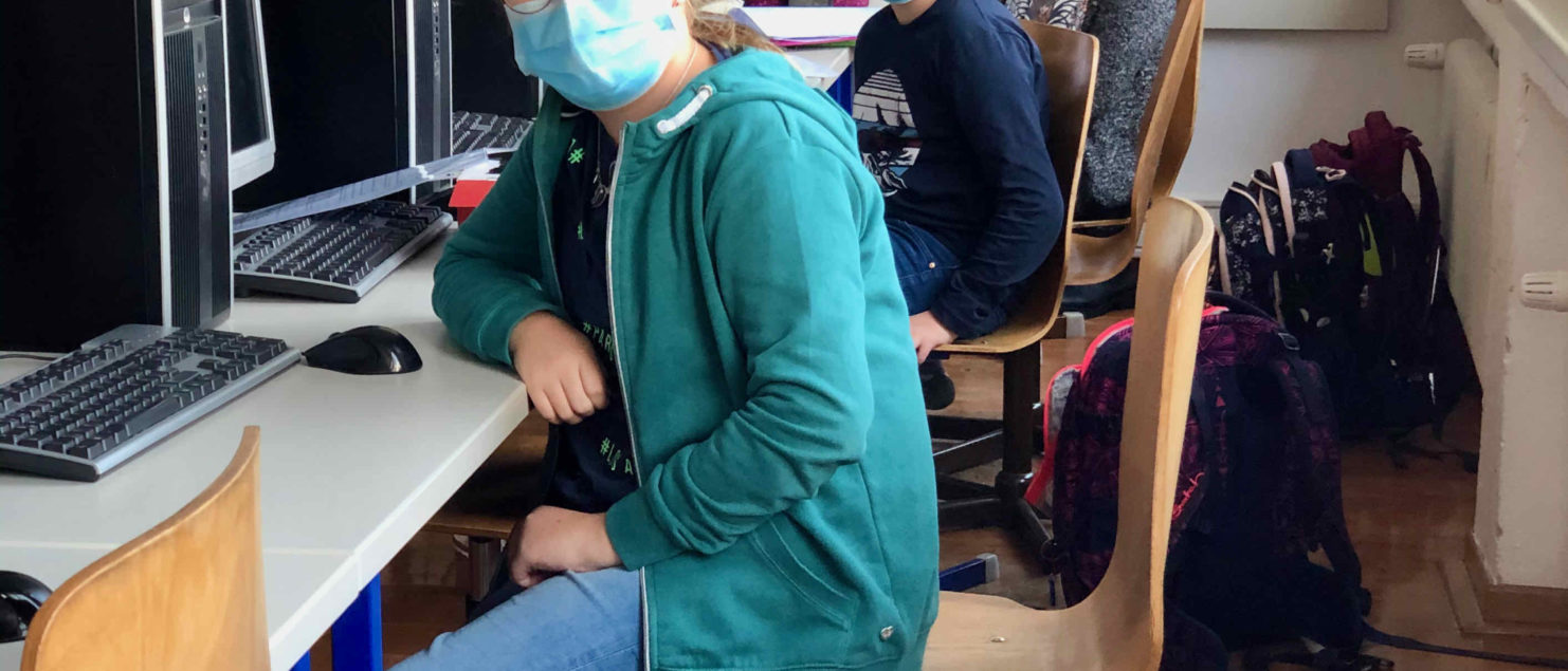 Während die meisten Schülerinnen und Schüler von zuhause aus dem Unterricht folgten, nutzten 30 Schülerinnen und Schüler der Unterstufe das Betreuungsangebot in der Schule. Sie nahmen – in vier Gruppen aufgeteilt – am Online-Unterricht ihrer Klassen teil und erledigten die gestellten Arbeitsaufgaben.