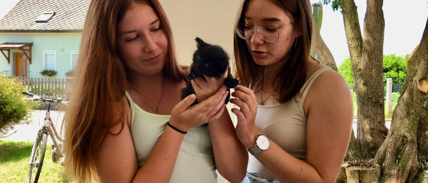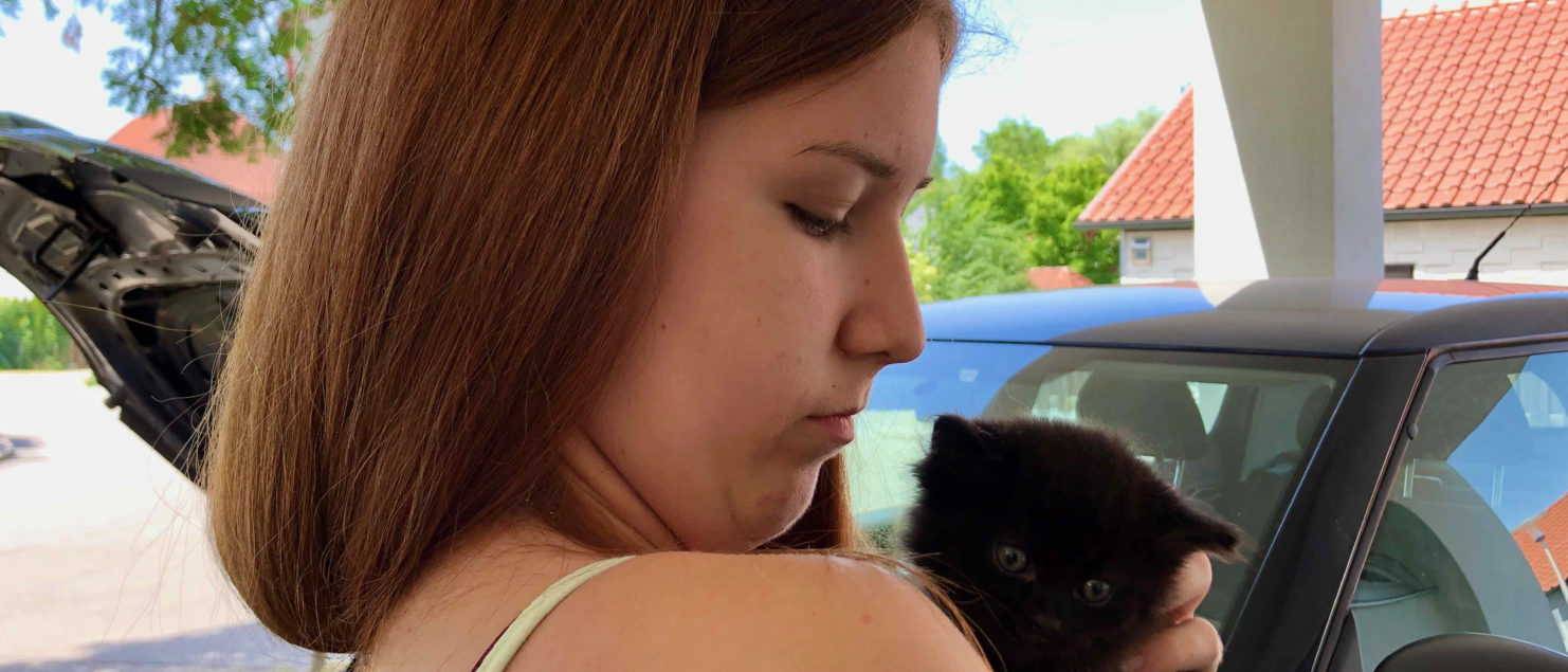 Schülerinnen der 6R-Klasse vernahmen in der Mittagszeit des 21. Juni ein herzzerreißendes Jammern und Miauen aus dem Motorraum des Autos von Ignaz Kirov. In einer langwierigen Aktion gelang es, das verschreckte Kätzchen aus seinem Gefängnis zu befreien. Es wurde sofort mit Wasser versorgt.