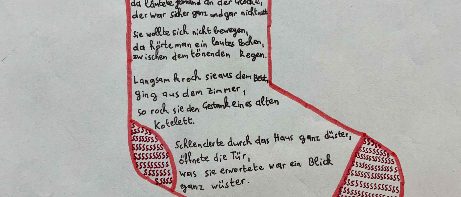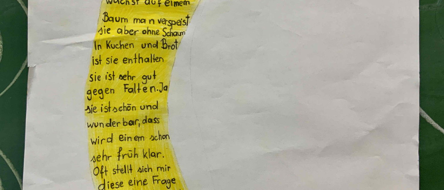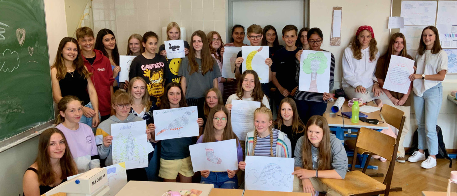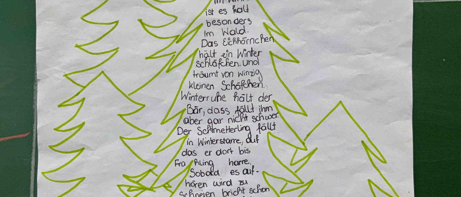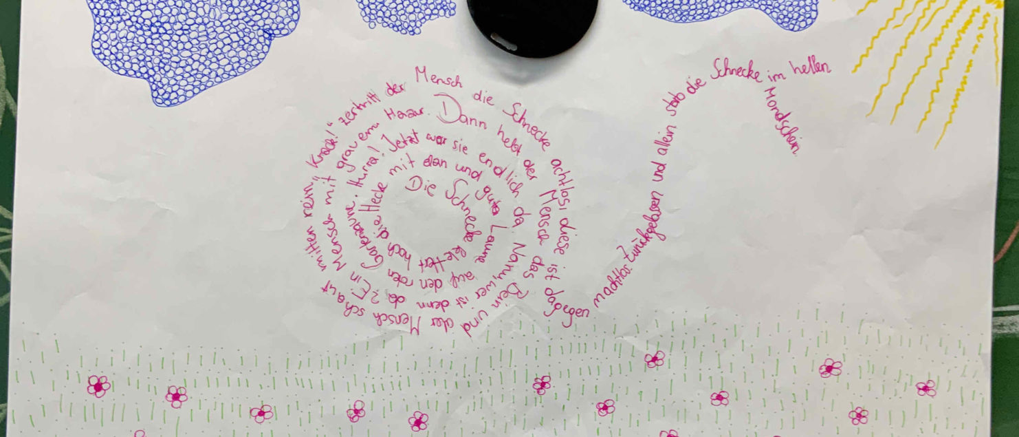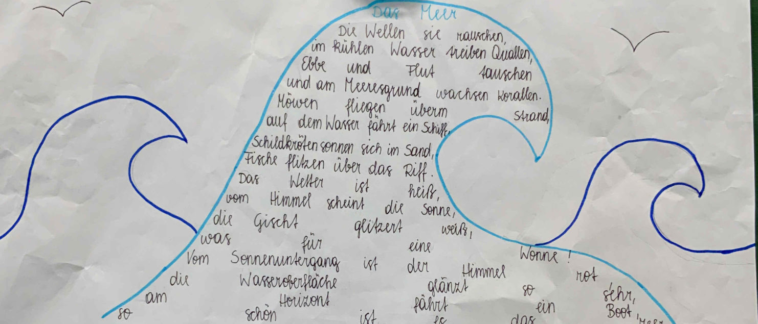Im Rahmen des Deutschunterreichts befassten sich die Schüler/innen der 4A Klasse mit visueller Lyrik. Dabei wurden der Klassenraum sowie der Schulhof bei Schönwetter als Kreativwerkstätte genützt. Nach stundenlanger Vorbereitung bewiesen die jungen Kreativköpfe ihr Talent und Engagement bei der Präsentation ihrer Projekte.