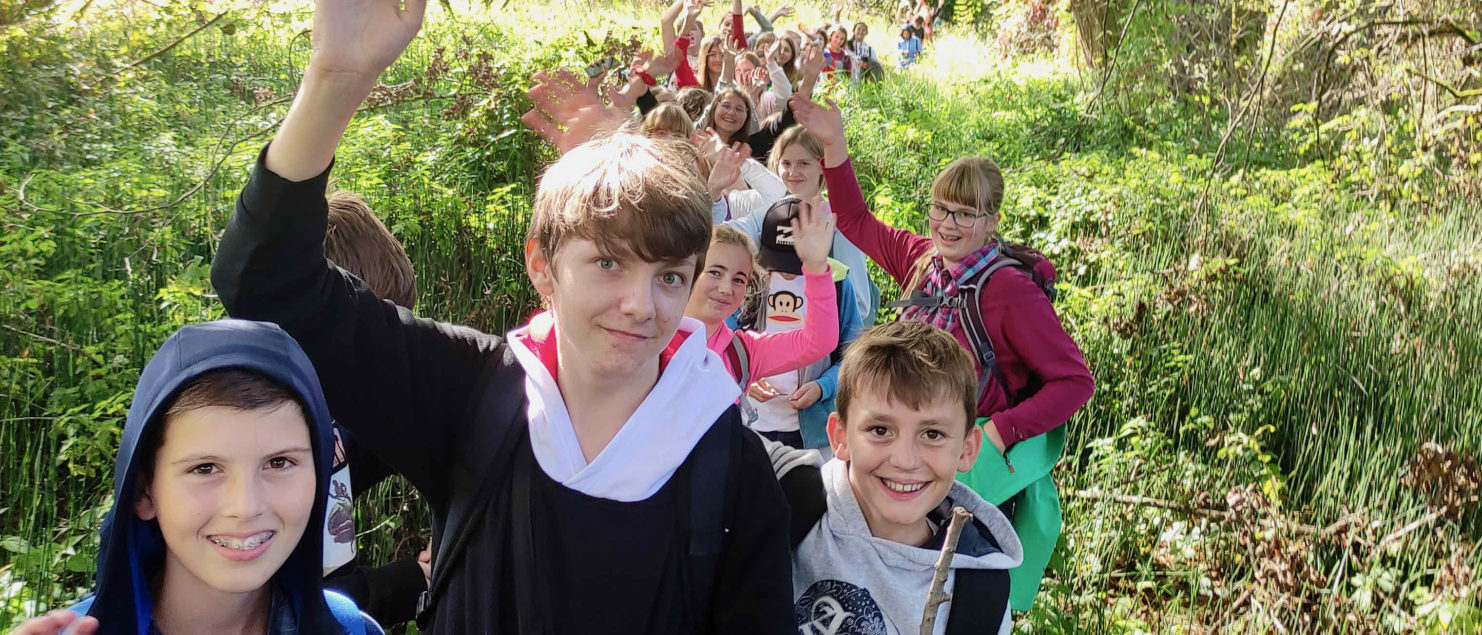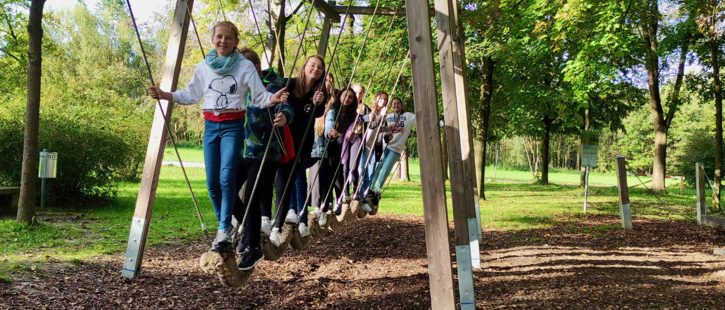 Am 30. September wanderten die beiden Klassen gemeinsam mit ihren Klassenvorständen Andreas Jagereder und Sigrid Kölblinger-Folker entlang des Inns über den Motorikpark zum Waldsee bei Kirchdorf in Bayern.