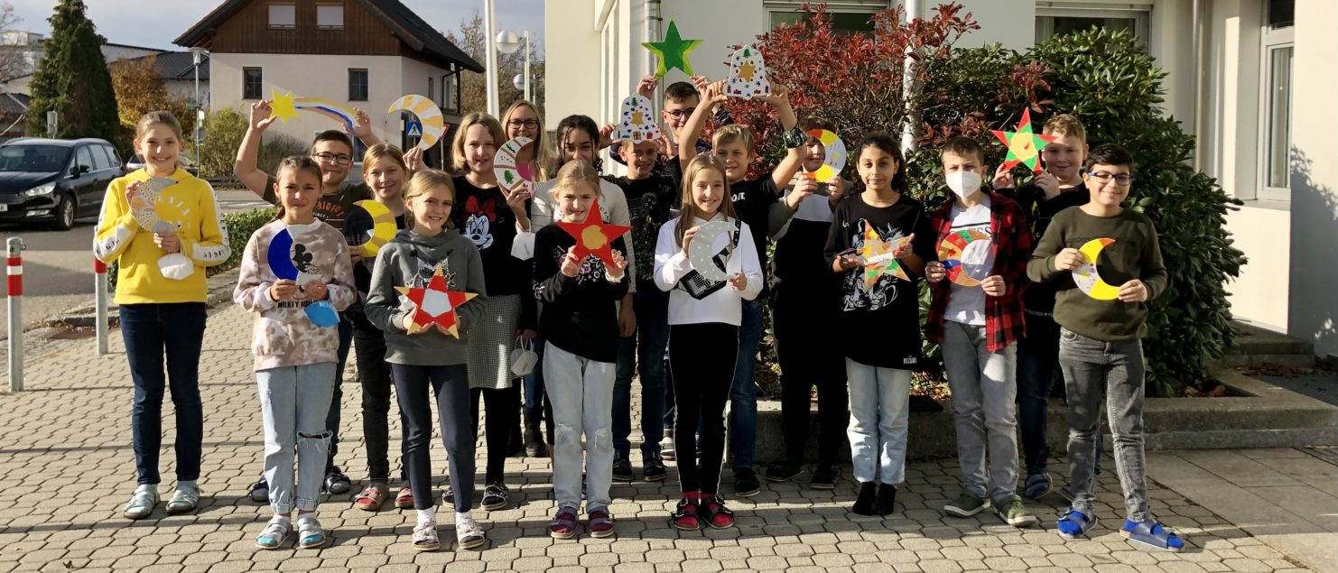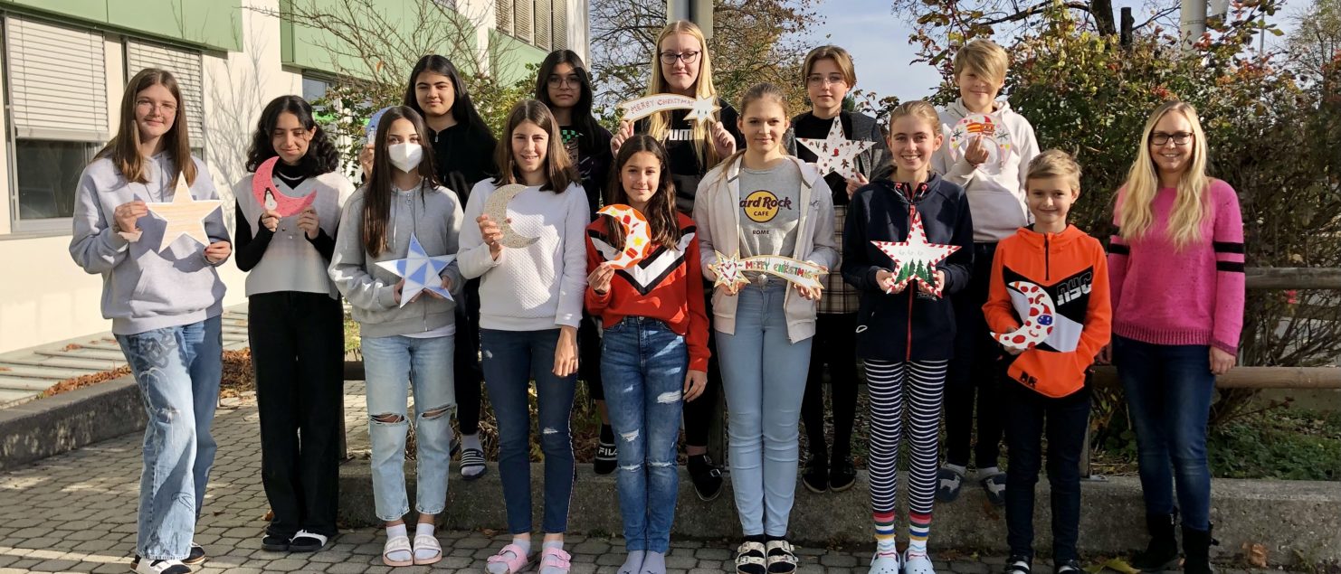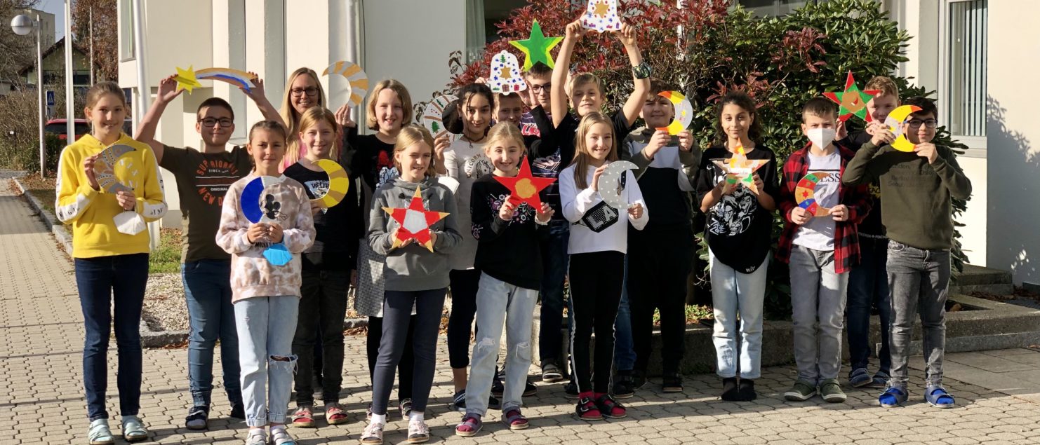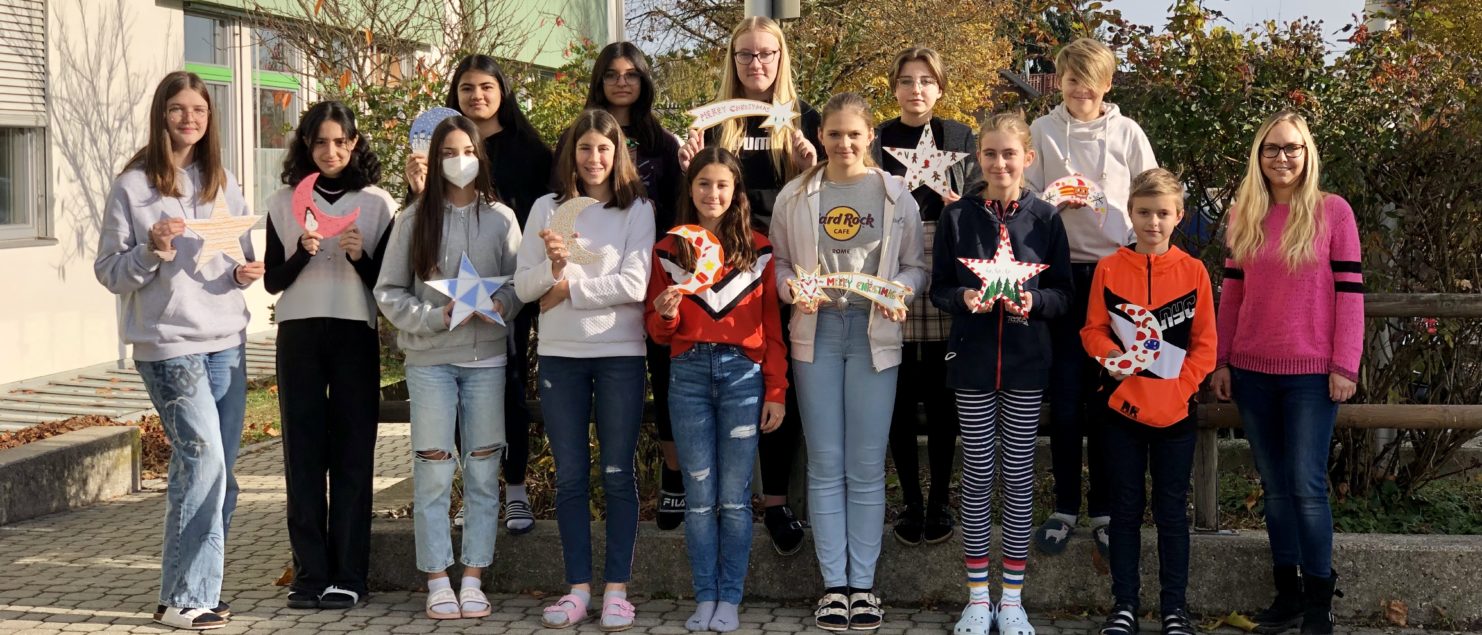 Die Schülerinnen und Schüler der 1D- und der 4B-Klasse beteiligten sich an einer Aktion des grenzübergreifenden Stadtmarketings Braunau.Simbach.Inn zur Dekoration der Weihnachtsbäume in den beiden Innenstädten.