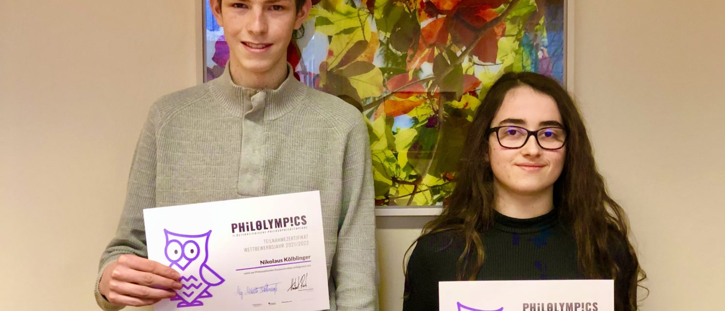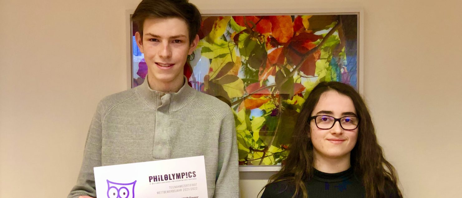 Auch im heurigen Schuljahr nahmen die Schülerinnen und Schüler der achten Klassen an den Philolympics, dem österreichweiten philosophischen Essaywettbewerb, teil. Dabei wurden aktuelle Themen eingehend bearbeitet und die beiden besten Essays der Schule wurden eingereicht.