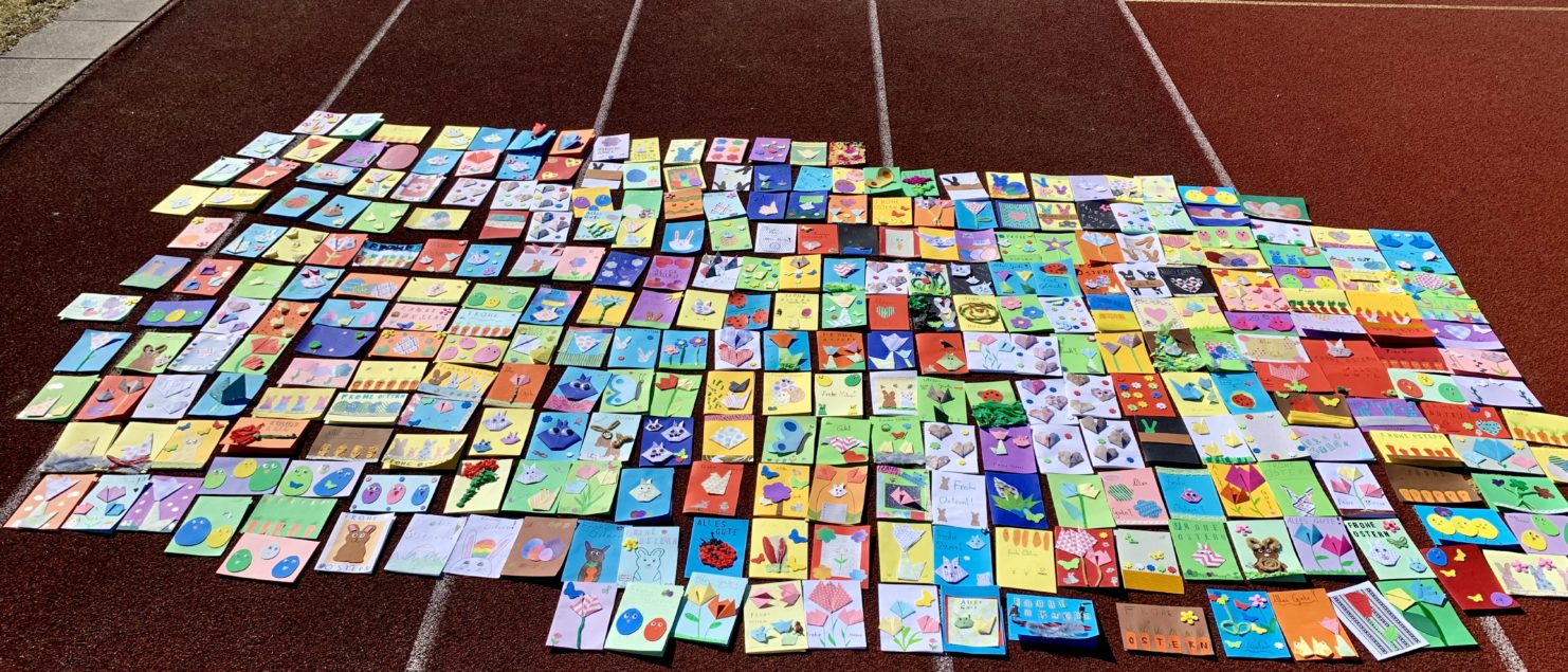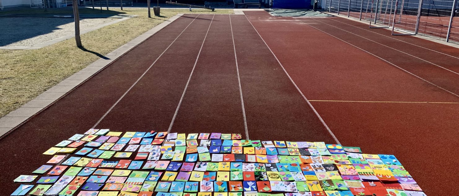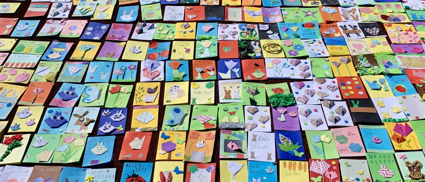 Die Schülerinnen und Schüler der 1D freuen sich schon sehr, mit ihren mit HERZ gebastelten Osterkarten die Menschen aus und in der Ukraine unterstützen zu können.