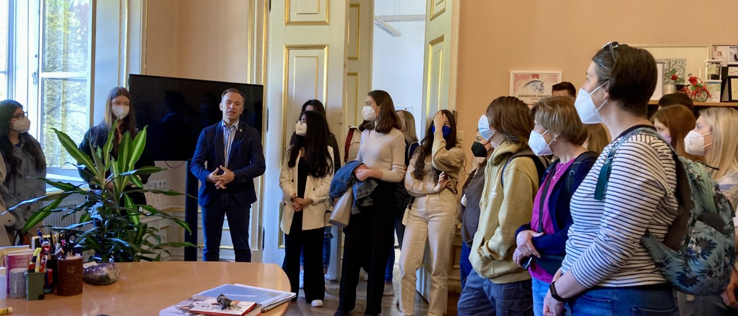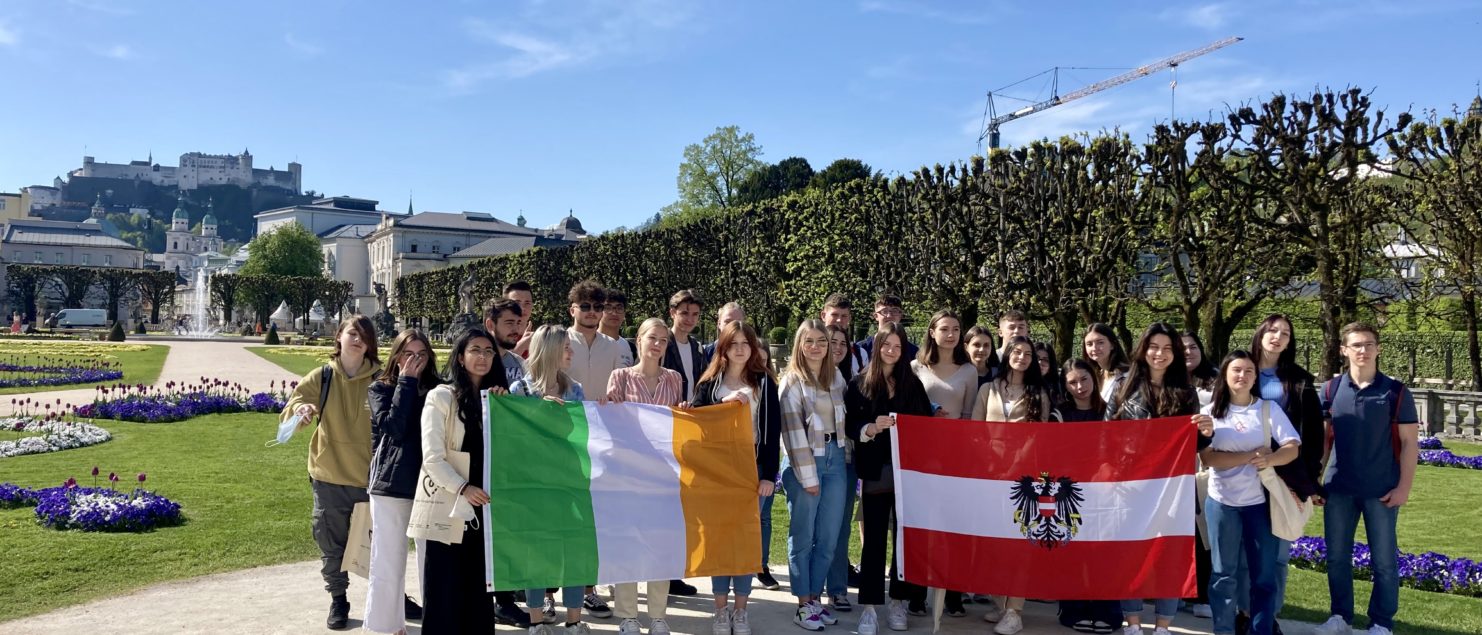 Vom 25. April bis 4. Mai 2022 war es endlich so weit – die irischen Schüler kamen zum Austausch und Schulbesuch gemeinsam mit ihrer Deutschlehrerin Carol Fynn an unsere Schule. Neben dem Schulbesuch standen eine Stadtbesichtigung samt Kirchturmbesteigung sowie ein Ausflug nach Salzburg mit Besichtigung des Schlosses Mirabell auf dem Programm.