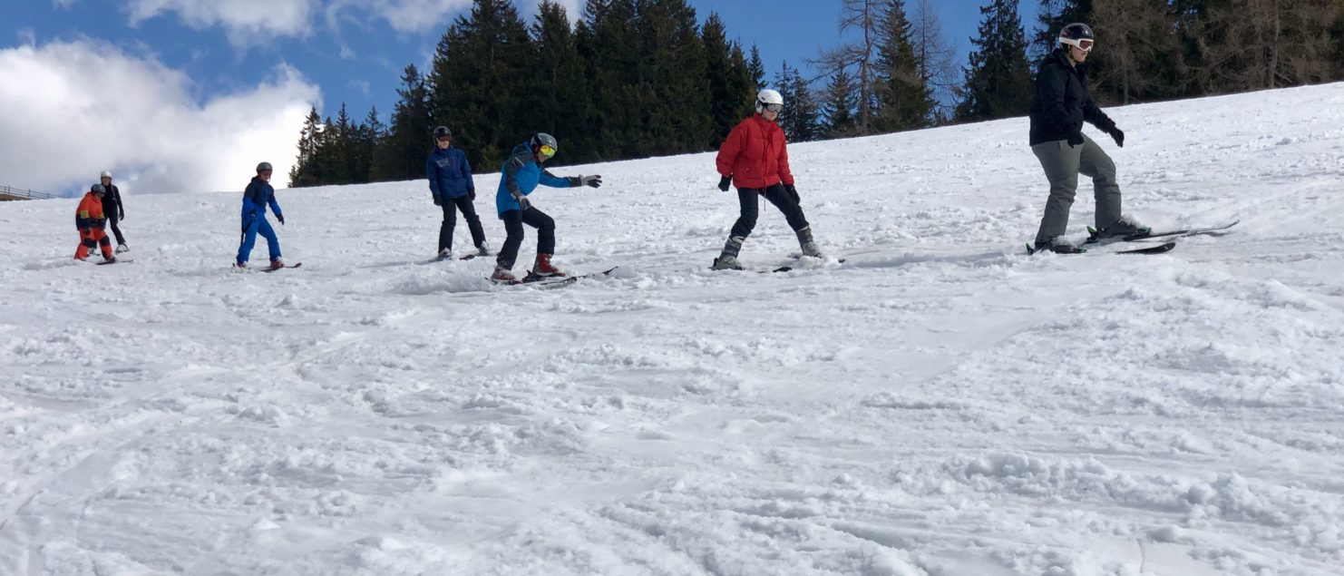 Neben den Schigruppen, die auf zahlreichen Abfahrten des weitläufigen Gebiets unterwegs waren und bei Frühlingstemperaturen ausgezeichnete Pistenbedingungen vorfanden, gab es diesmal auch eine Alternativgruppe, die die Woche mit Langlaufen, Schwimmen, Schneeschuhwandern und Schlittenfahren verbrachte.