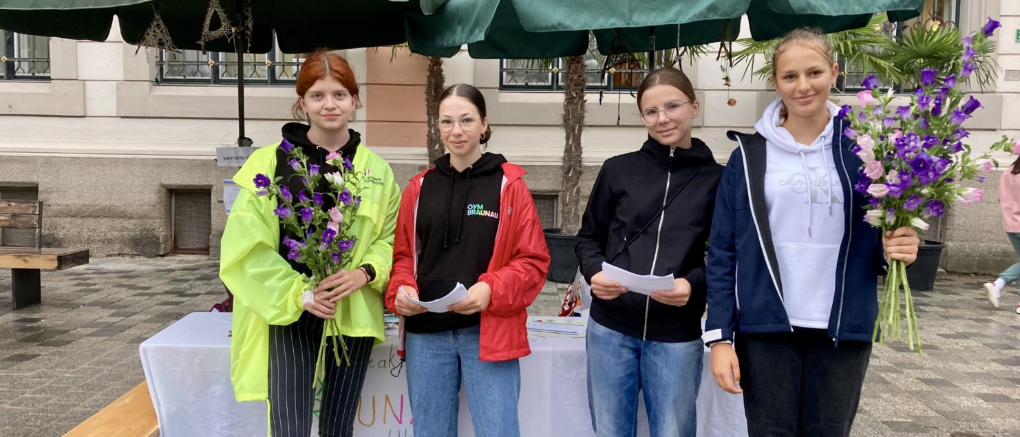 Die 4A-Klasse des Gymnasiums Braunau am Inn führte am 29.06.2022 eine Spendenaktion am Braunauer Wochenmarkt durch, bei der sieben Schülerinnen Blumen, selbstgestaltete Traumfänger und Grußkarten verkauften. Die Spendenaktion war für die Schülerinnen eine Herzensangelegenheit, in welche sie auch außerhalb der Unterrichtszeit viel Engagement steckten.