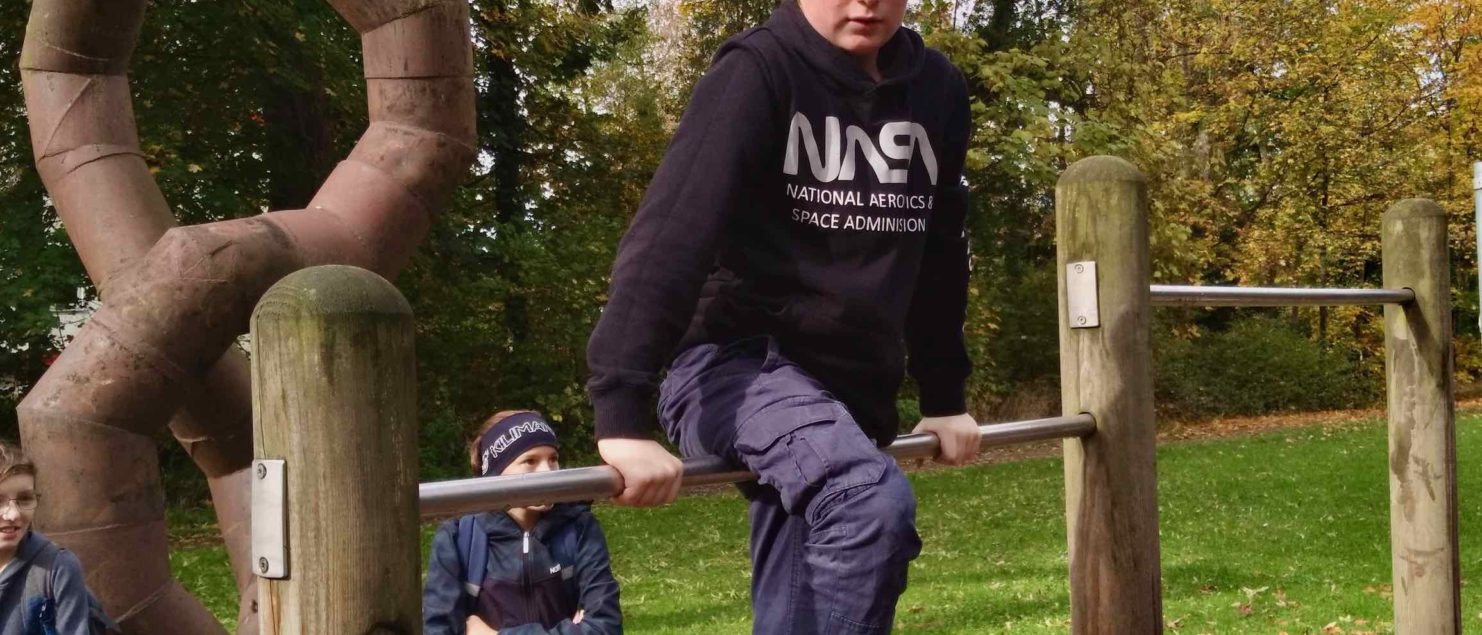 Zum Abschluss begaben sich die Schüler/innen mit ihren Lehrerinnen noch auf Erkundungstour durch Rieds Stadtzentrum und den Stadtpark, inklusive Balancierwege und Sportgeräte.