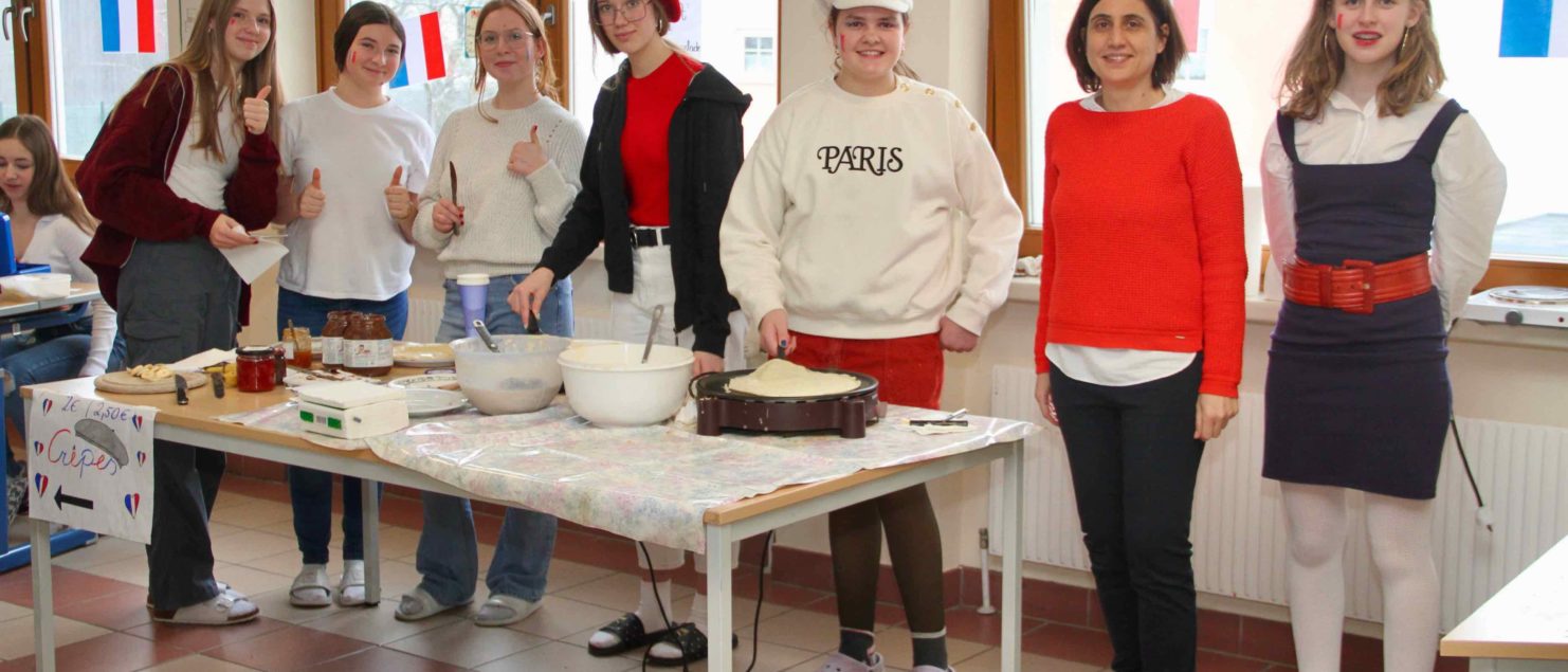 Für das leibliche Wohl sorgten in bewährter Weise Schülerinnen und Schüler der 7. Klassen, die ein Buffet vorbereitet hatten, sowie eine Französisch-Gruppe mit den beliebten Crêpes.