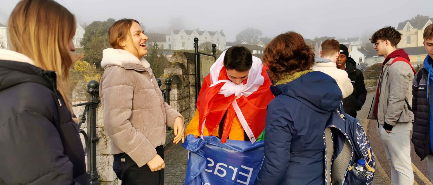 Sechs Schülerinnen der 5. Klassen, ein Schüler der 6. und ein Schüler der 7. Klassen besuchten für zehn Tage, vom 3. bis 13. Februar 2023, die Midleton CBS Secondary School in Irland. Finanziert wurde die Reise durch das EU-Programm Erasmus+.