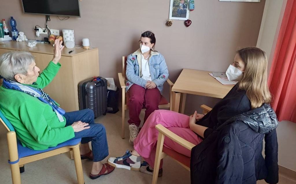 Sie sprachen mit Bewohnerinnen und Bewohnern über Themen wie „Leben im Alter“, „Erfahrungen“ oder „Kriegszeiten“. Die Seniorinnen und Senioren freuten sich sehr, Geschichten aus Ihrem Erfahrungsschatz zu teilen, und waren von den interessierten Schülerinnen und Schülern sichtlich begeistert.