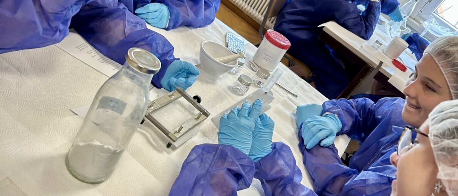 Unter der Anleitung der Institutsvorständin Frau Prof.in Daniela Schuster und des Studiengangsleiters Dr. Sebastian Hofbauer, die vom Institut für Pharmazie der Paracelsus Medizinischen Universität Salzburg an unsere Schule gekommen waren, füllten die Schülerinnen und Schüler Brause verschiedener Geschmacksrichtungen in Kapselhüllen und verschlossen diese mit professionellem Werkzeug zu fertigen Kapseln.