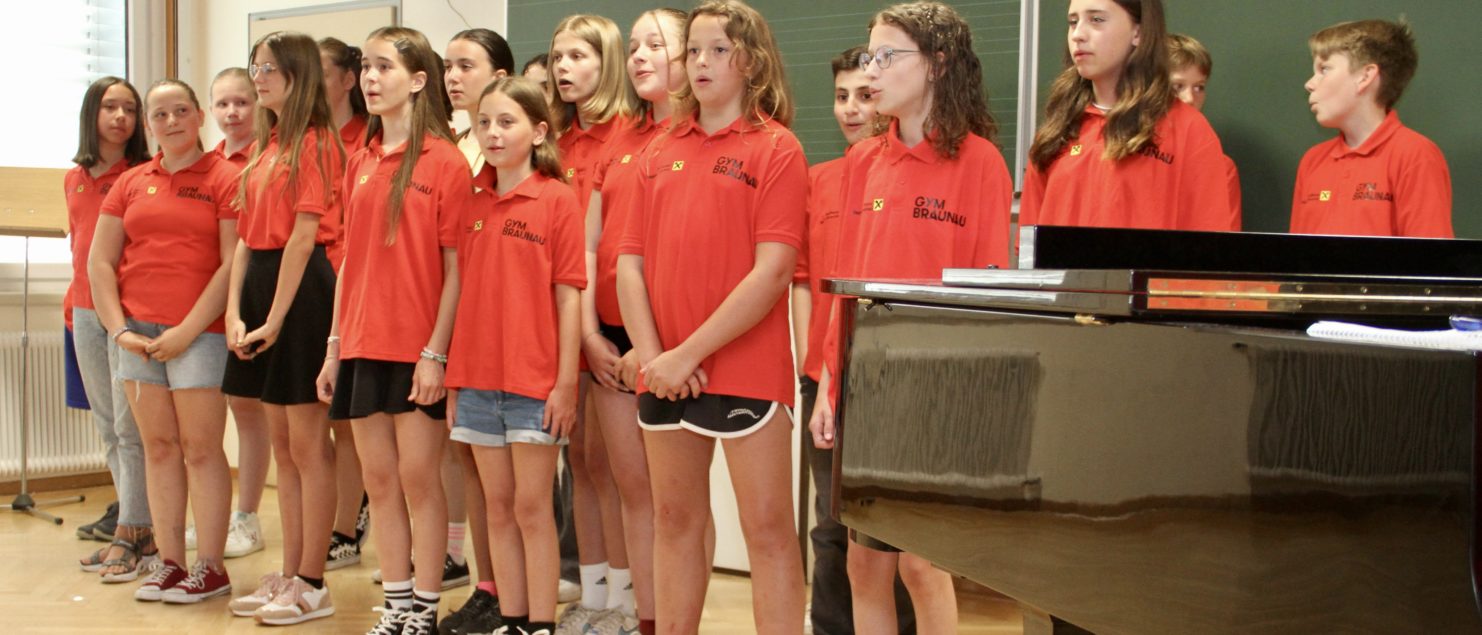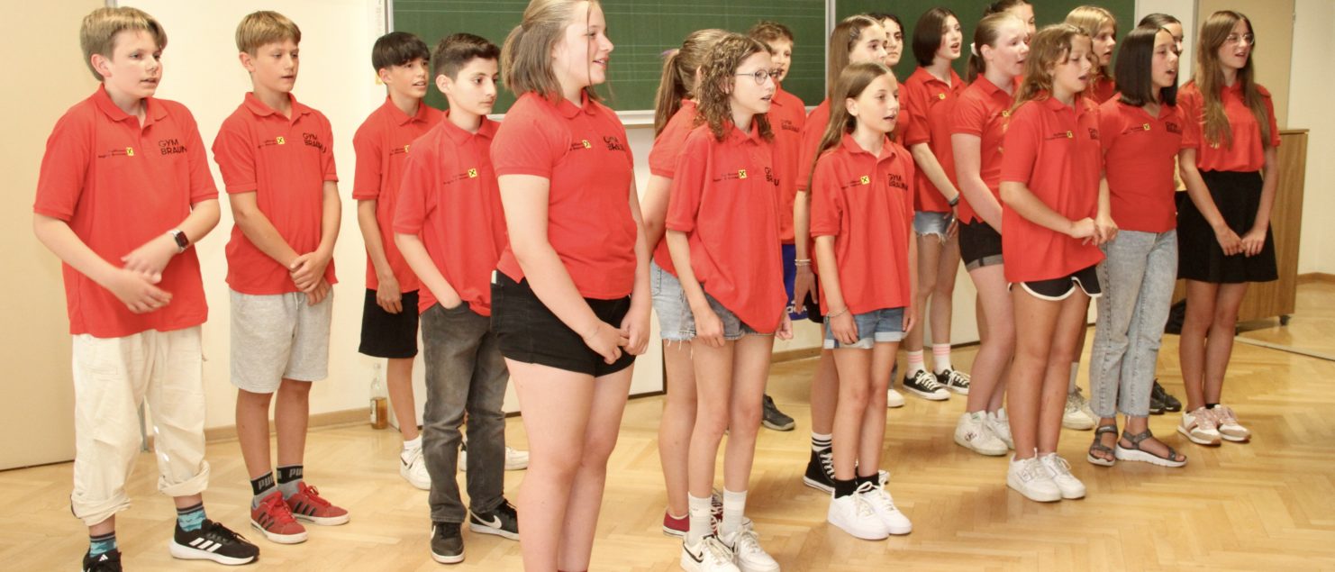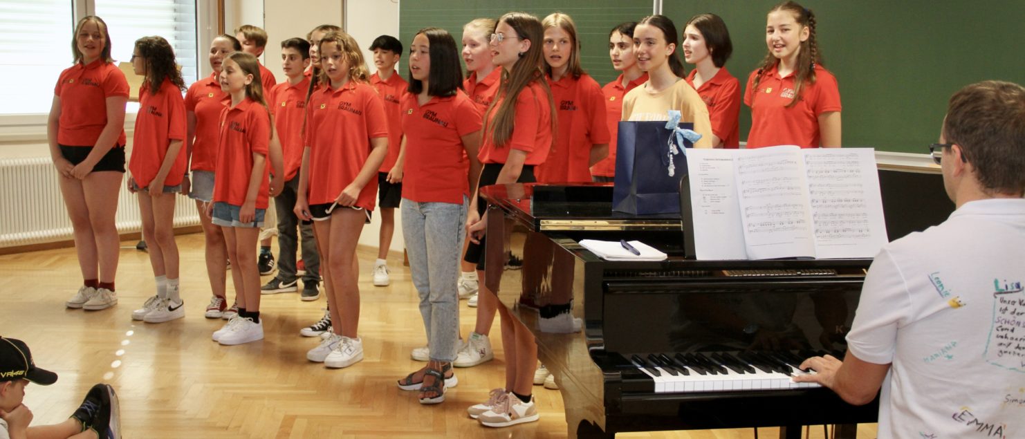 Mit einem Best-of-Programm aus einem sehr umfangreichen Repertoire, das in zwei Schuljahren erarbeitet wurde, begeisterte die Chorklasse 2A unter der Leitung ihres Klassenvorstands und Chorleiters Matthias Kritzinger die Besucherinnen und Besucher des Vortragsabends am 29. Juni im Musiksaal.
