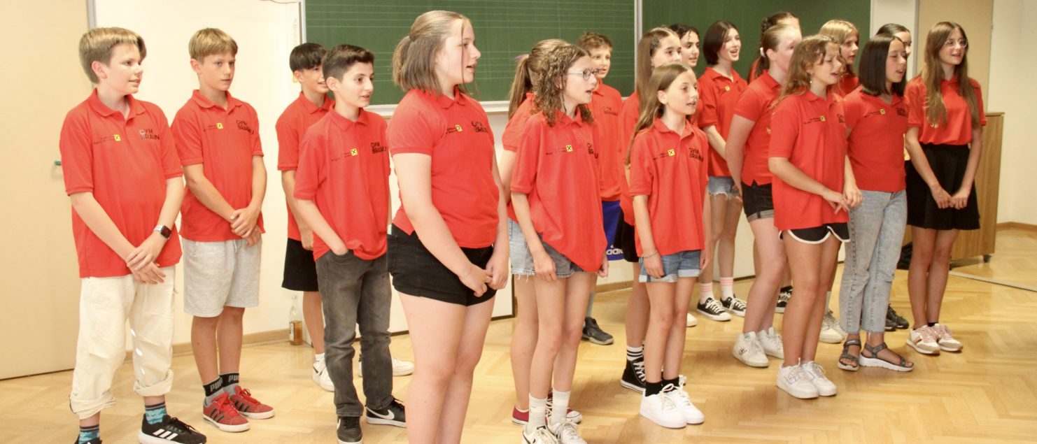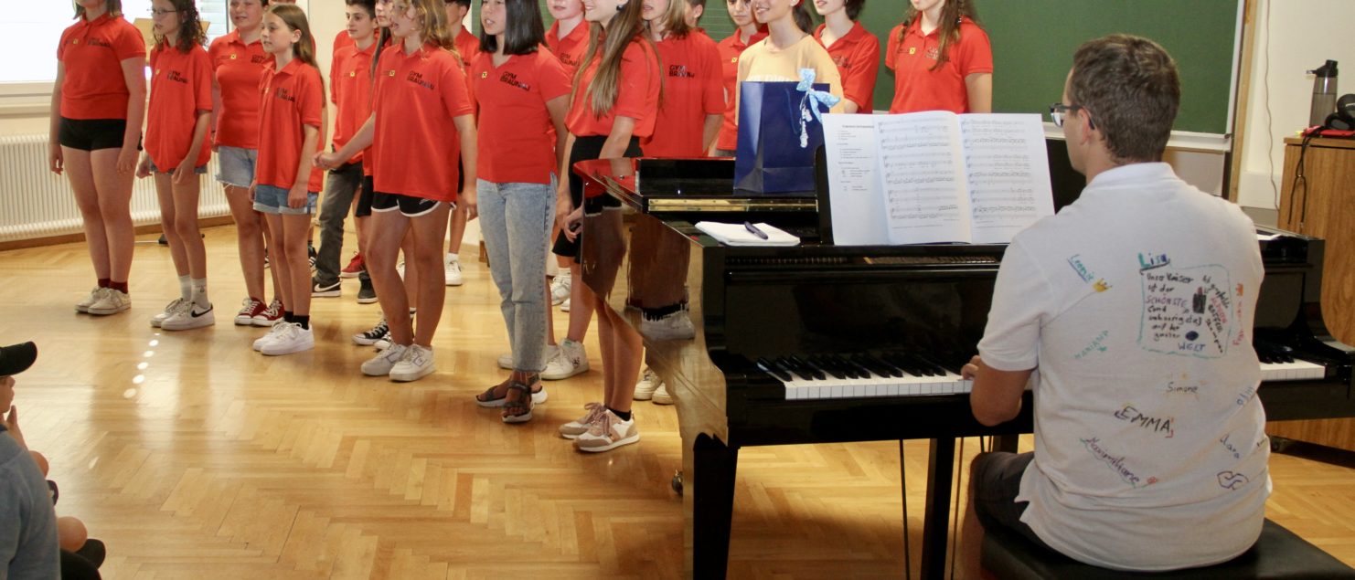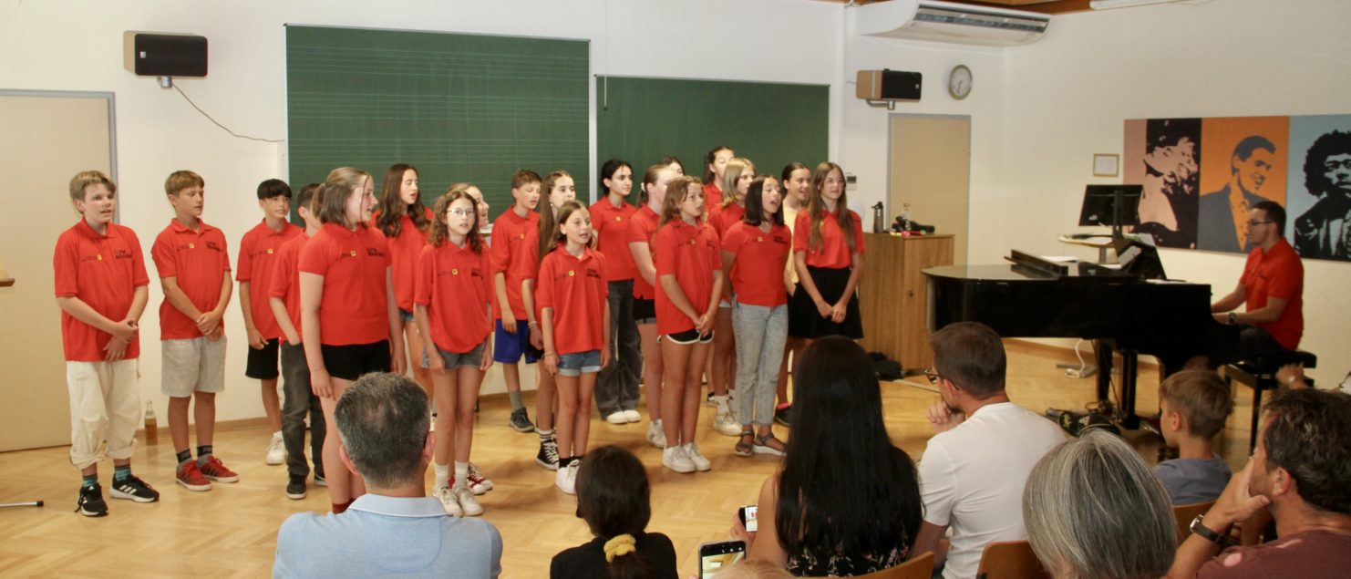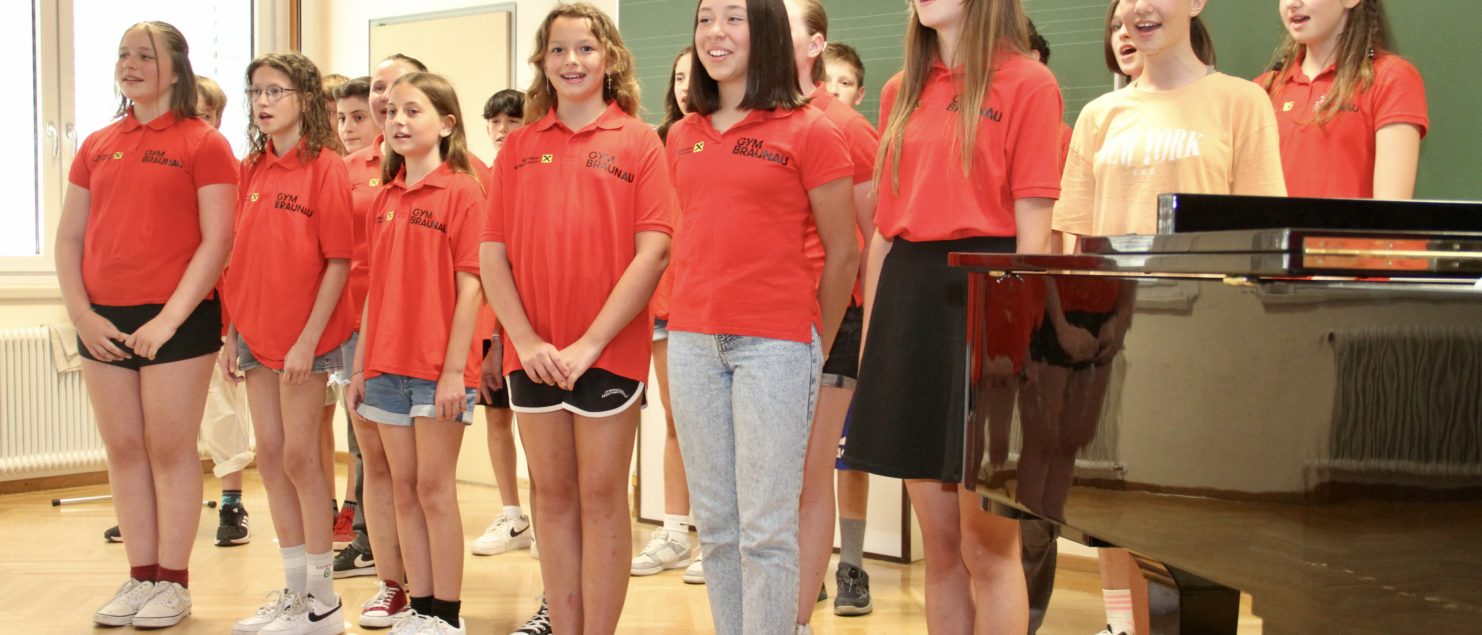 Mit einem Best-of-Programm aus einem sehr umfangreichen Repertoire, das in zwei Schuljahren erarbeitet wurde, begeisterte die Chorklasse 2A unter der Leitung ihres Klassenvorstands und Chorleiters Matthias Kritzinger die Besucherinnen und Besucher des Vortragsabends am 29. Juni im Musiksaal.
