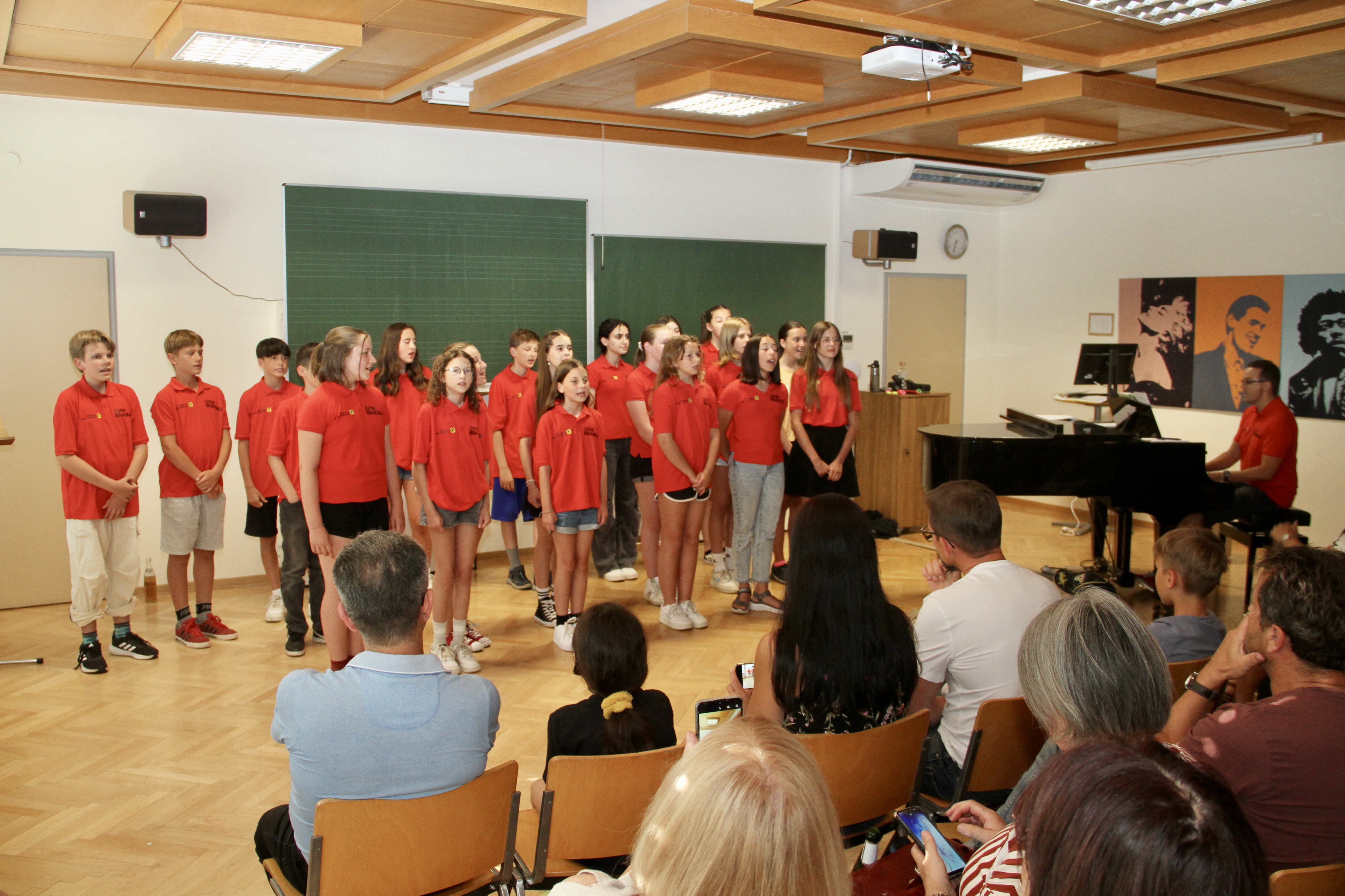 Mit einem Best-of-Programm aus einem sehr umfangreichen Repertoire, das in zwei Schuljahren erarbeitet wurde, begeisterte die Chorklasse 2A unter der Leitung ihres Klassenvorstands und Chorleiters Matthias Kritzinger die Besucherinnen und Besucher des Vortragsabends am 29. Juni im Musiksaal.