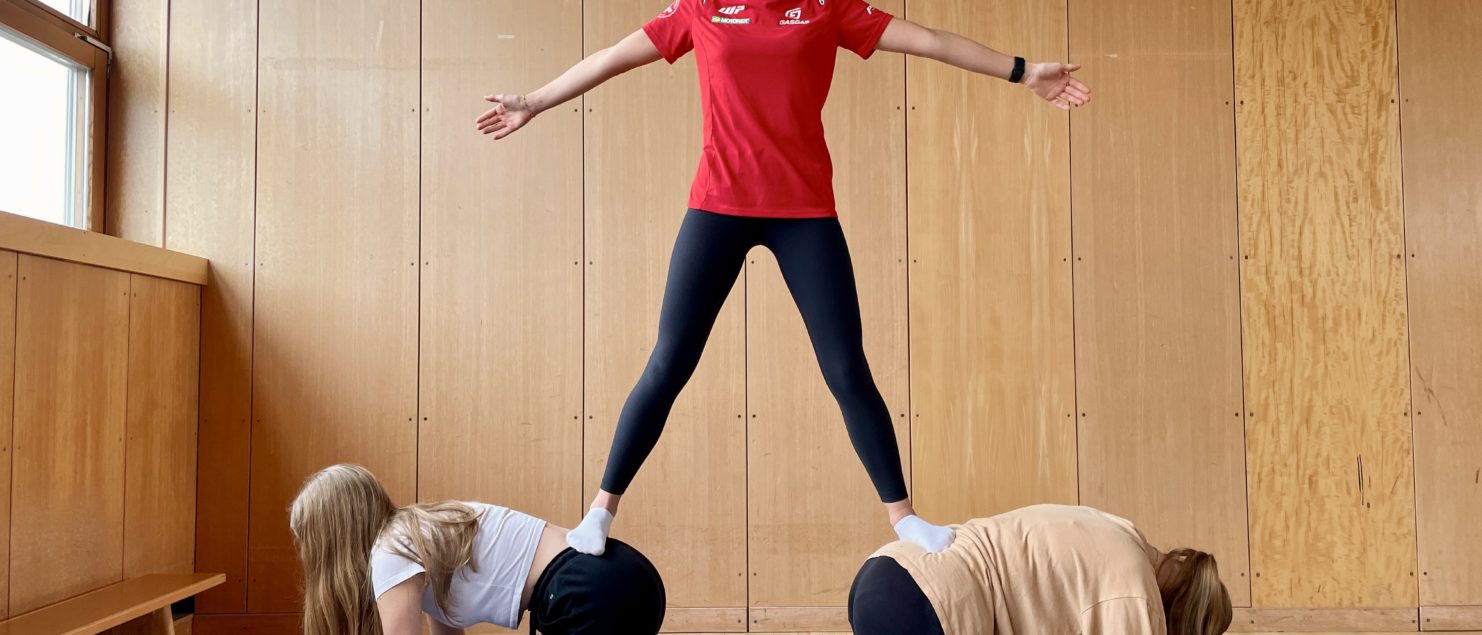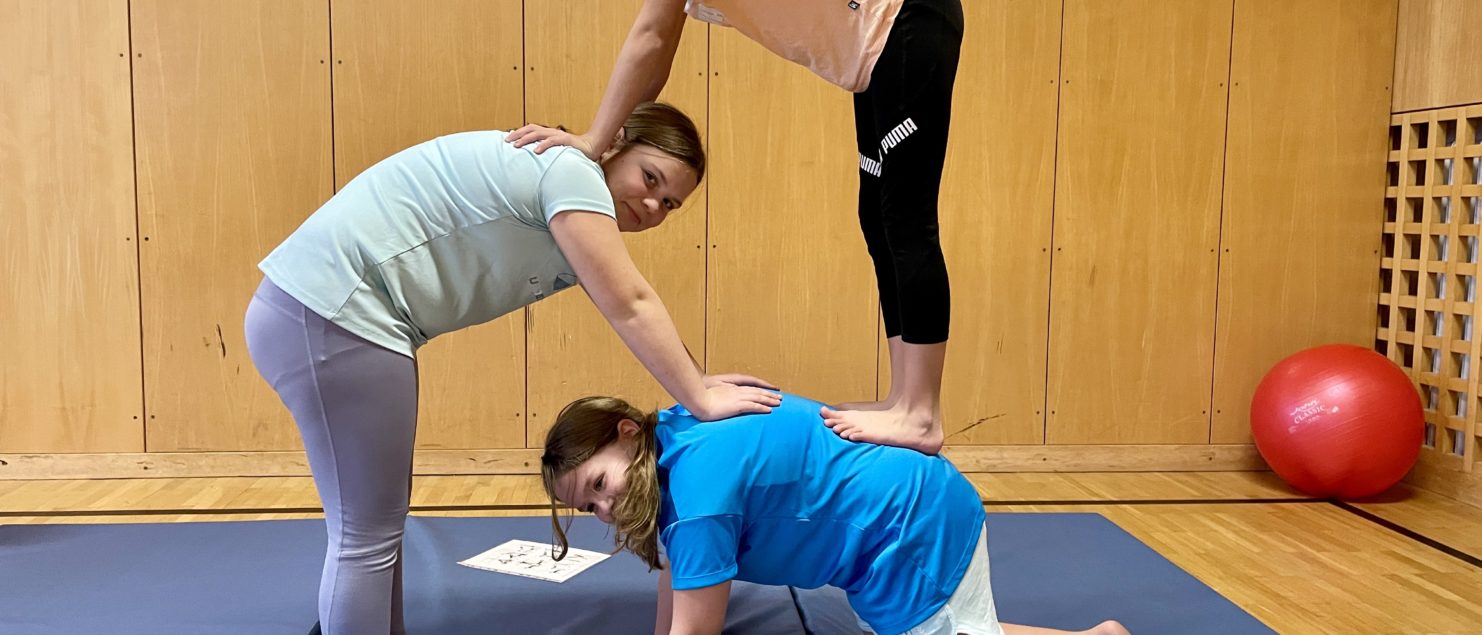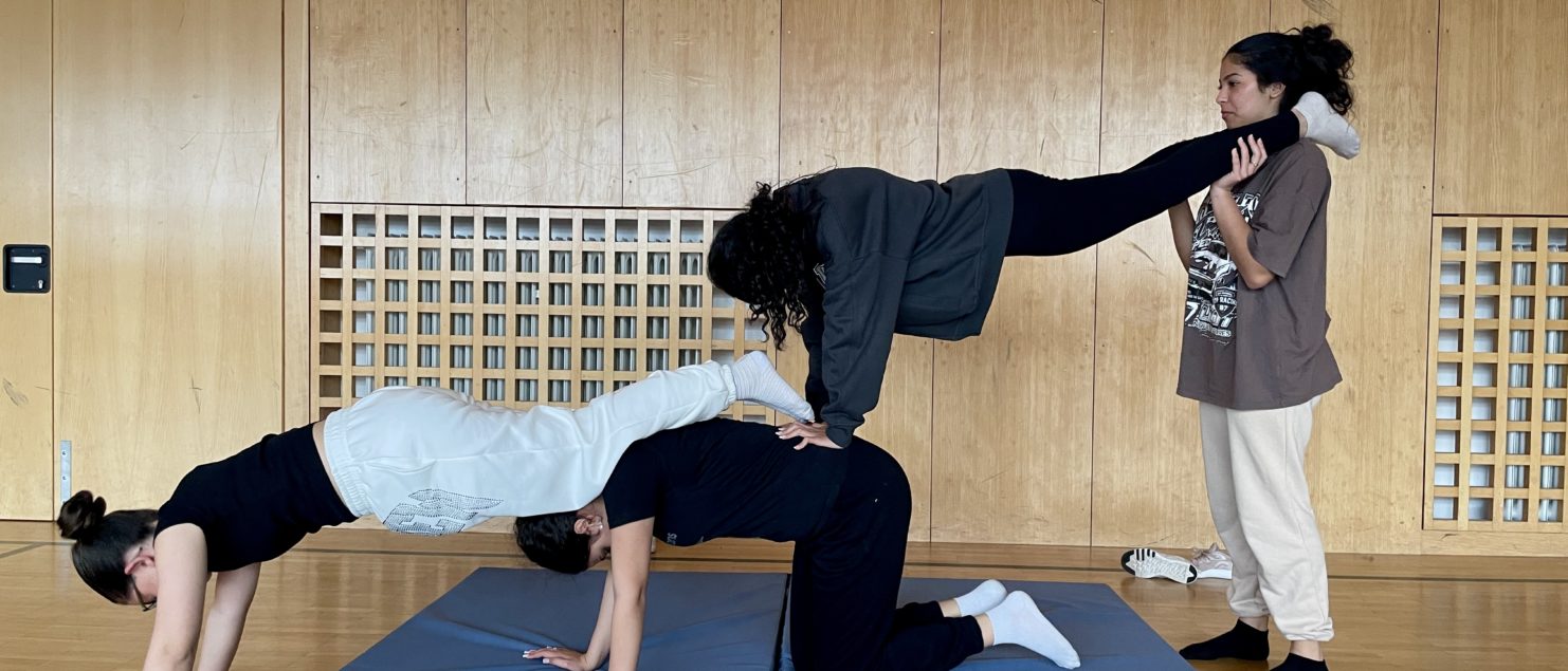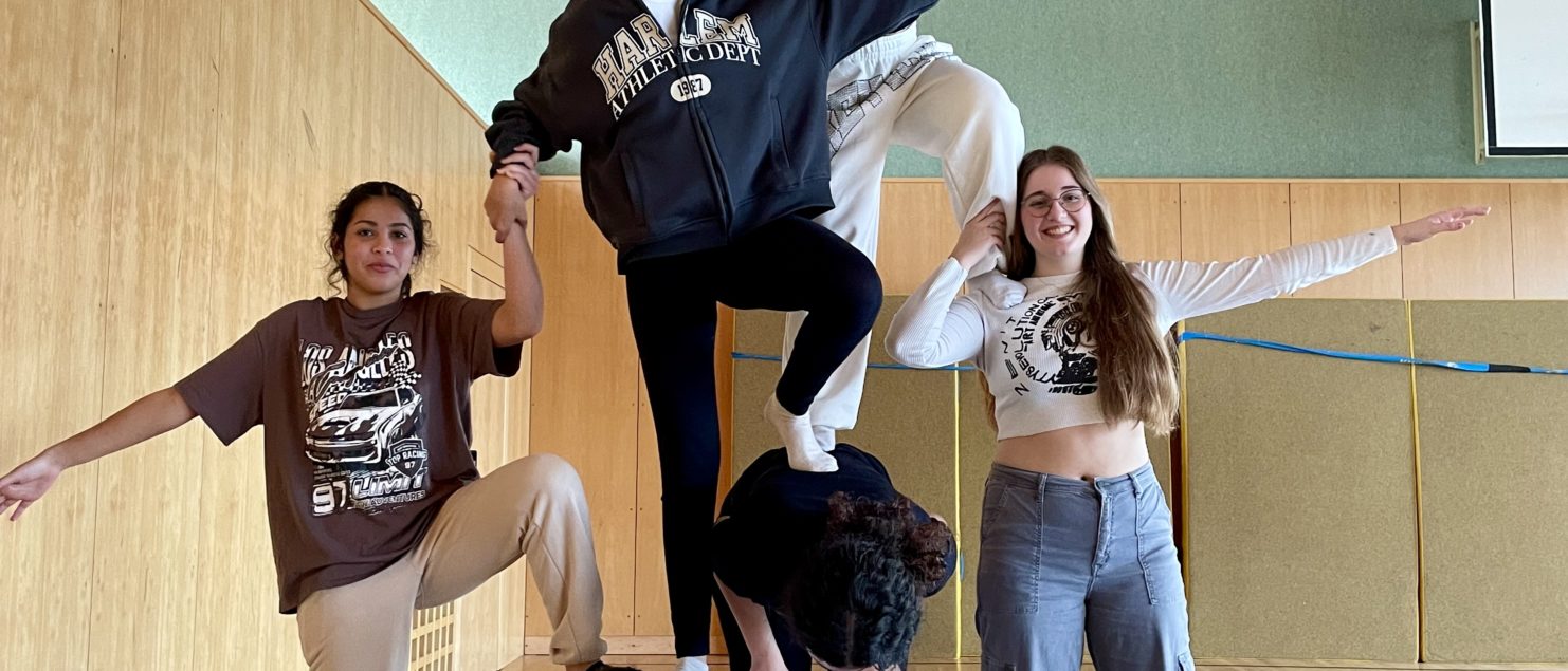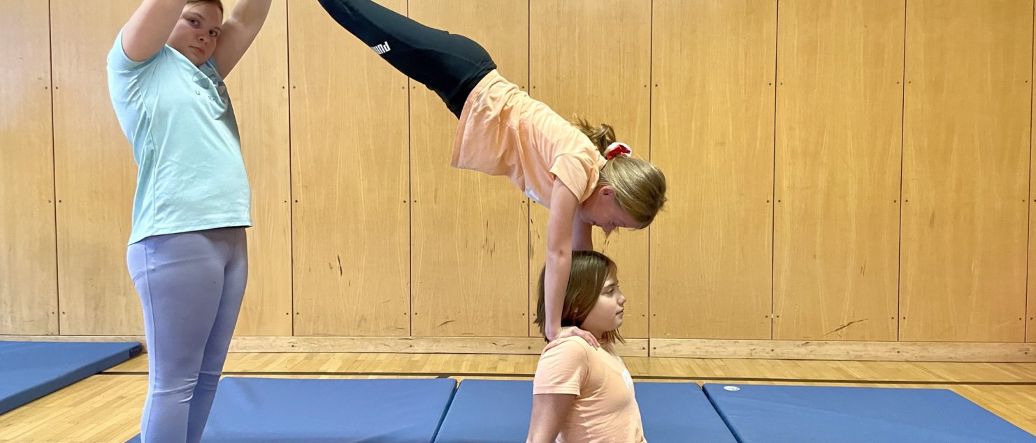 Die Schülerinnen der ersten und der fünften Klassen übten akrobatische Figuren ein, die sie mit Freude vorzeigen.