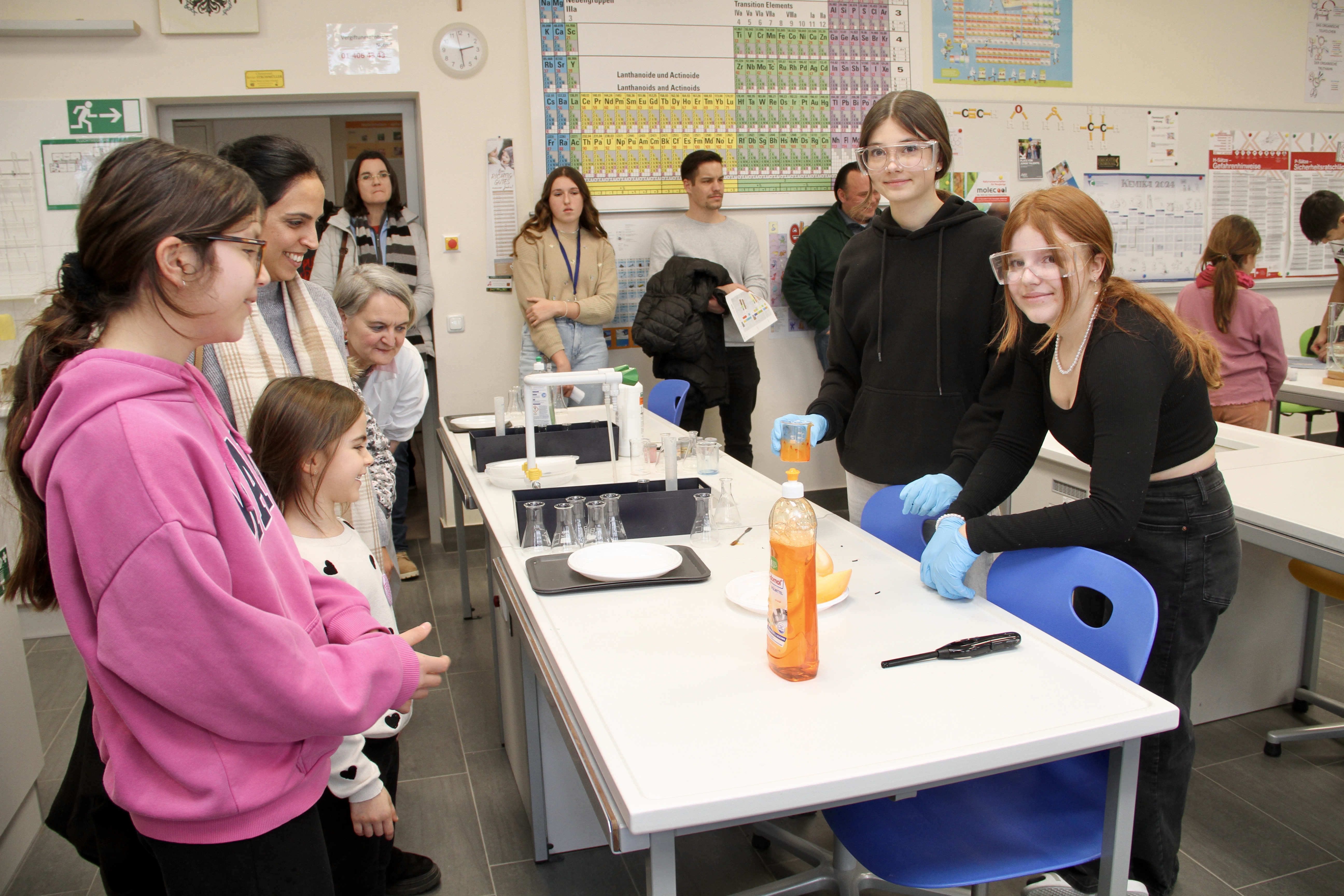 Nach einer Einführung durch Bildungsberater Oliver Bachleitner führten Schüler/innen der Oberstufe die Gäste durch das Schulgebäude. An zahlreichen Informations- und Mitmachstationen wurden einzelne Gegenstände präsentiert. Auch (fast) regulärer Mathematikunterricht wurde geboten.