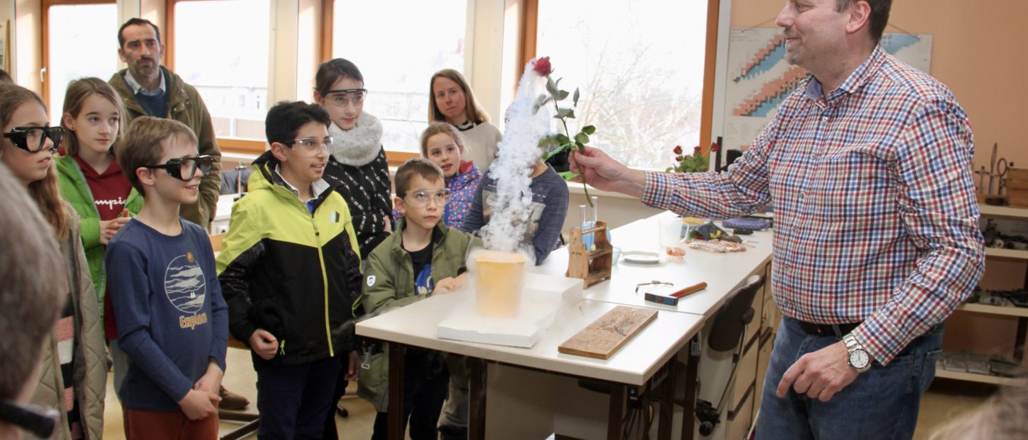 Schülerinnen und Schüler aus der vierten Klasse Volksschule und ihre Eltern informierten sich über die Bildungsangebote am Gymnasium Braunau. Dank des großen Einsatzes von Lehrerinnen und Lehrern sowie Schülerinnen und Schülern konnte ein abwechslungsreiches und kurzweiliges Programm geboten werden.