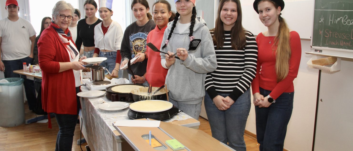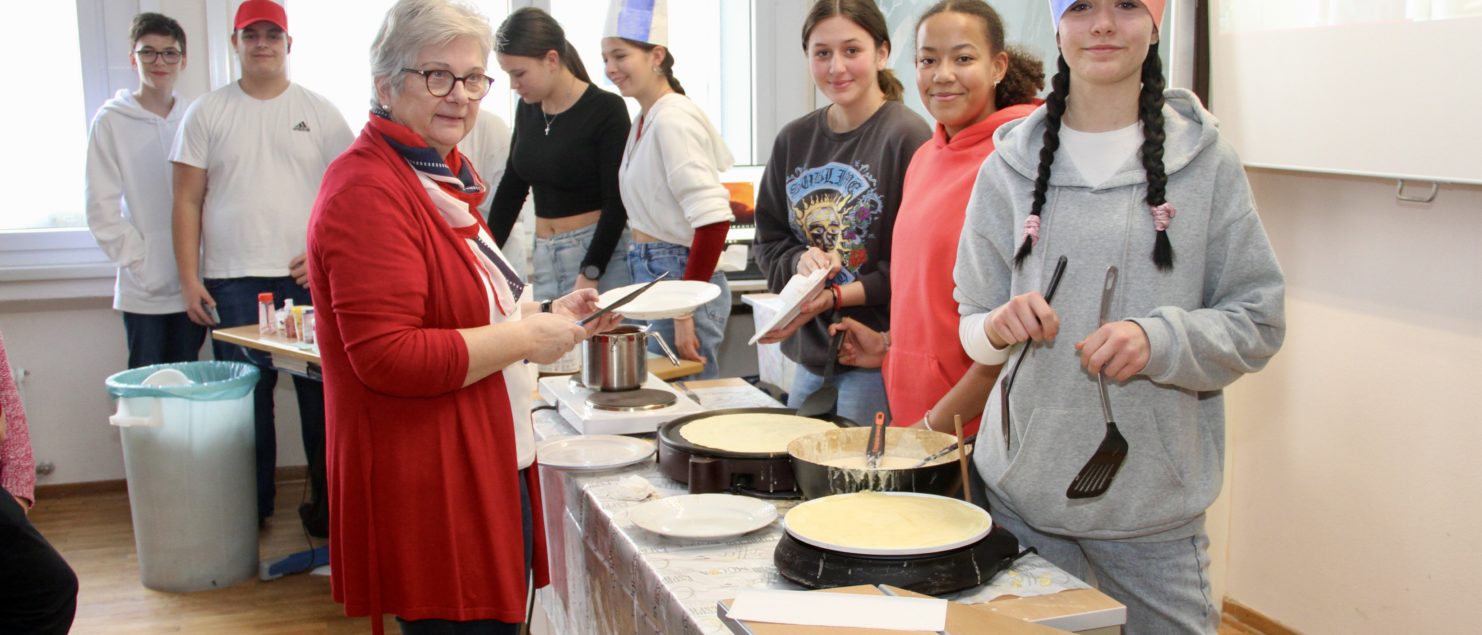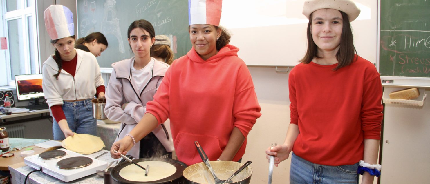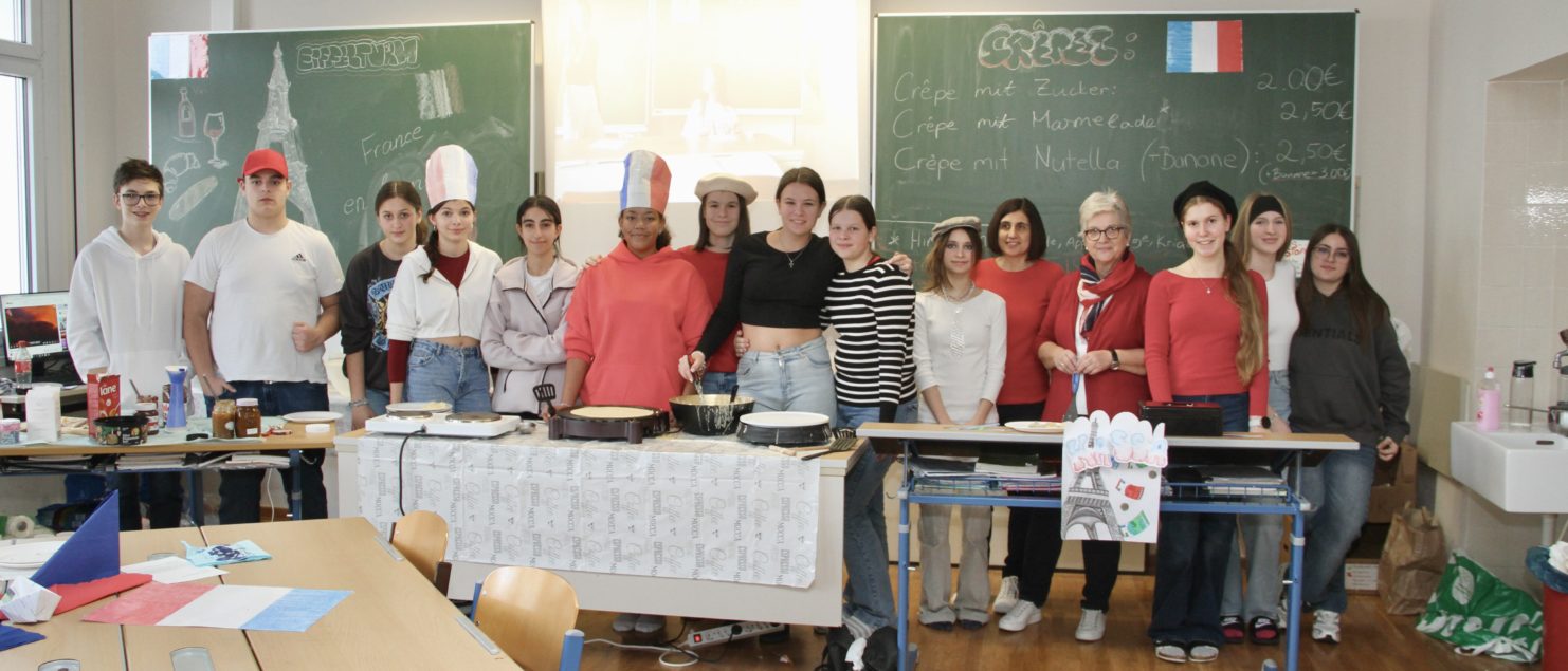 Für das leibliche Wohl sorgten in bewährter Weise Schülerinnen und Schüler der 7. Klassen, die ein Buffet vorbereitet hatten, sowie eine Französisch-Gruppe mit den beliebten Crêpes.