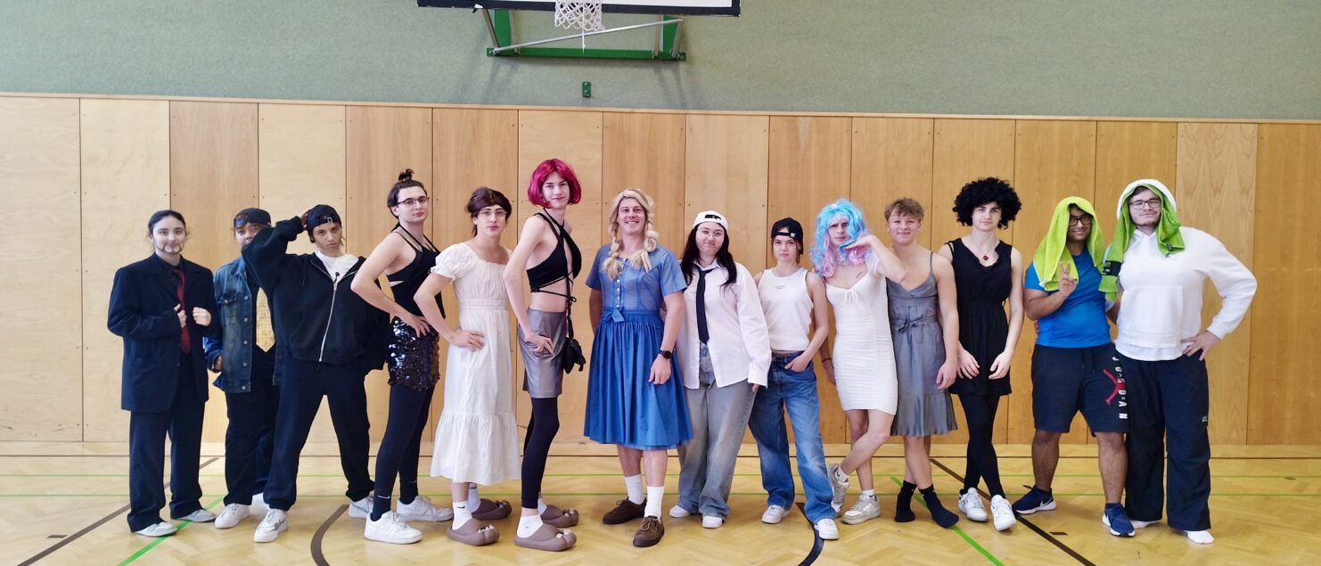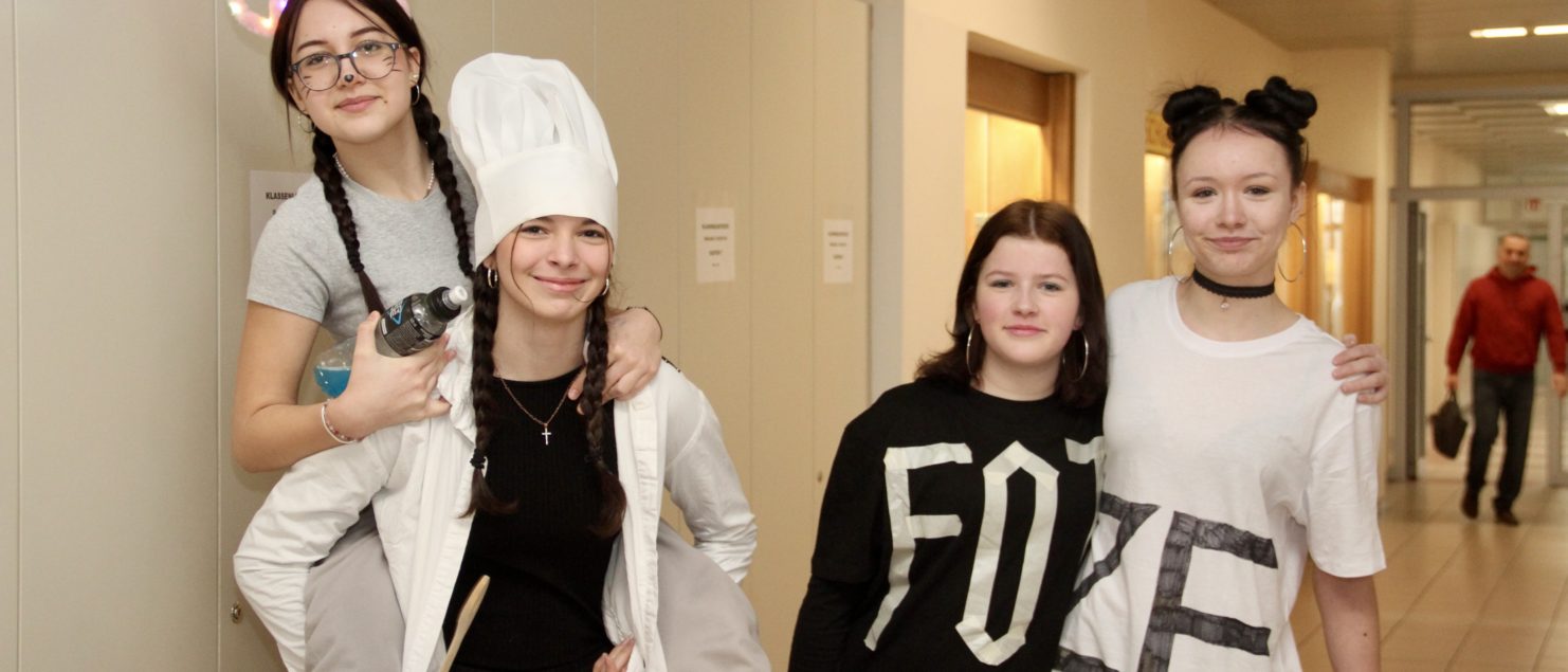 Der Aufruf der Schüler/innenvertretung zeitigte Wirkung: Sehr viele Schülerinnen und Schüler von der ersten bis zur achten Klasse und auch einige Lehrerinnen und Lehrer kamen am Faschingsdienstag mit einfallsreichen, lustigen und schönen Kostümen und Maskierungen in die Schule.