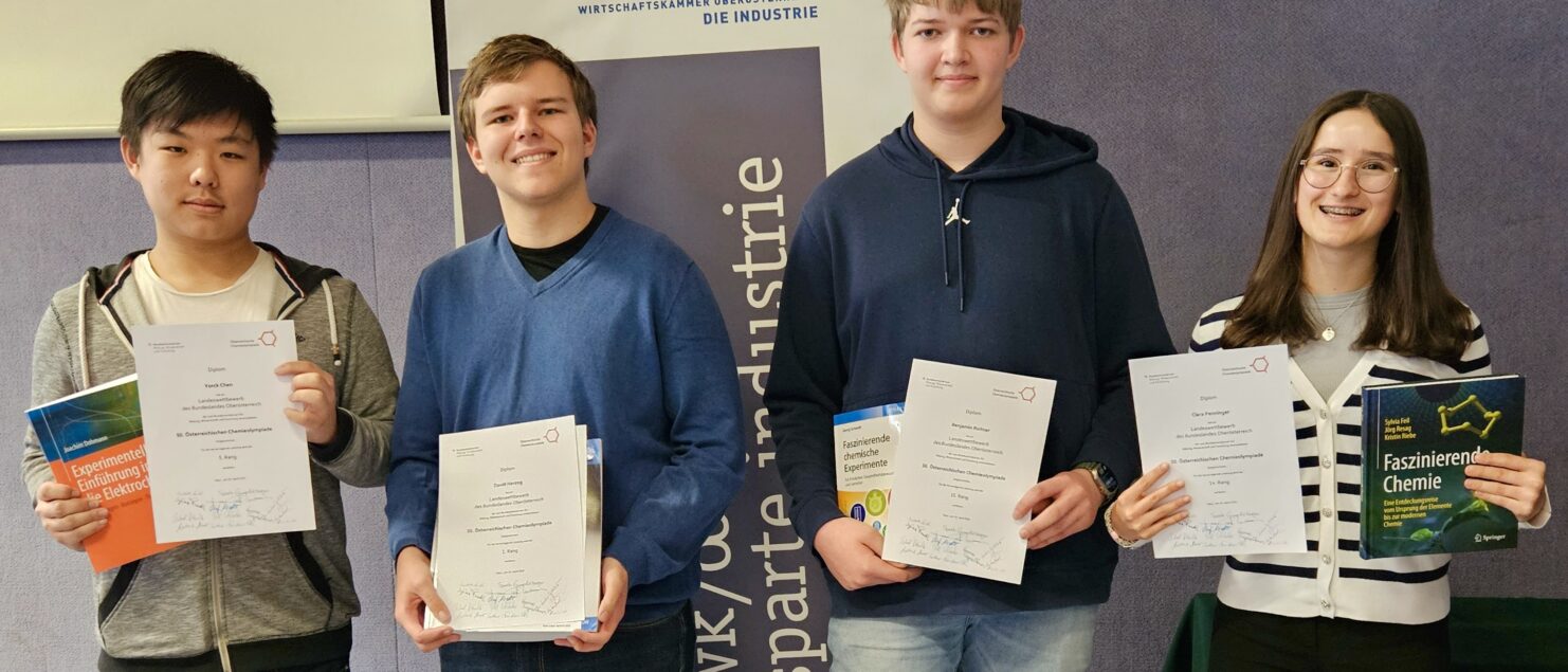 David Herzog, Schüler der 8B-Klasse des Gymnasiums Braunau, gewann den 50. Landeswettbewerb der Chemieolympiade, der vom 22. bis 24. April am BRG Steyr abgehalten wurde, und konnte sich so erneut für den Bundeswettbewerb qualifizieren. Sein Klassenkollege Yorck Chen erreichte den guten 5. Platz.