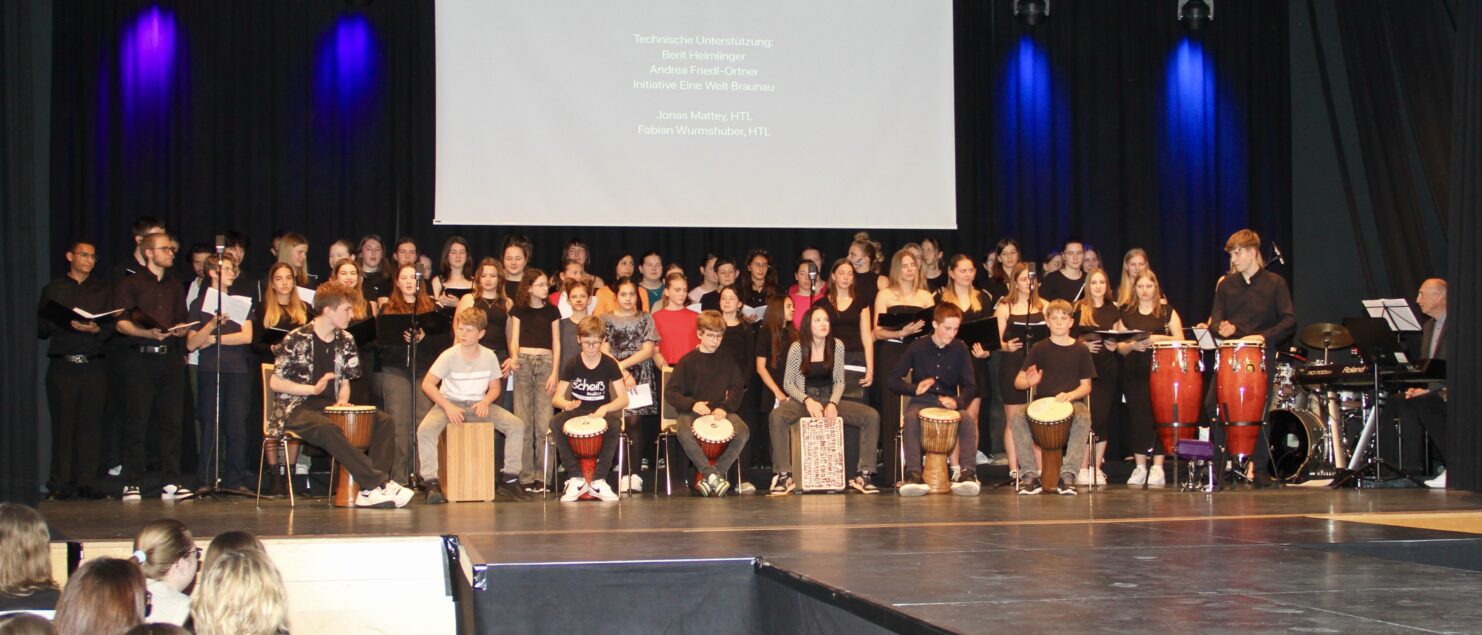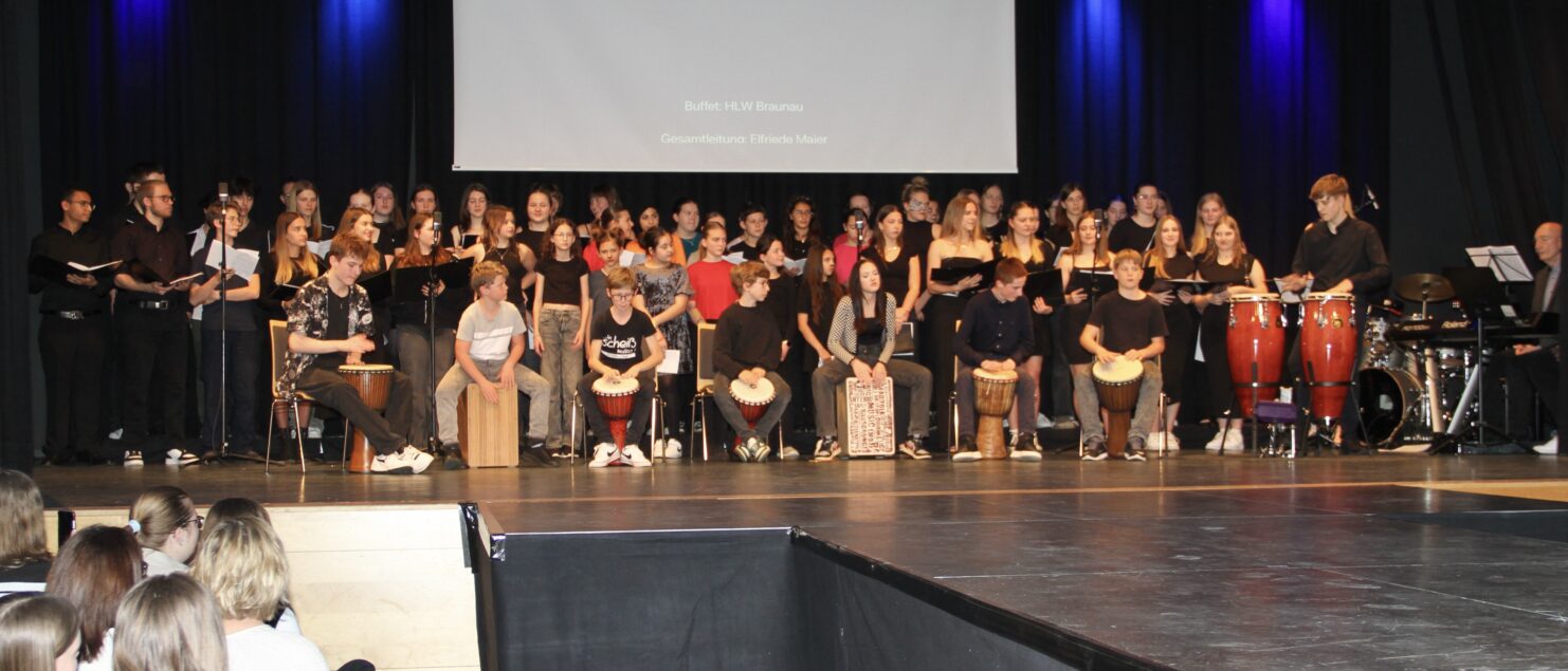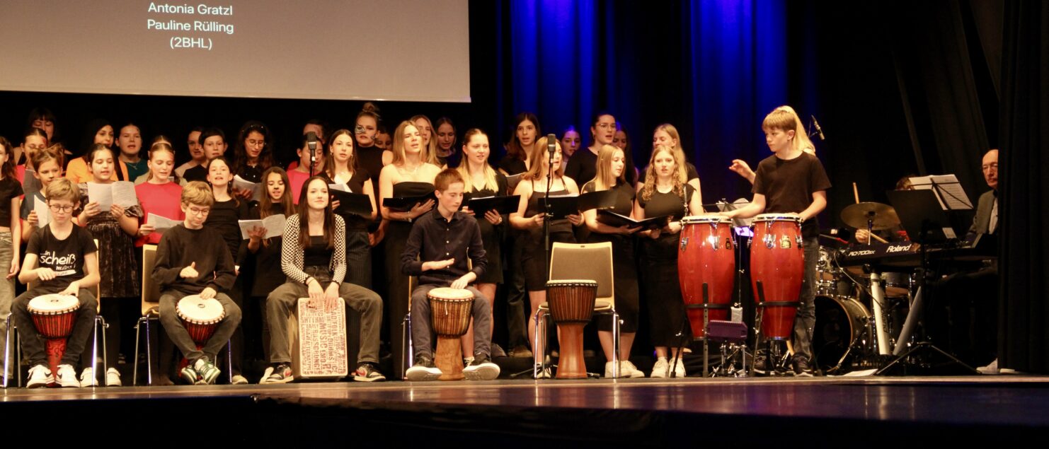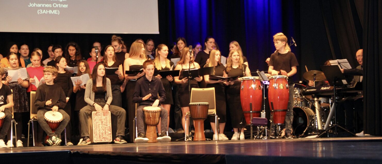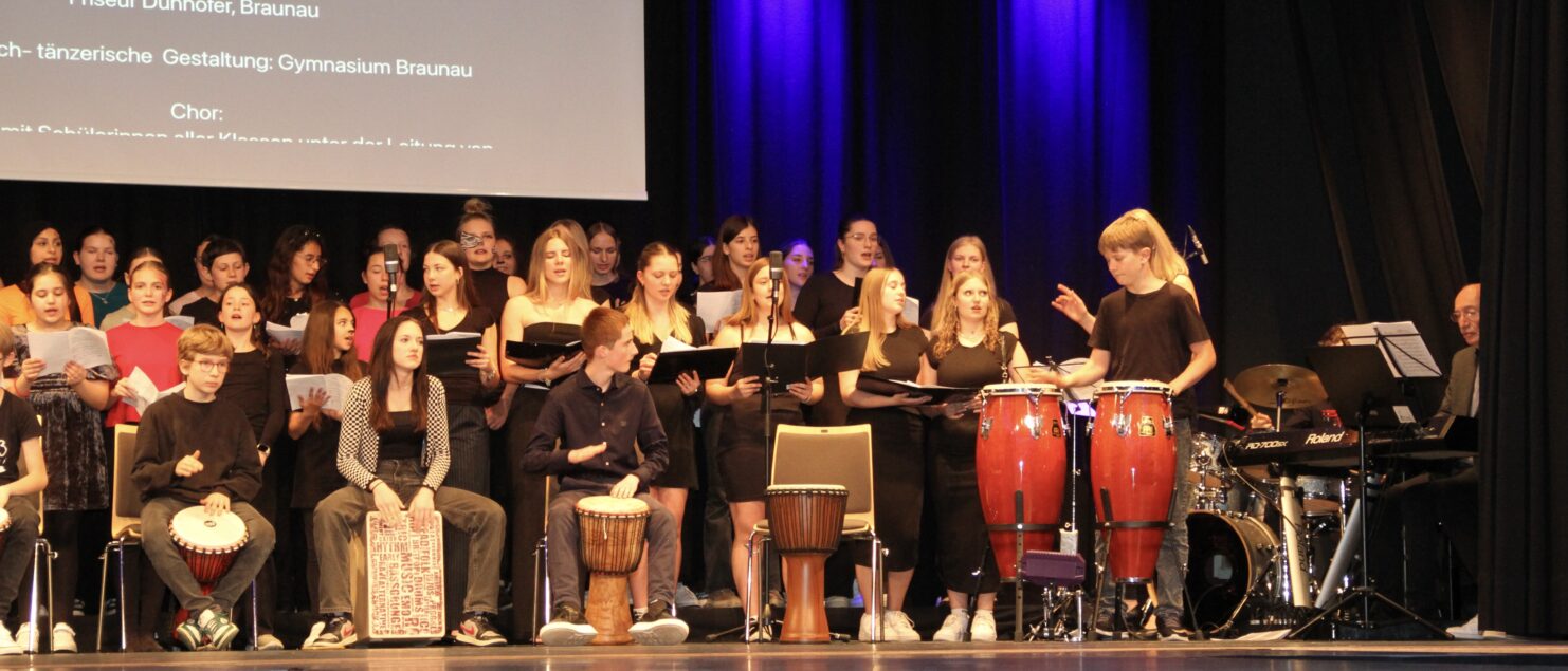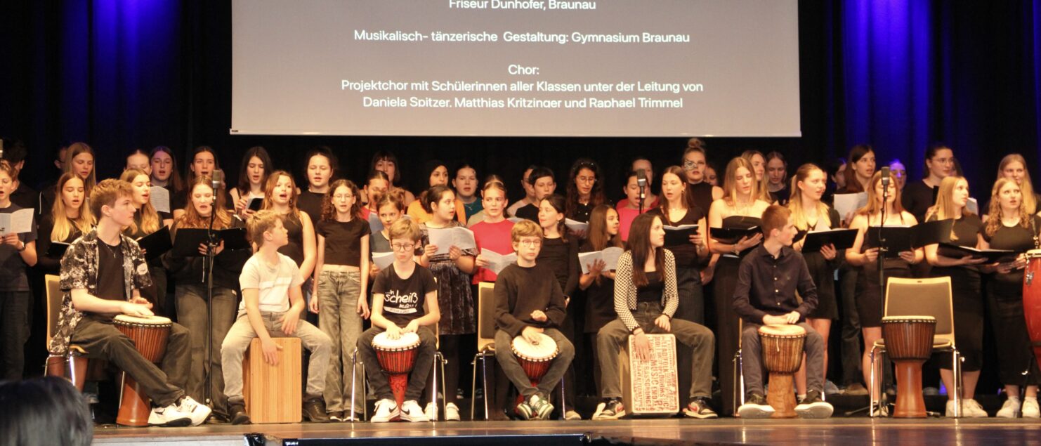 Das Gymnasium war für die Musik- und Tanzbeiträge auserwählt worden. Rund 95 Sängerinnen und Sänger, Musikerinnen und Musiker sowie Tänzerinnen und Tänzer hatten in den zurückliegenden Monaten unter der fachkundigen Regie von Daniela Spitzer und Monika Höfelsauer mit großem Engagement ihre Auftritte vorbereitet und einstudiert. Große Unterstützung erfuhren sie dabei auch von den Musiklehrern Matthias Kritzinger und Raphael Trimmel, von Stefanie Leeb und Daniela Hötzenauer von den Beasty Ladies sowie den Musikern Wolfgang Maier und Ernst Kreuzmaier. Bernadette Uttenthaler war mit der Herstellung der Kostüme befasst, Katharina Becher, Tanja Schmeitzl und Doris Zieher betreuten die Kinder und Jugendlichen am Tag der Aufführung in allerlei Angelegenheiten.