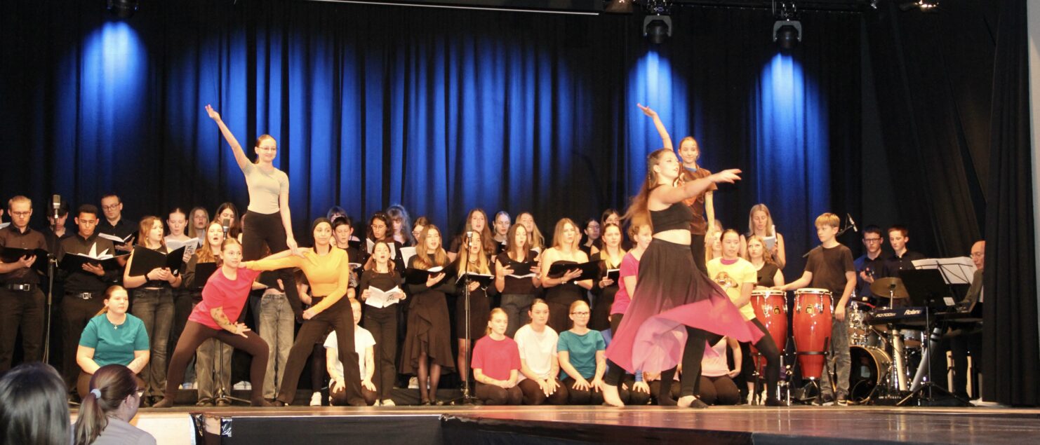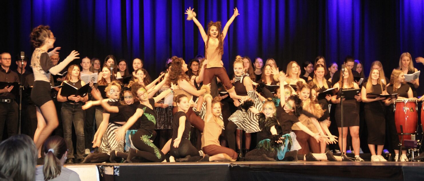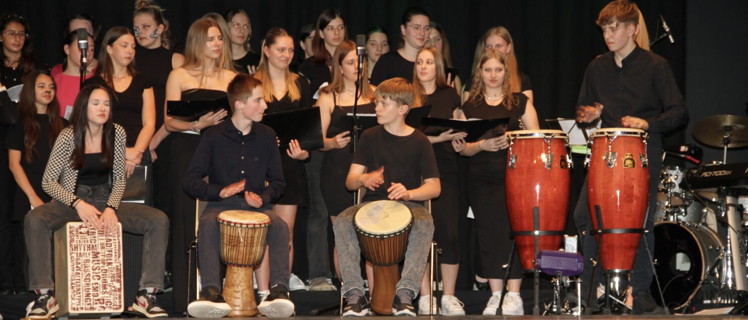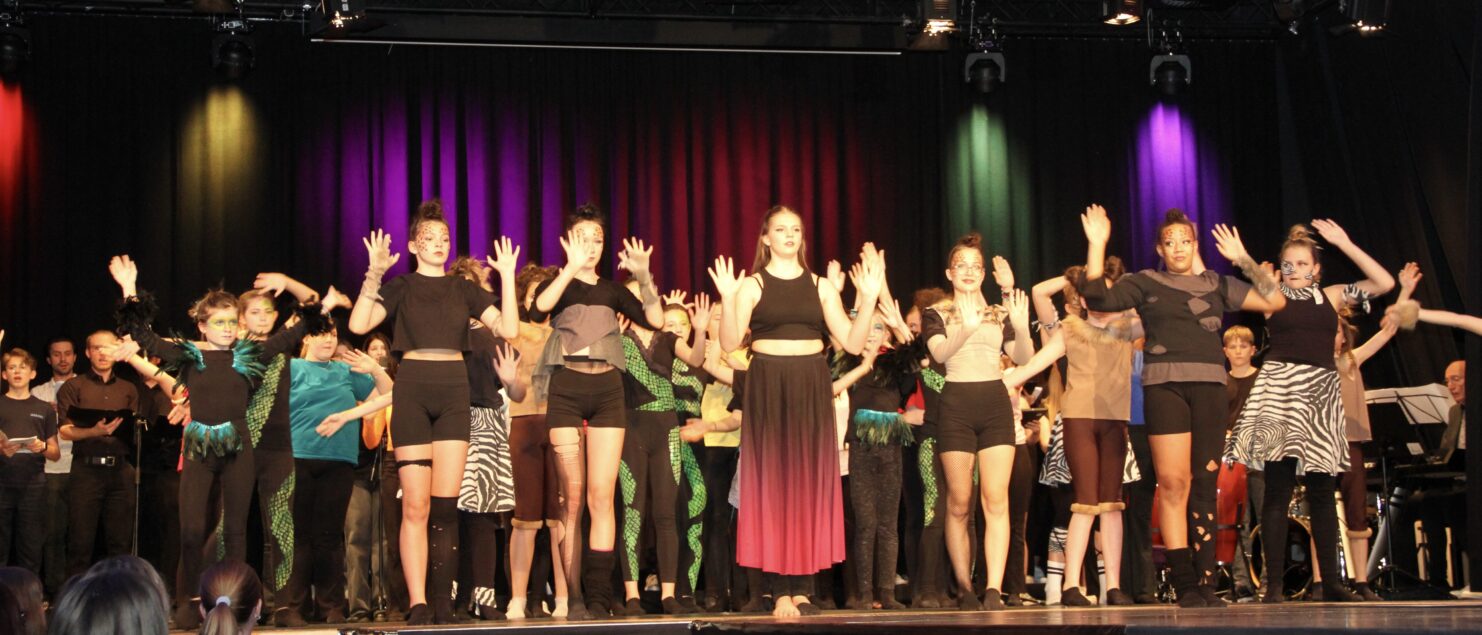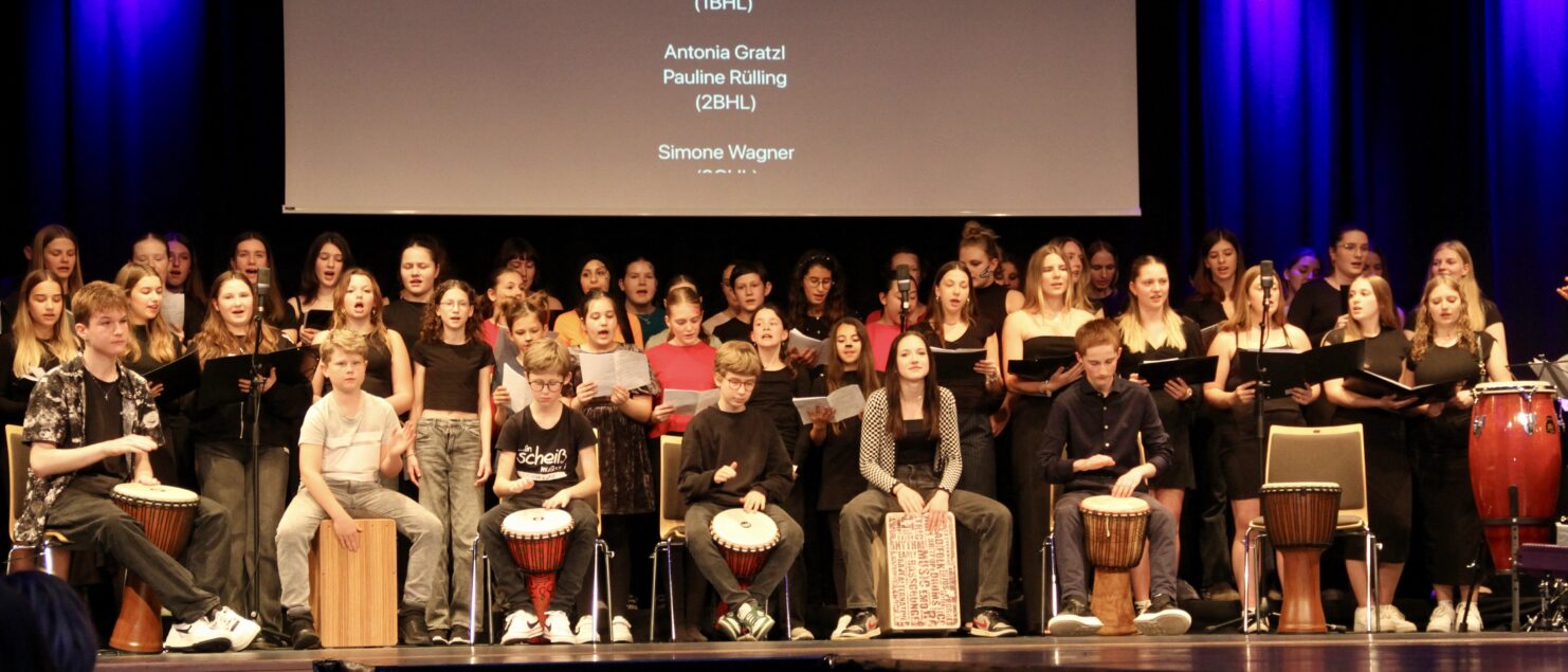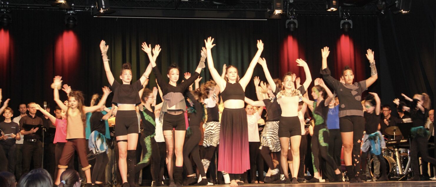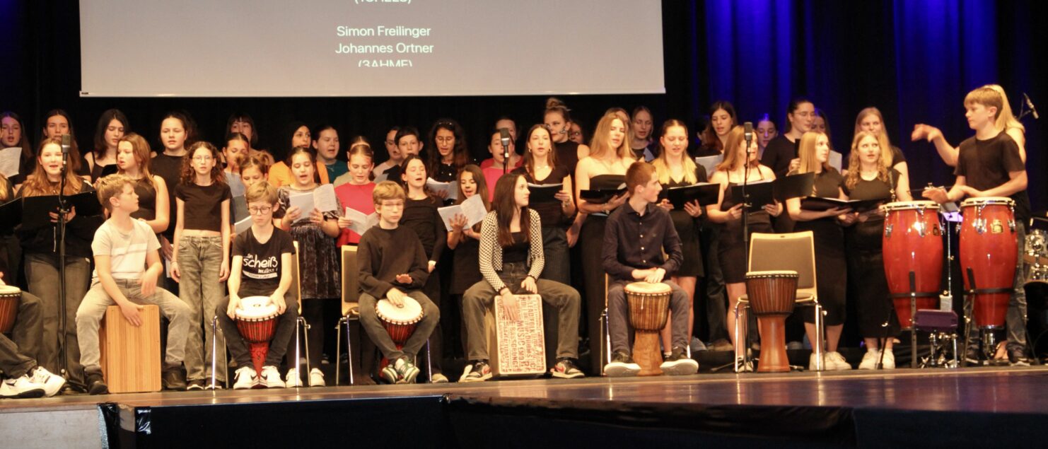 Das Gymnasium war für die Musik- und Tanzbeiträge auserwählt worden. Rund 95 Sängerinnen und Sänger, Musikerinnen und Musiker sowie Tänzerinnen und Tänzer hatten in den zurückliegenden Monaten unter der fachkundigen Regie von Daniela Spitzer und Monika Höfelsauer mit großem Engagement ihre Auftritte vorbereitet und einstudiert. Große Unterstützung erfuhren sie dabei auch von den Musiklehrern Matthias Kritzinger und Raphael Trimmel, von Stefanie Leeb und Daniela Hötzenauer von den Beasty Ladies sowie den Musikern Wolfgang Maier und Ernst Kreuzmaier. Bernadette Uttenthaler war mit der Herstellung der Kostüme befasst, Katharina Becher, Tanja Schmeitzl und Doris Zieher betreuten die Kinder und Jugendlichen am Tag der Aufführung in allerlei Angelegenheiten.