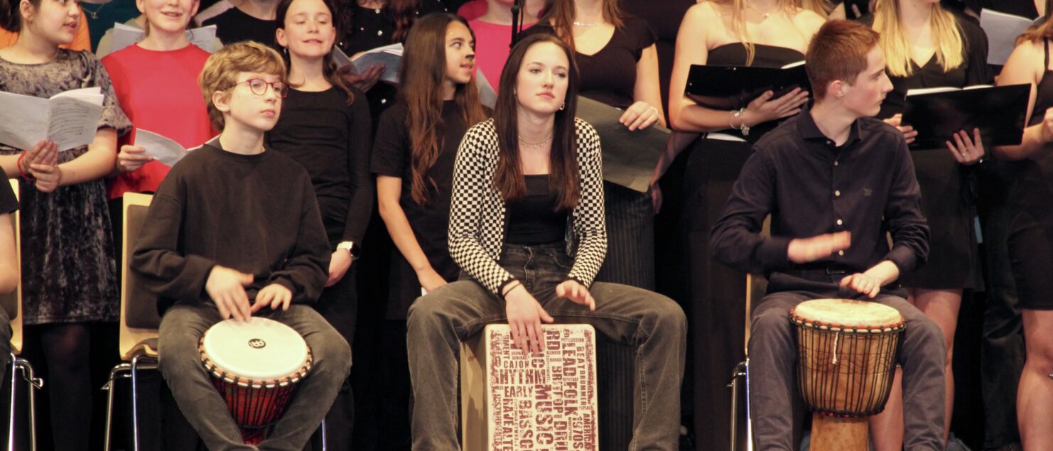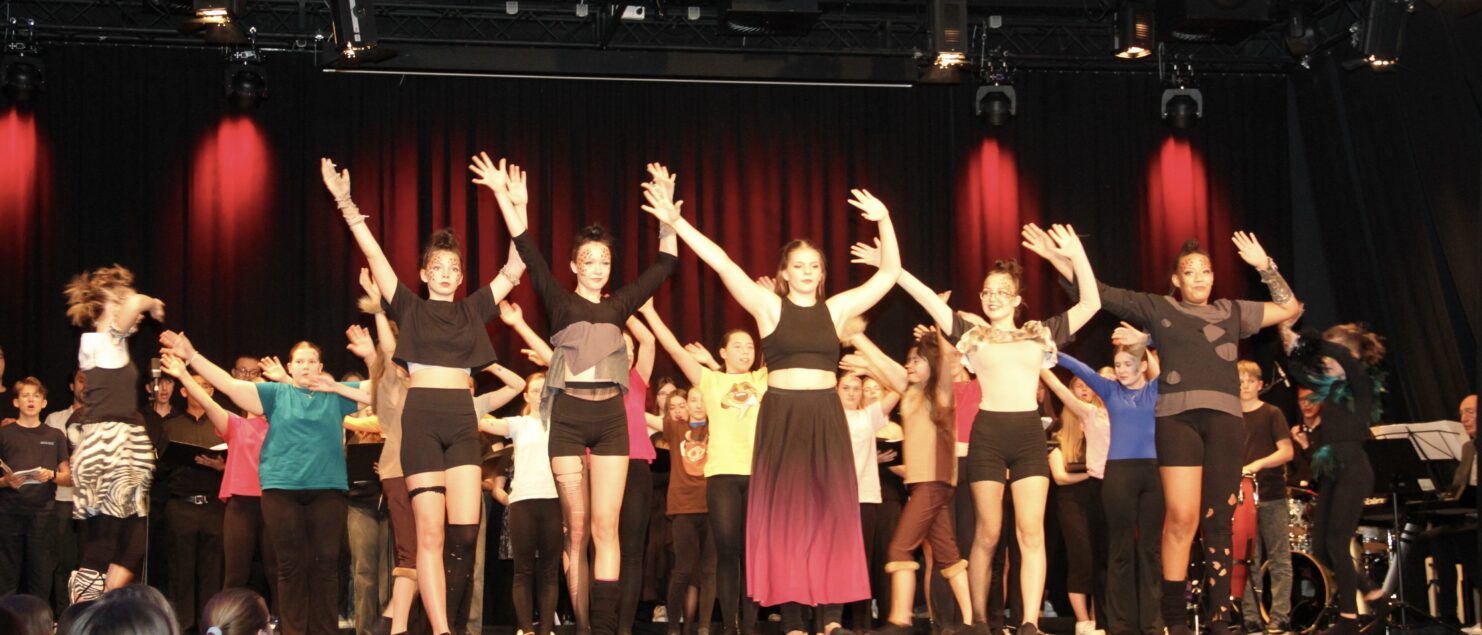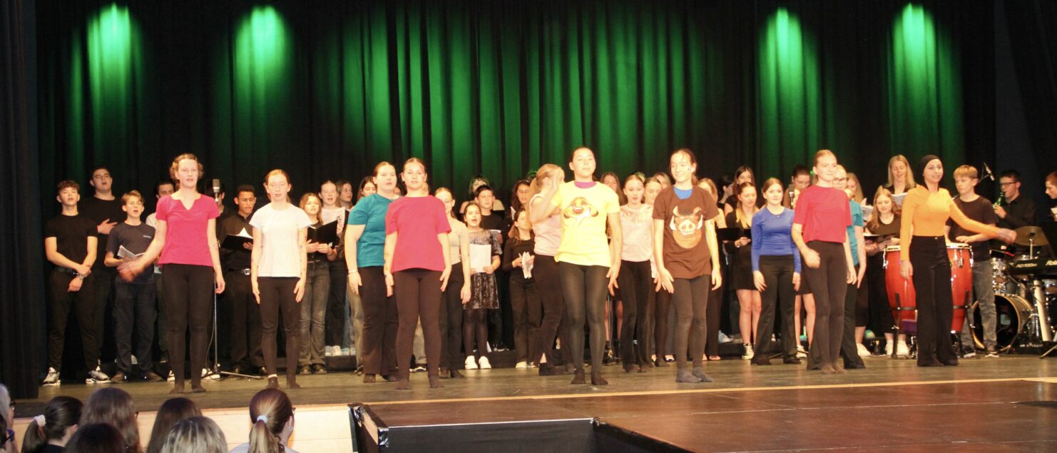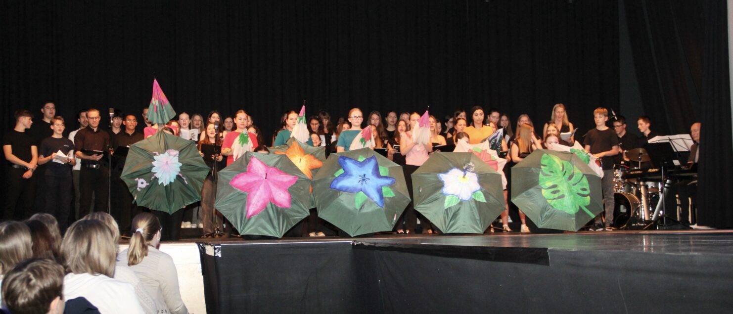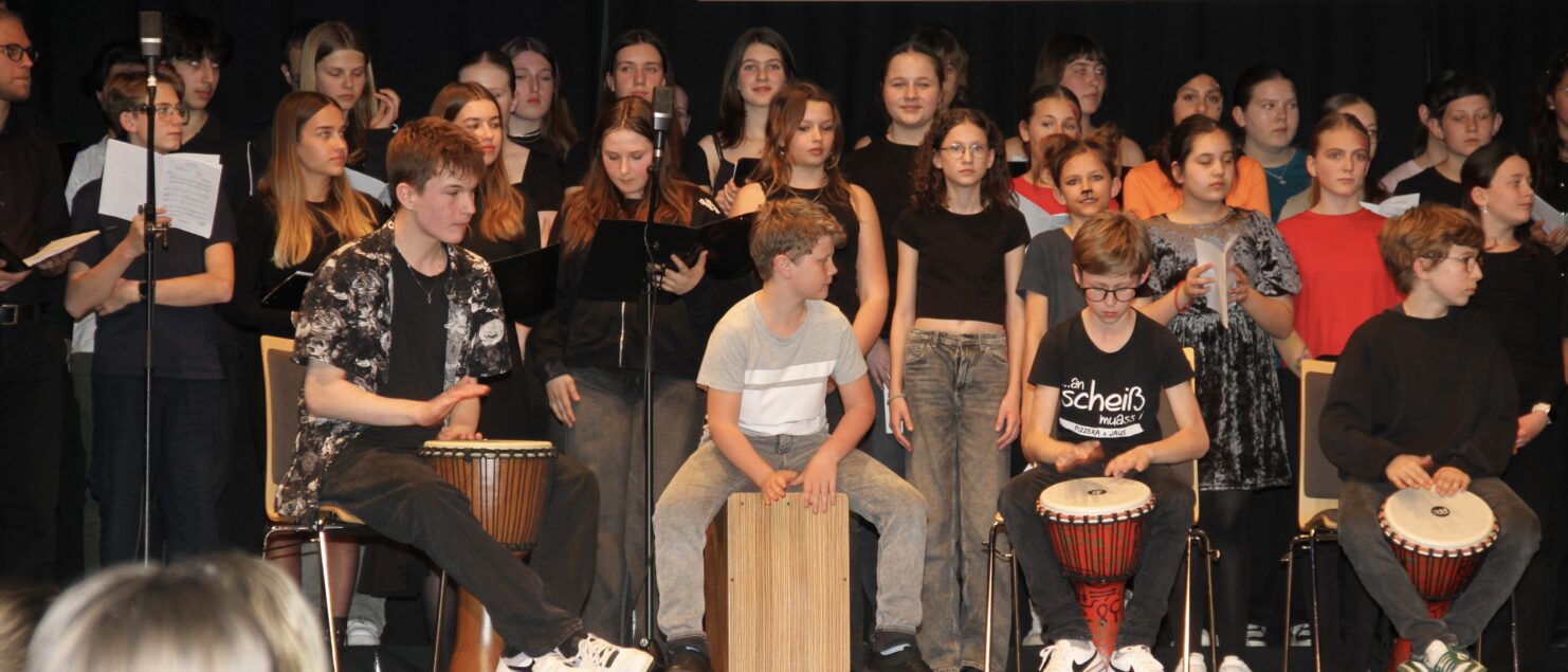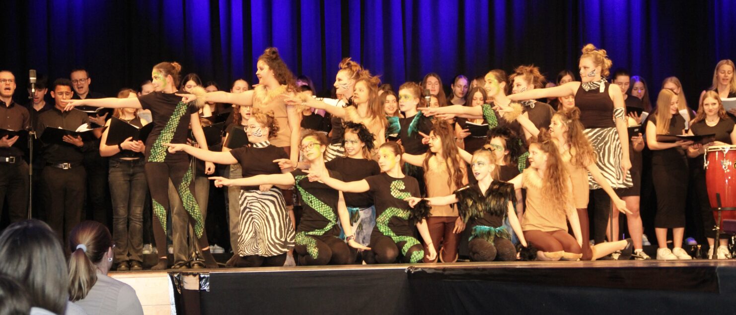 Das Gymnasium war für die Musik- und Tanzbeiträge auserwählt worden. Rund 95 Sängerinnen und Sänger, Musikerinnen und Musiker sowie Tänzerinnen und Tänzer hatten in den zurückliegenden Monaten unter der fachkundigen Regie von Daniela Spitzer und Monika Höfelsauer mit großem Engagement ihre Auftritte vorbereitet und einstudiert. Große Unterstützung erfuhren sie dabei auch von den Musiklehrern Matthias Kritzinger und Raphael Trimmel, von Stefanie Leeb und Daniela Hötzenauer von den Beasty Ladies sowie den Musikern Wolfgang Maier und Ernst Kreuzmaier. Bernadette Uttenthaler war mit der Herstellung der Kostüme befasst, Katharina Becher, Tanja Schmeitzl und Doris Zieher betreuten die Kinder und Jugendlichen am Tag der Aufführung in allerlei Angelegenheiten.