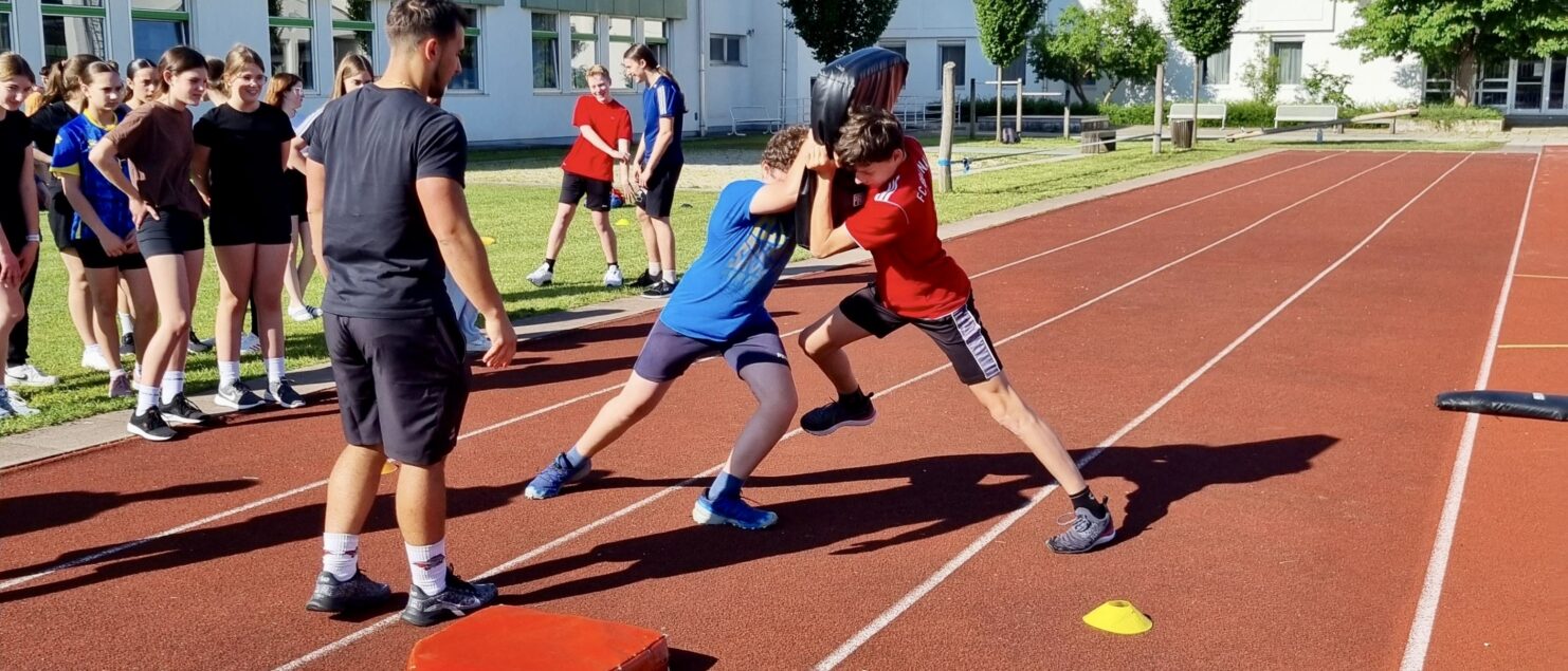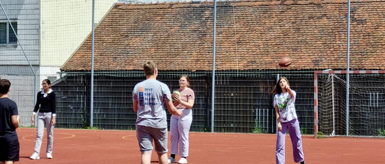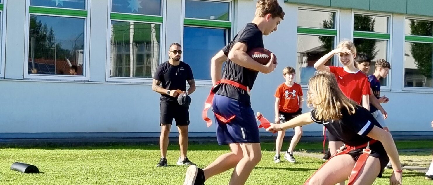 In Praxiseinheiten wurde an unterschiedlichen Stationen American Football vermittelt. Zusätzlich fand in Englischstunden ein Austausch mit amerikanischen Spielern – natürlich auf Englisch – statt.