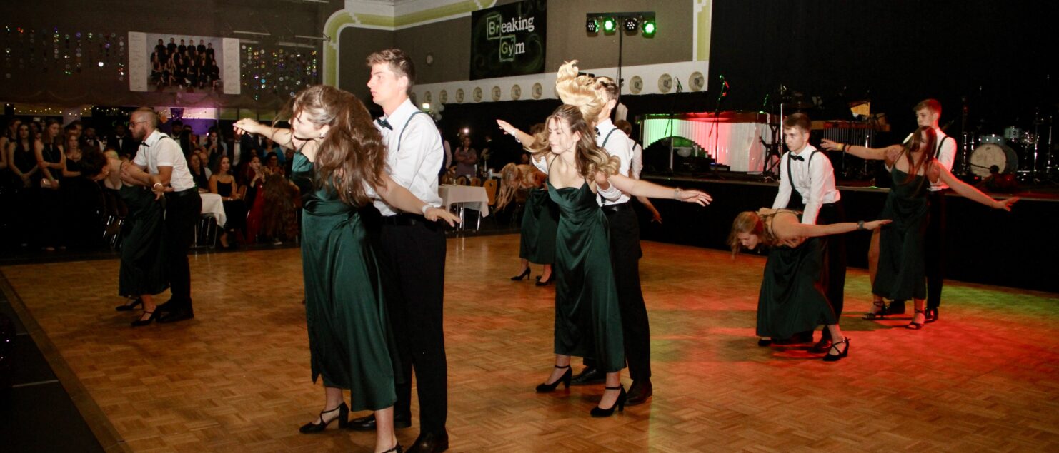 Die von Alexander Zaglmaier und Silke Waidbacher choreografierte und einstudierte Eröffnung war beeindruckend, die Mitternachtseinlage war auf gelungene Weise am Ballthema bzw. an der dafür Pate stehenden Serie orientiert. Die geniale Band „Dixie Rockers“ trug das Ihre zur guten Stimmung am Gymball bei.