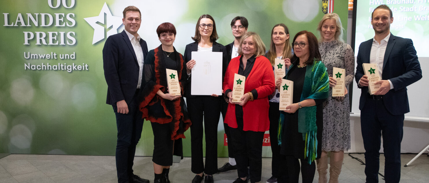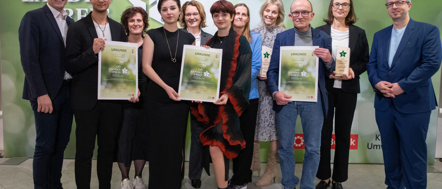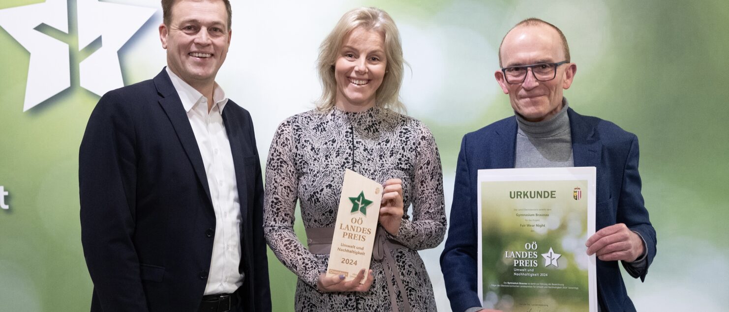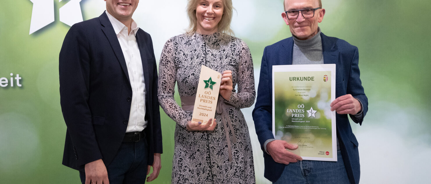 Unsere Schule wurde – wie auch die HLW und die HTL, die Initiative Eine Welt, der Weltladen und die Fair-Trade-Stadt Braunau – für das Projekt Fair Wear Night mit dem OÖ. Landespreis für Umwelt und Nachhaltigkeit ausgezeichnet.