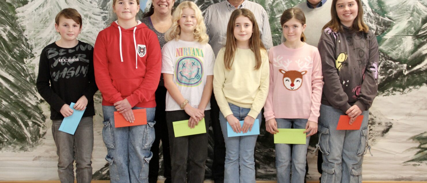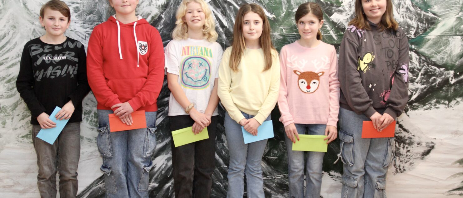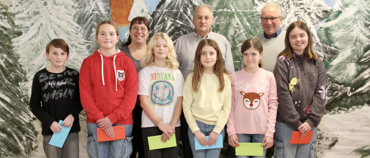 Am 17. Dezember kamen KommR Klemens Steidl und Prim. Dr. Robert Stelzl ins Gymnasium Braunau, um den klasseninternen Sieger/innen zu gratulieren: In der 2A sind dies Lina Aflenzer, Ellen Hertwich und Pia Linde, in der 2B Valerie Aberspach, Maximilian Brandmaier und Lisa Bernroider.