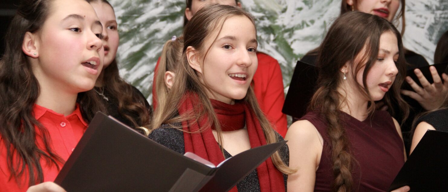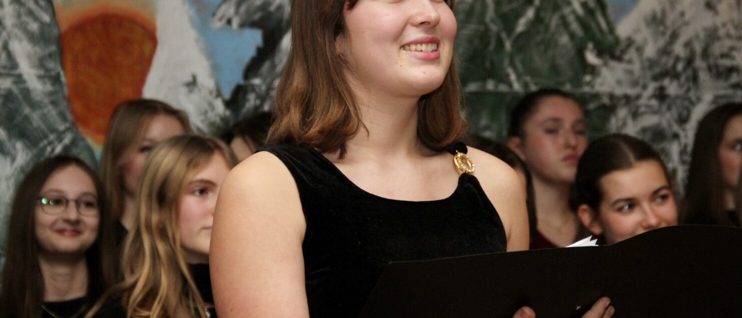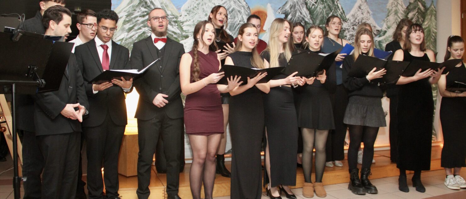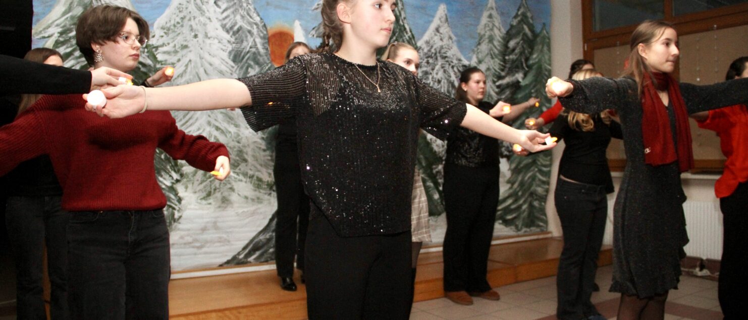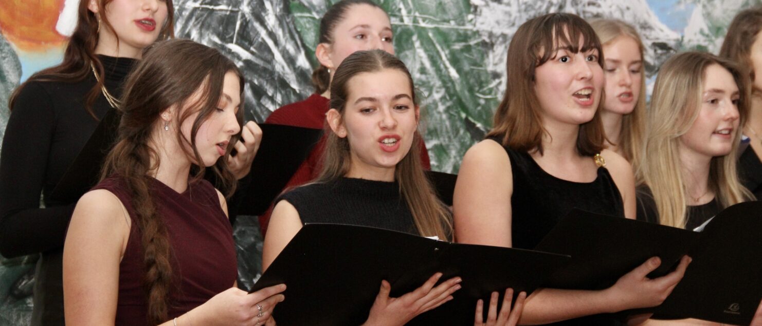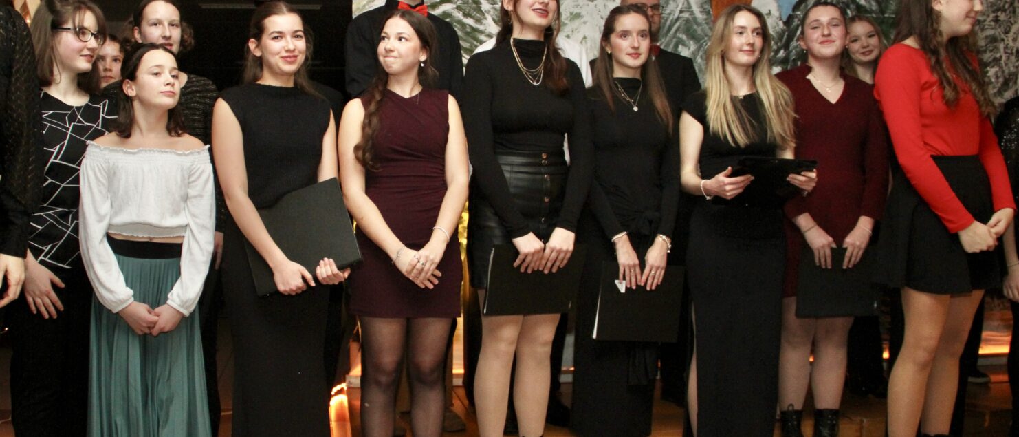 Rund 40 Sängerinnen und Sänger, Instrumentalmusikerinnen und -musiker sowie Tänzerinnen – hauptsächlich aus der 4A-, der 7G-, der 7B- und der 8GR-Klasse, mit Unterstützung durch einzelne Schüler/innen aus der 3A-, der 3C- und der 4B-Klasse – boten beim „Winterkonzert“ am 17. Dezember eineinhalb Stunden lang gekonnte und berührende Darbietungen und bereiteten damit den rund 120 Zuhörerinnen und Zuhörern – und wohl auch sich selbst – ein besonderes musikalisches Weihnachtsgeschenk.