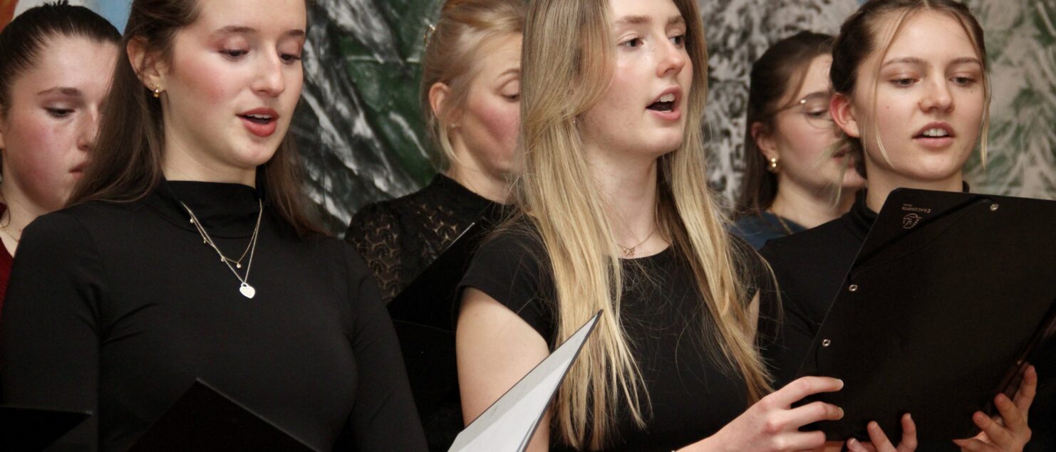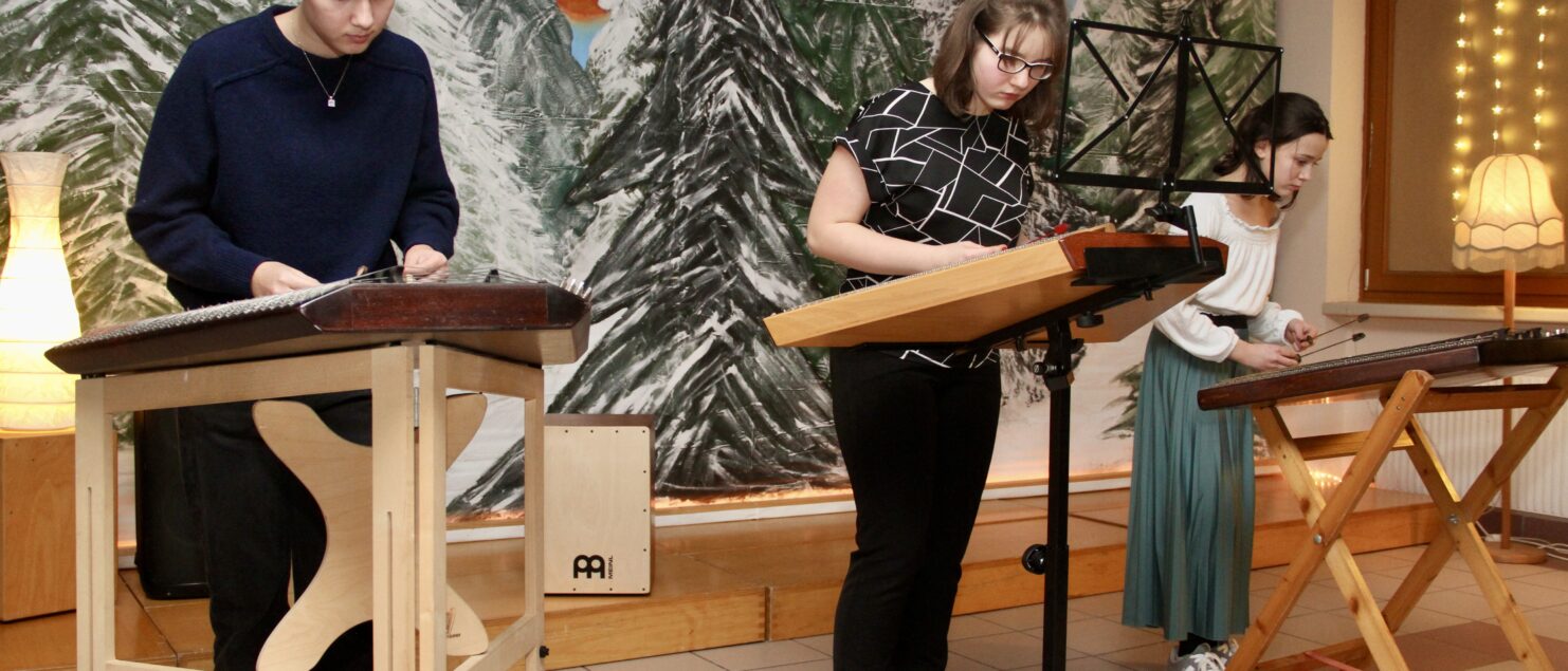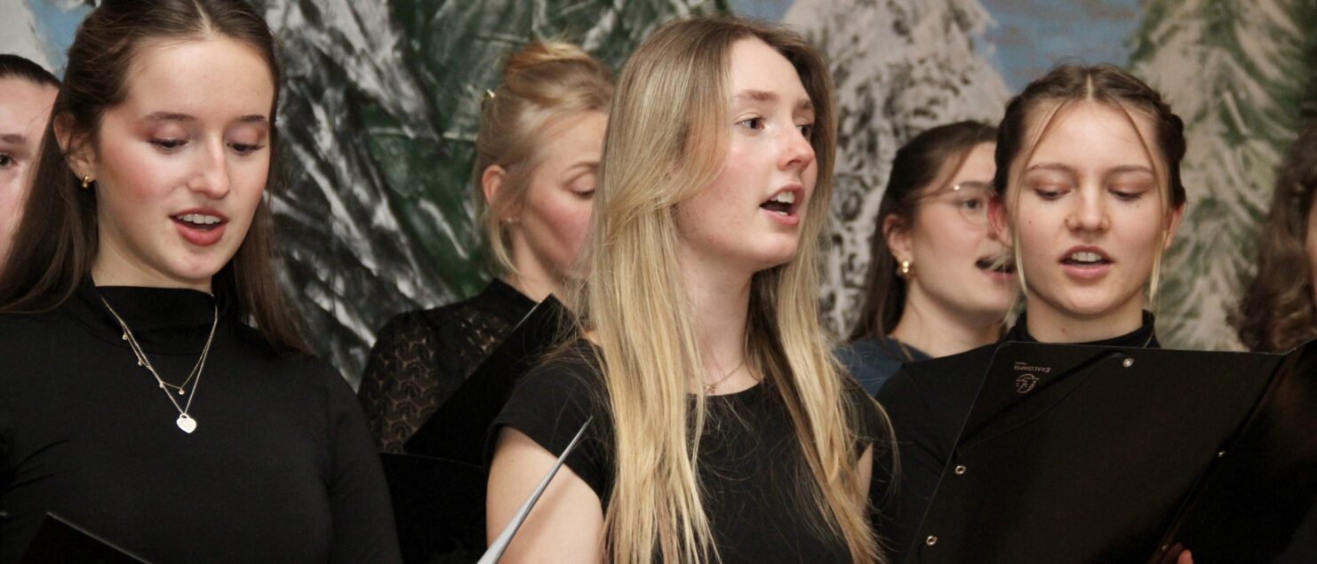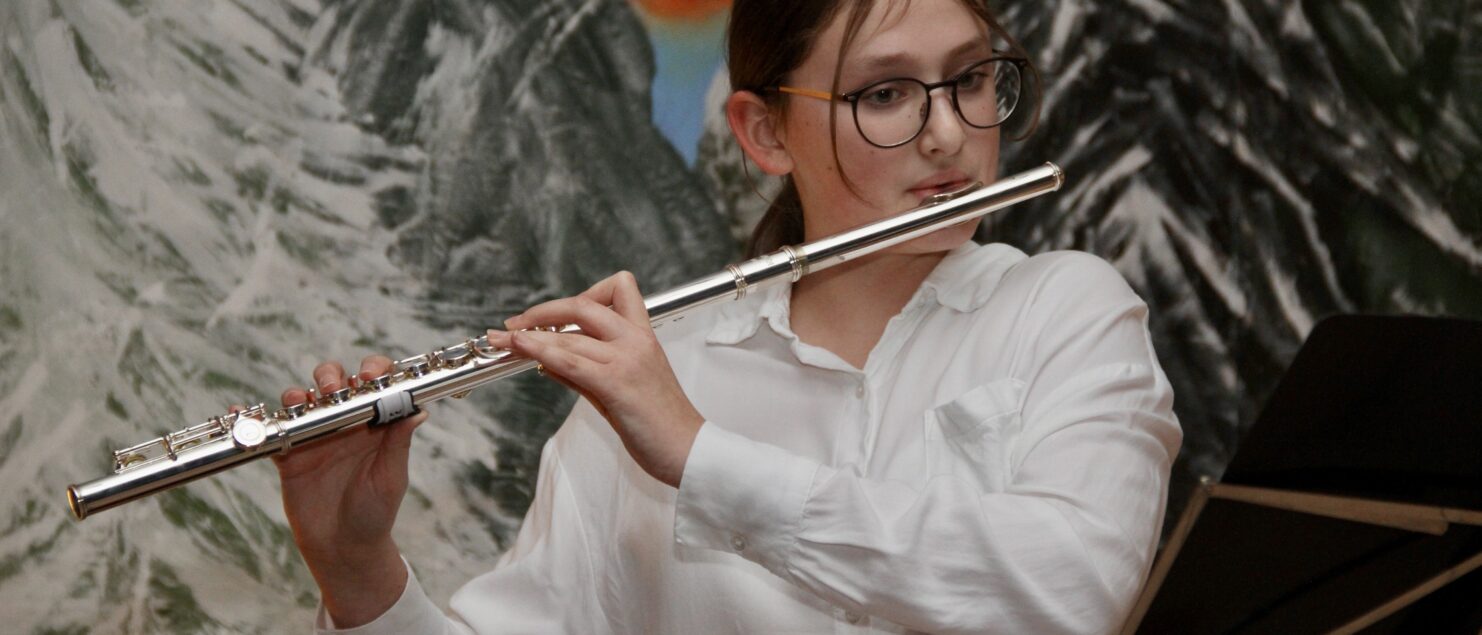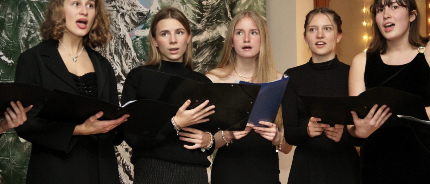 Rund 40 Sängerinnen und Sänger, Instrumentalmusikerinnen und -musiker sowie Tänzerinnen – hauptsächlich aus der 4A-, der 7G-, der 7B- und der 8GR-Klasse, mit Unterstützung durch einzelne Schüler/innen aus der 3A-, der 3C- und der 4B-Klasse – boten beim „Winterkonzert“ am 17. Dezember eineinhalb Stunden lang gekonnte und berührende Darbietungen und bereiteten damit den rund 120 Zuhörerinnen und Zuhörern – und wohl auch sich selbst – ein besonderes musikalisches Weihnachtsgeschenk.