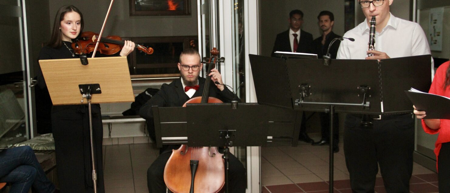 Zur geglückten (vor-)weihnachtlichen Stimmung trug auch das gefühlvoll für den Anlass gestaltete Ambiente in der Aula im 2. Stock bei. In der Pause und nach dem Konzert wurden die Gäste mit großteils selbst hergestellten weihnachtlichen Köstlichkeiten verwöhnt. Darüber hinaus wurden von Schülerinnen und Schülern angefertigte Weihnachtskarten zum Verkauf angeboten.