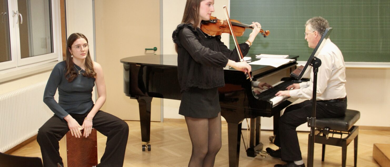 Die Zuhörerinnen und Zuhörer zeigten sich ausgesprochen angetan von den literarischen und musikalischen Darbietungen. Der Abend fand einen stimmigen Ausklang mit interessanten Gesprächen am Buffet, für das Schülerinnen und Schüler der siebten Klassen verantwortlich zeichneten.