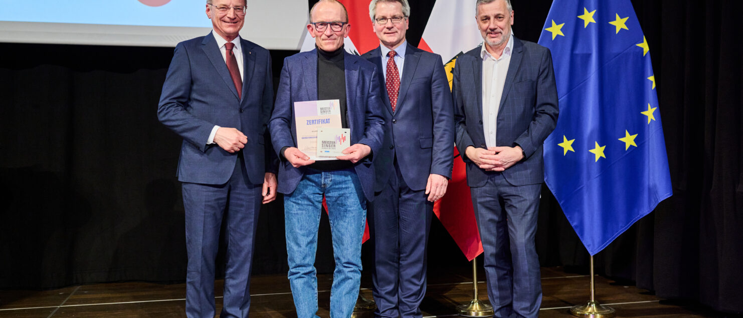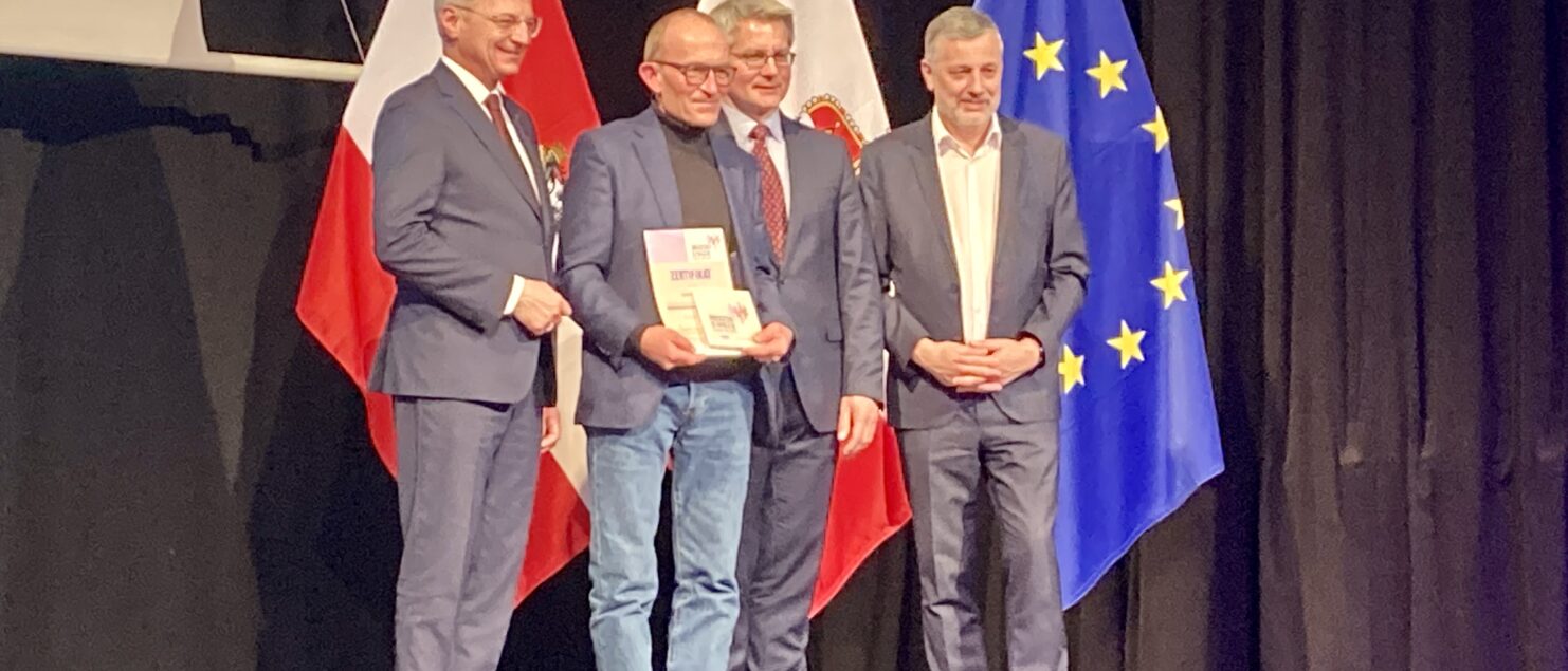 Offizielles Foto von der Verleihung: Land OÖ / Peter Mayr; v. l. n. r.: LH Mag. Thomas Stelzer, Dir. HR Mag. Sebastian Plank, MMag. Harald Wurmsdobler, Bildungsdirektor HR Mag. Dr. Alfred Klampfer
