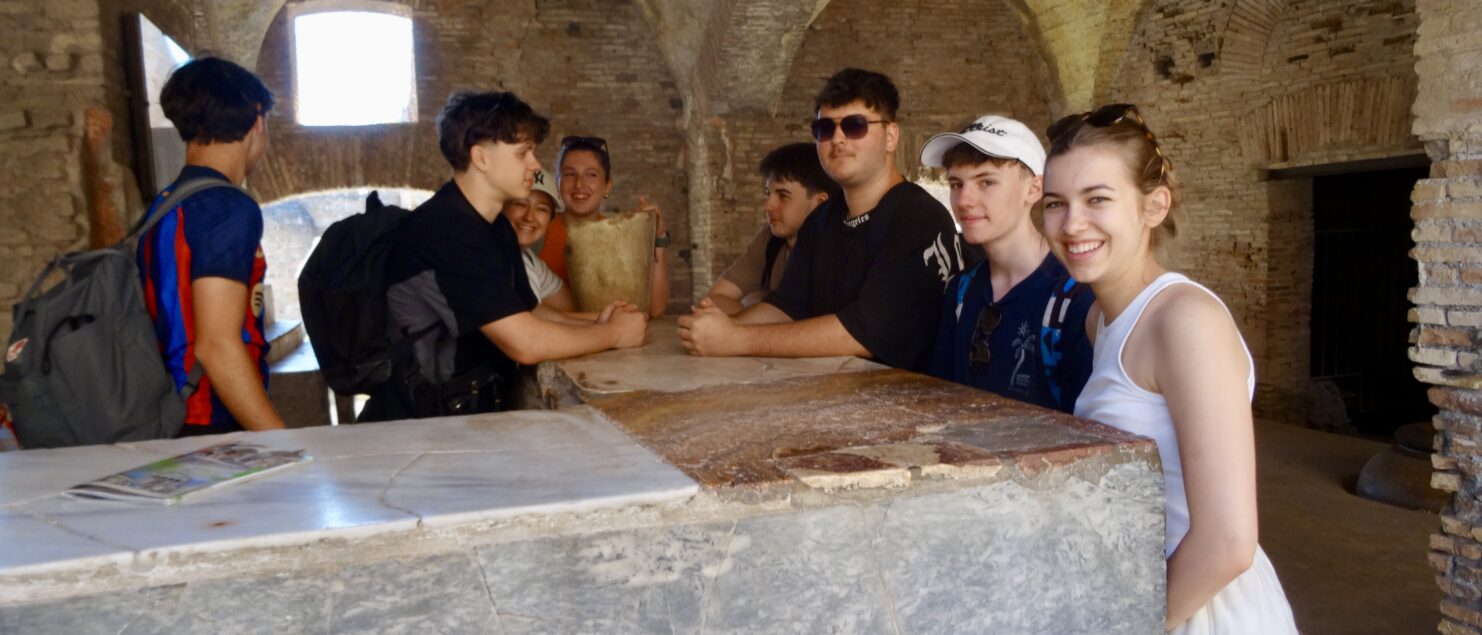 Wir besichtigten im heiligen Jahr zahlreiche beeindruckende Orte: den Petersdom, San Paolo fuori le Mura, Santa Maria Maggiore, das Kolosseum, das Forum Romanum, die Ausgrabungen in Ostia Antica sowie die Galleria Borghese mit ihren weltberühmten Kunstwerken. Besonders beeindruckt waren wir von der Architektur und den künstlerischen Leistungen der Antike.