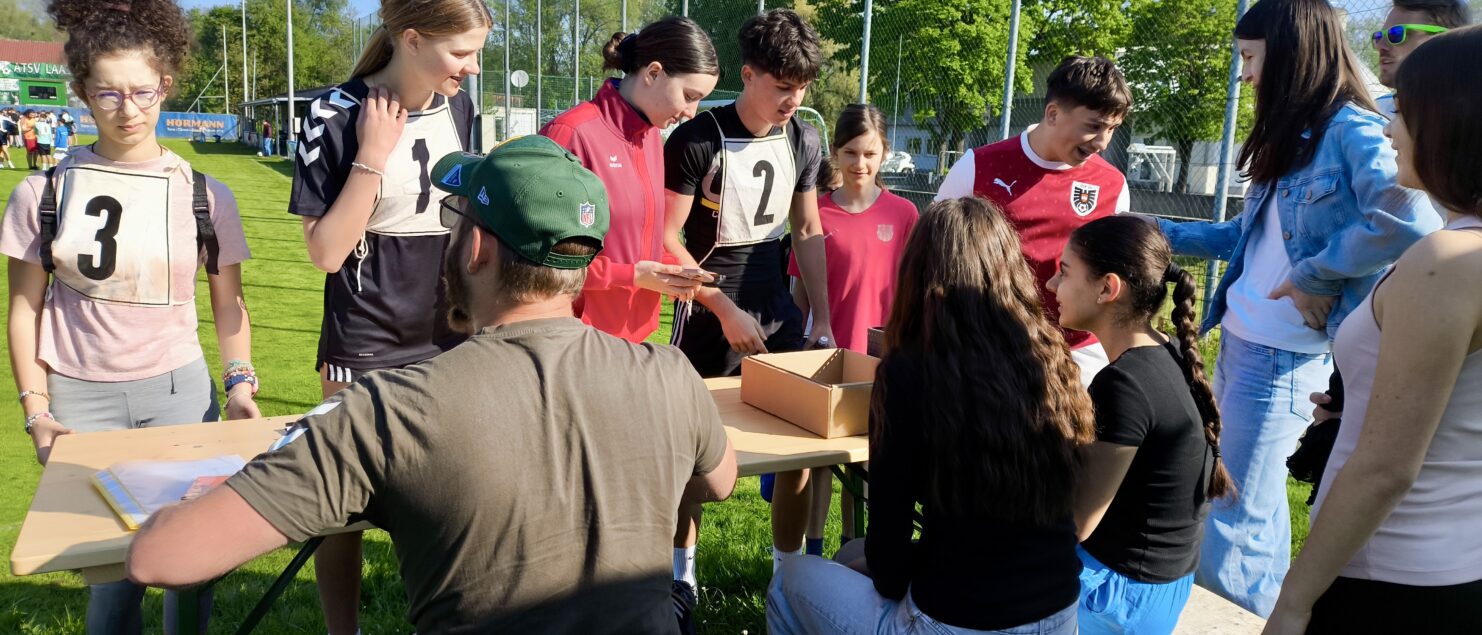 Bei strahlendem Wetter gingen 130 Teilnehmerinnen und Teilnehmer bzw. 65 Teams an den Start, die aus den zweiten, dritten, vierten und fünften Klassen unserer Schule sowie aus der MMS Eggelsberg und der HTL Braunau kamen.