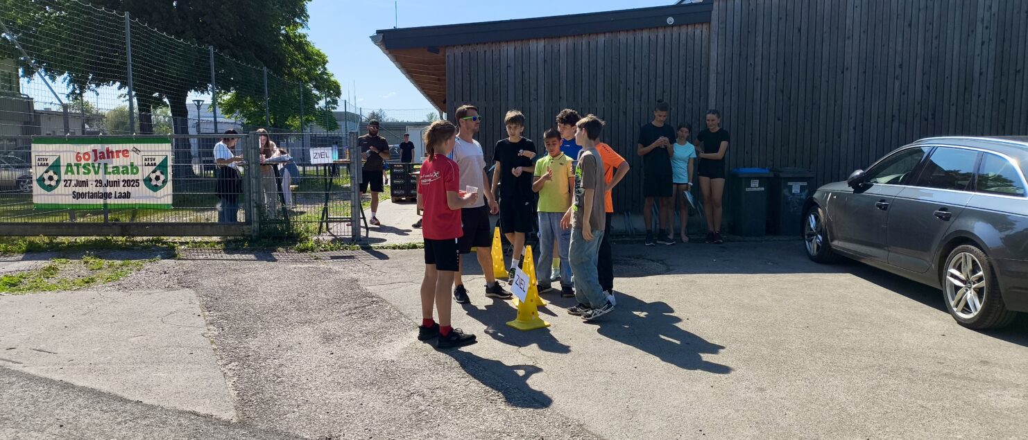 Start und Ziel waren auf dem Fußballplatz Laab. Entsprechend dem Alter der Läuferinnen und Läufer gab es zwei unterschiedliche Laufrouten, eine längere und eine kürzere, mit unterschiedlichen Stationen.
