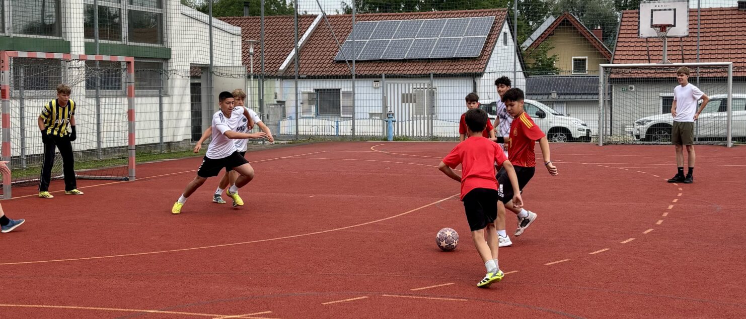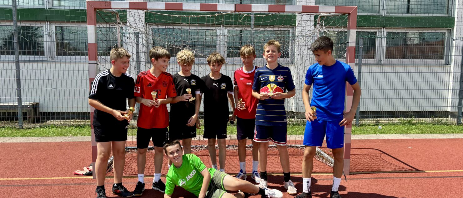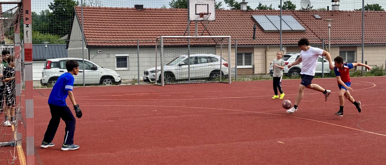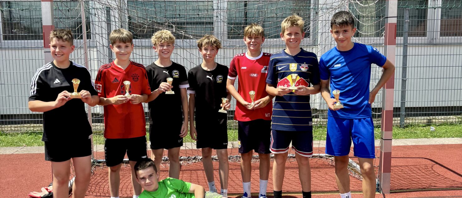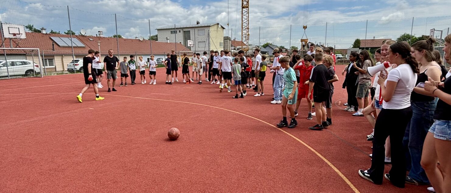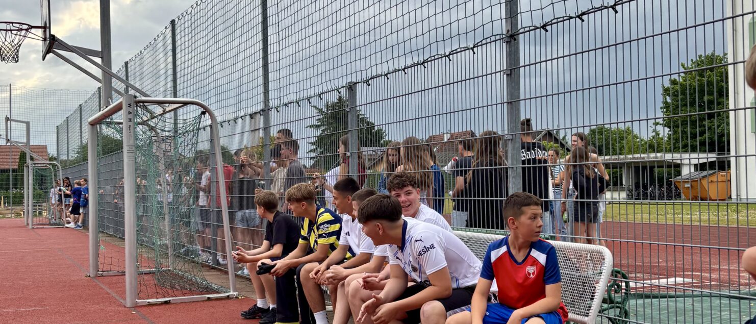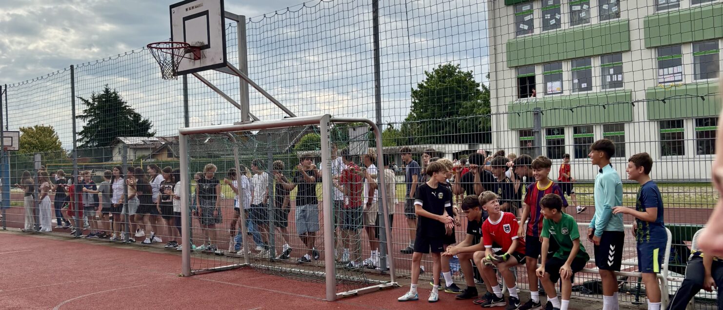 Zehn Teams traten bei der Fußball-Gymmeisterschaft am 27. Juni gegeneinander an. Spannende und faire Spiele, selbst gemachte Getränke und eine gute Stimmung bei den Zuschauerinnen und Zuschauern sorgten für einen abwechslungsreichen Fußballvormittag.