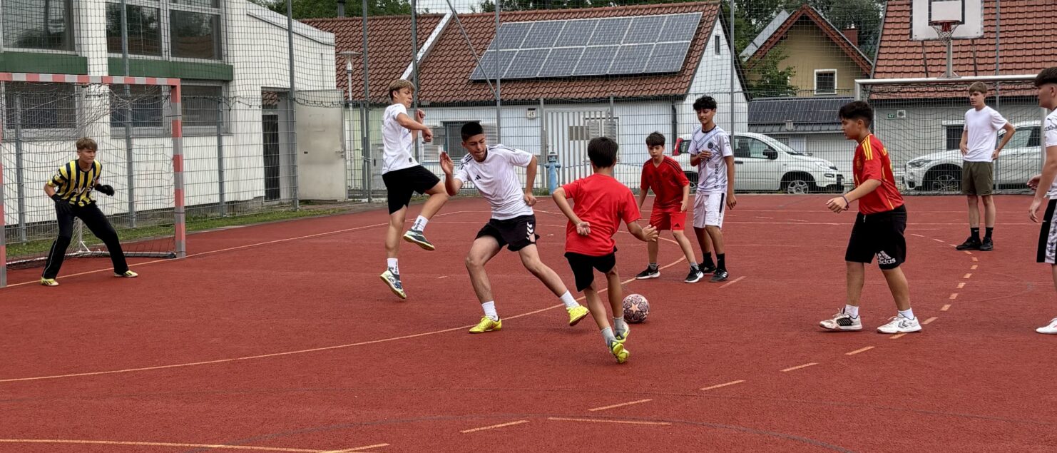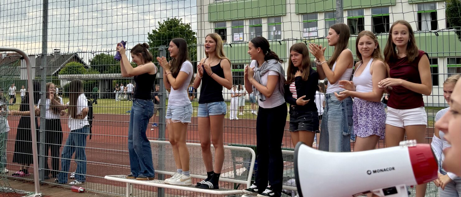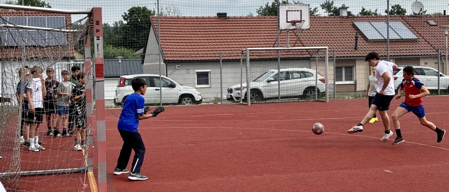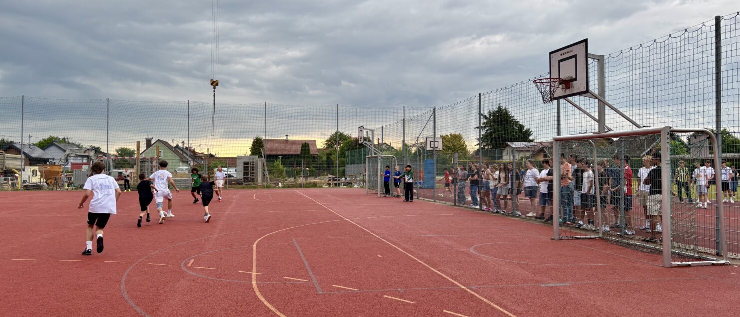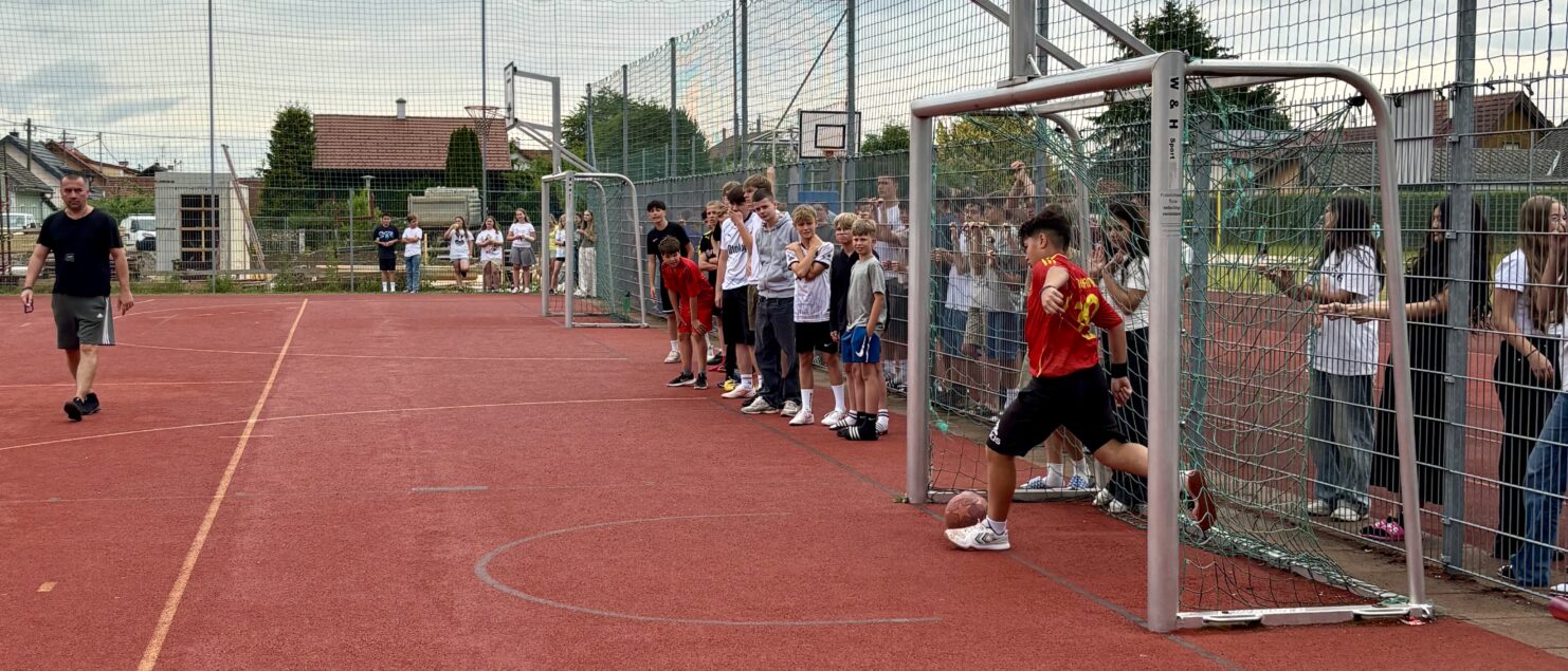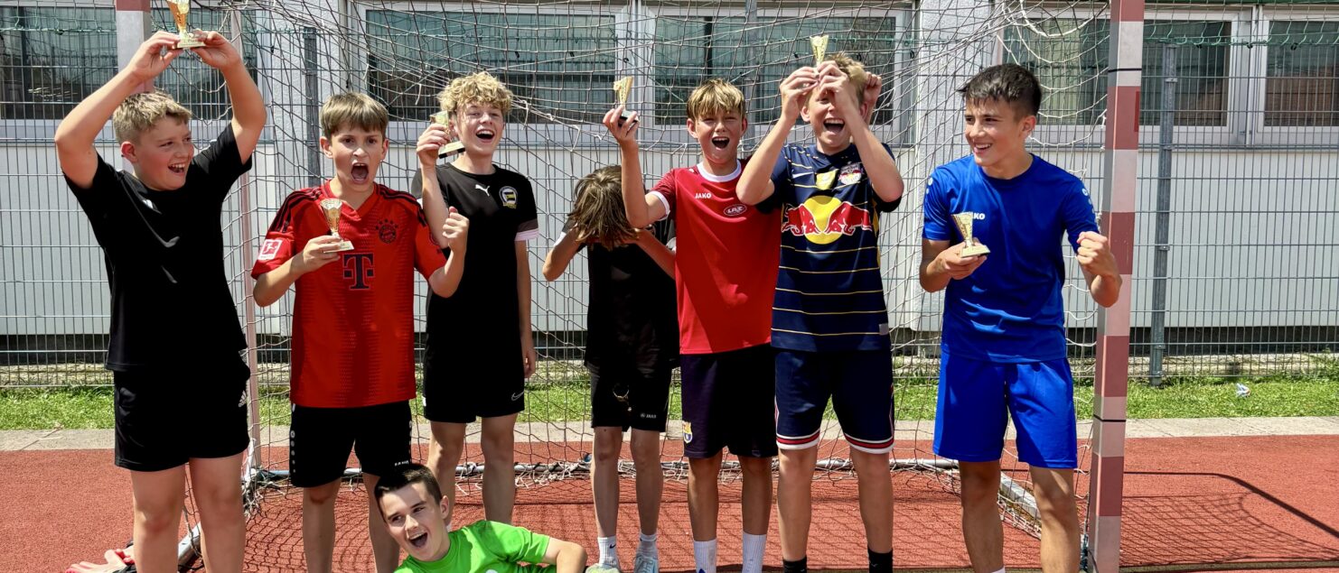 Zehn Teams traten bei der Fußball-Gymmeisterschaft am 27. Juni gegeneinander an. Spannende und faire Spiele, selbst gemachte Getränke und eine gute Stimmung bei den Zuschauerinnen und Zuschauern sorgten für einen abwechslungsreichen Fußballvormittag.