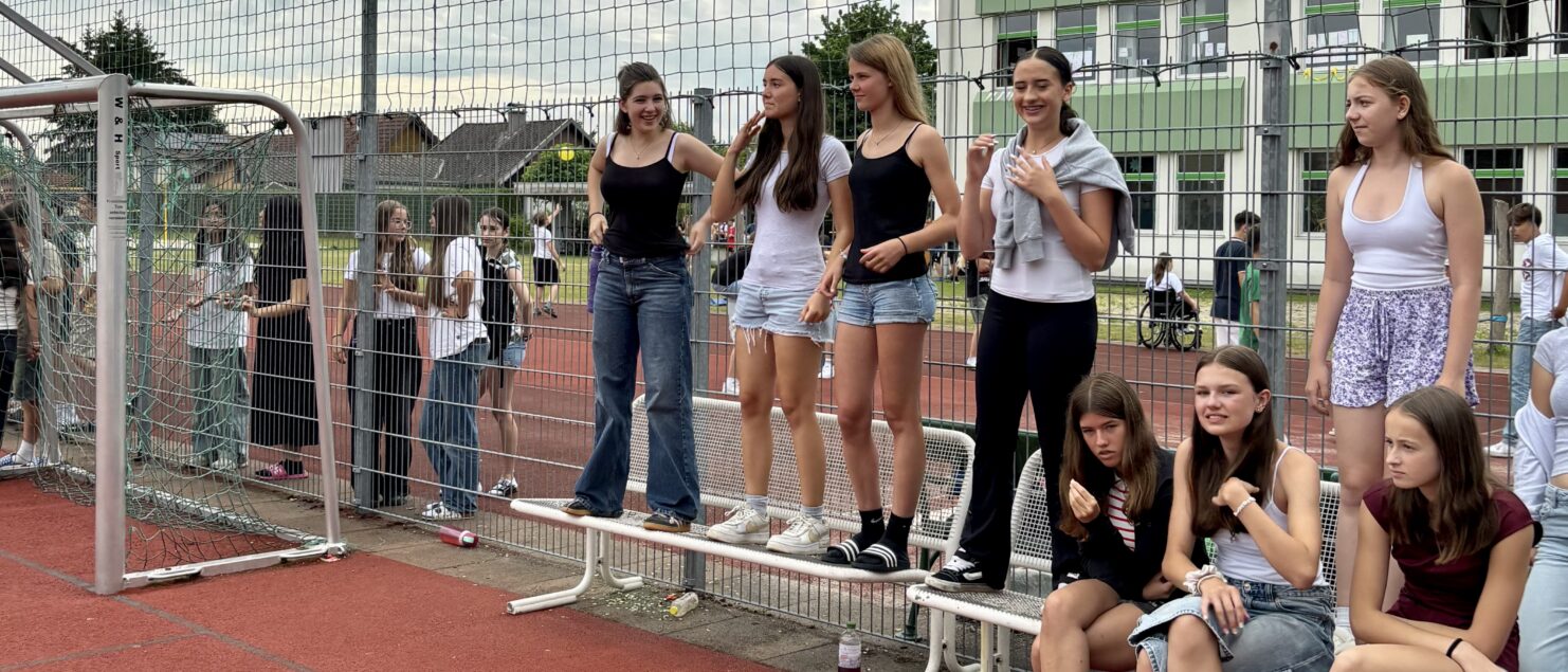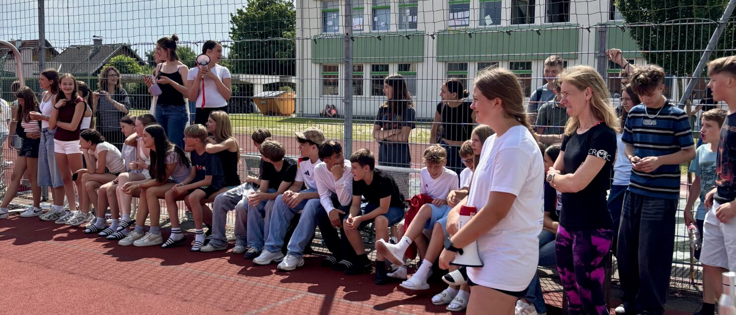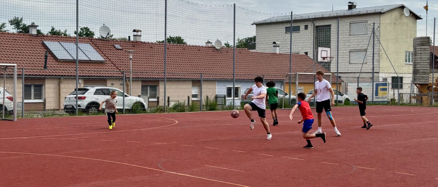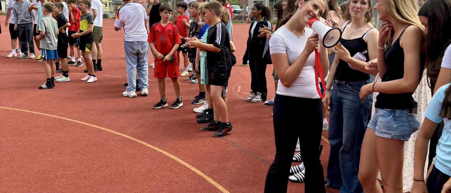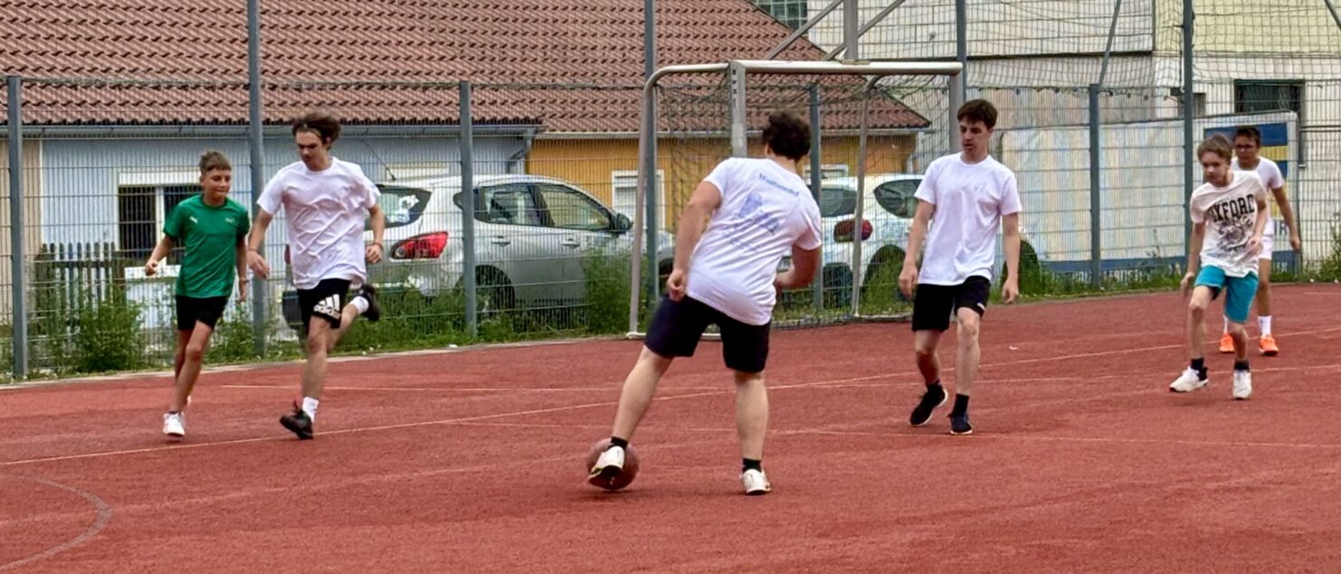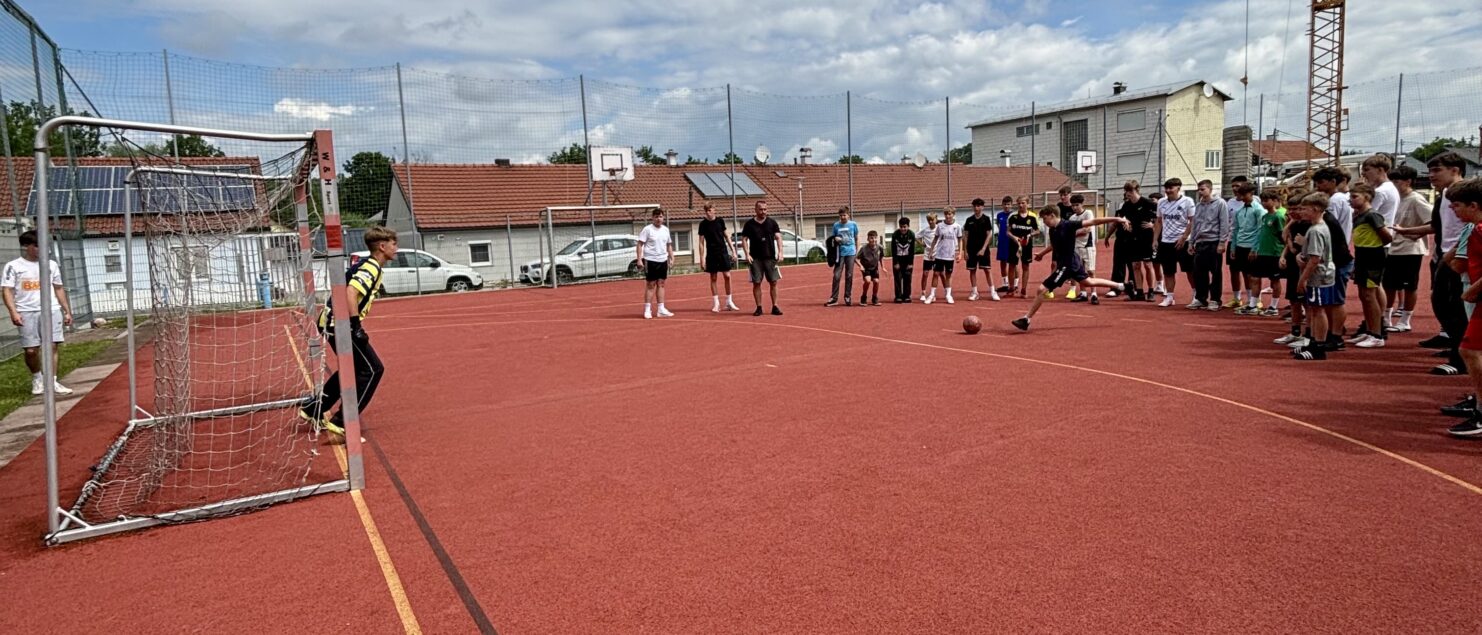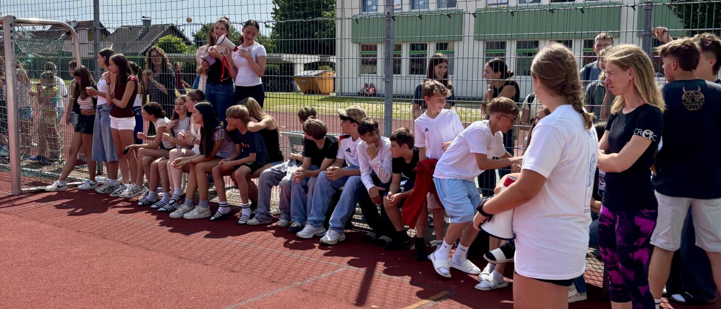 Zehn Teams traten bei der Fußball-Gymmeisterschaft am 27. Juni gegeneinander an. Spannende und faire Spiele, selbst gemachte Getränke und eine gute Stimmung bei den Zuschauerinnen und Zuschauern sorgten für einen abwechslungsreichen Fußballvormittag.