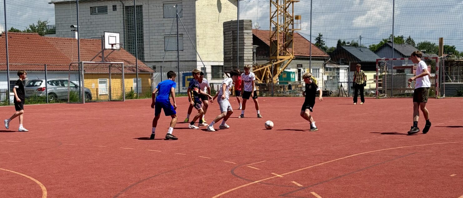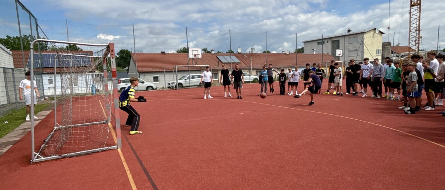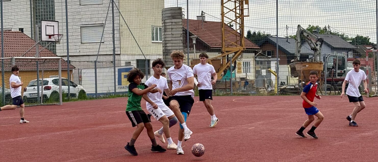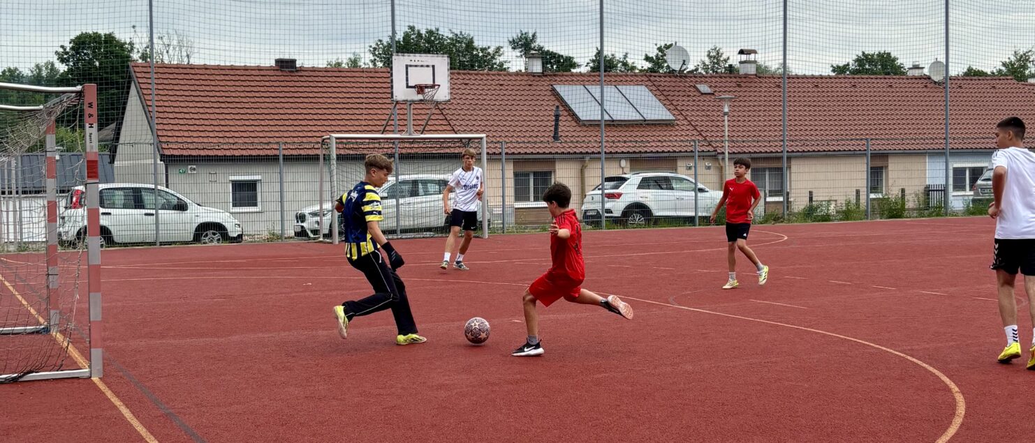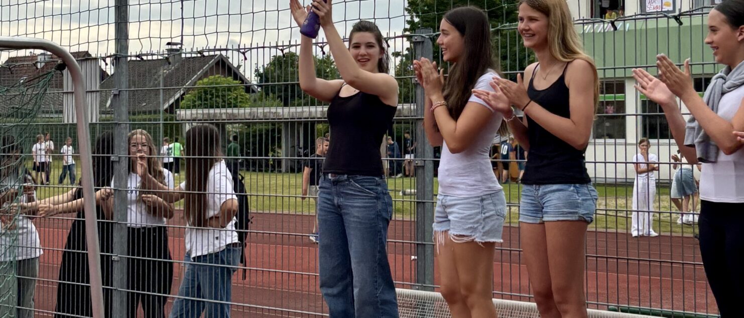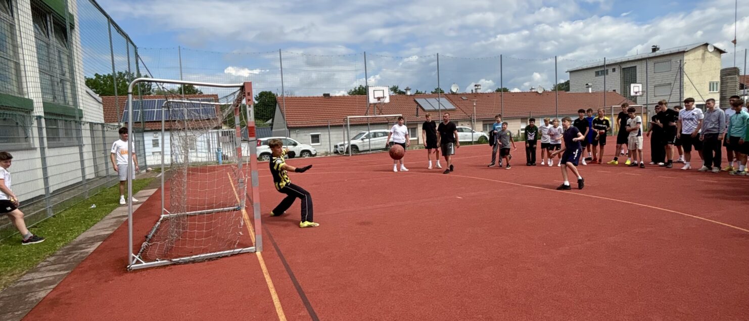 Zehn Teams traten bei der Fußball-Gymmeisterschaft am 27. Juni gegeneinander an. Spannende und faire Spiele, selbst gemachte Getränke und eine gute Stimmung bei den Zuschauerinnen und Zuschauern sorgten für einen abwechslungsreichen Fußballvormittag.